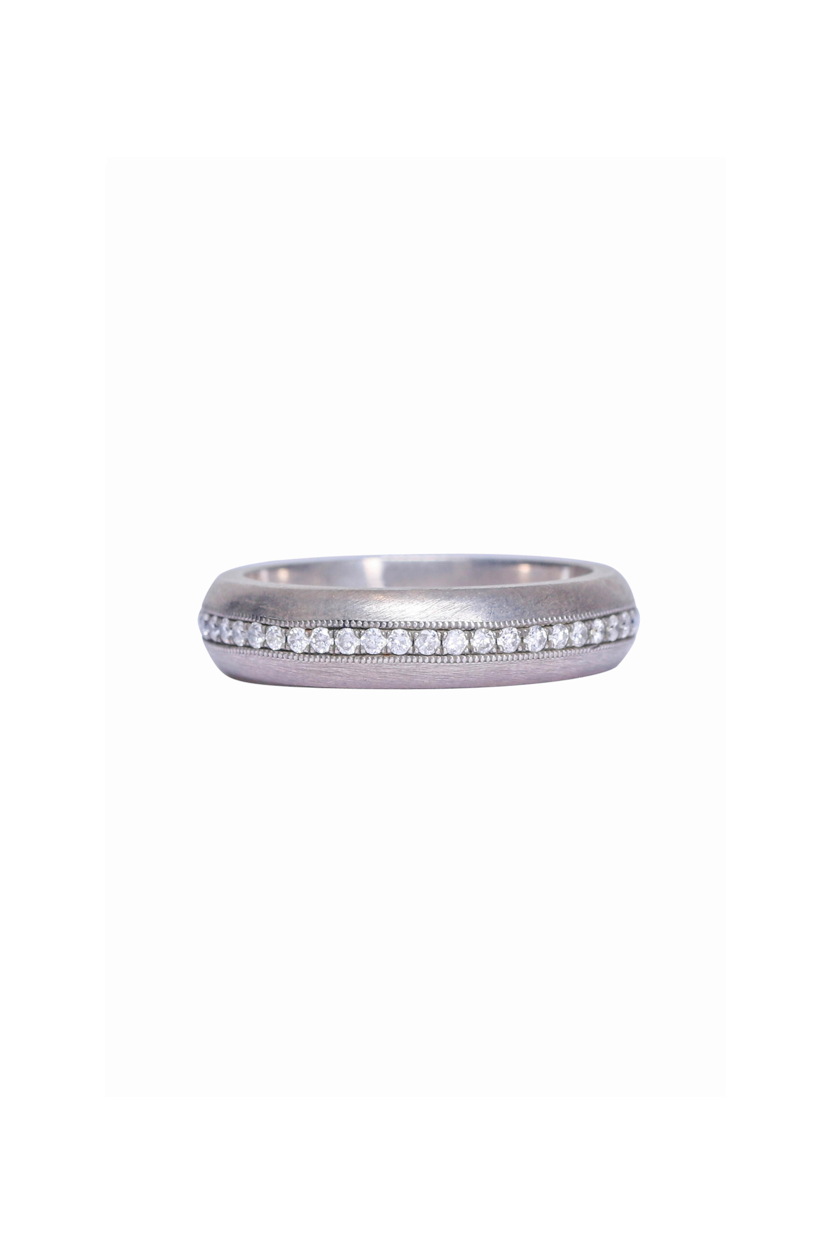Sterling silver. White diamond 0.70 total carat weight. Eternity style. Band. Prong setting. Handcrafted in L.A.. Ring size 6.