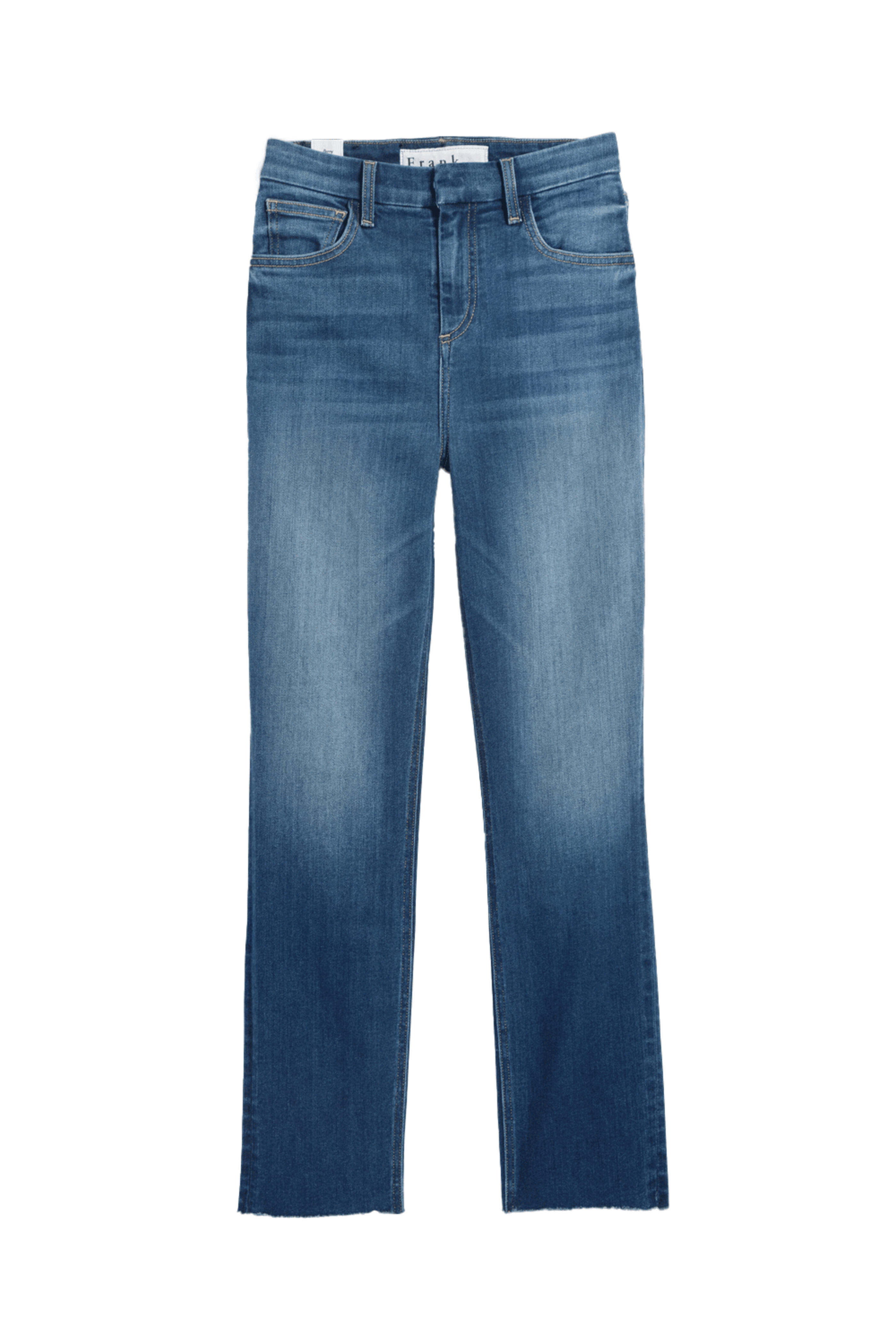 Mid rise . Zip fly . Hook-and-bar closure . Hand-distressed raw hem . Slim-straight fit . Made in USA . Frank & Eileen 1999 Blue Wash Derry Signature Jean . Italian Dream Denim, 81% Cotton, 11% Lyocell, 6% EME, 2% Elastane . Machine wash, Tumble dry .