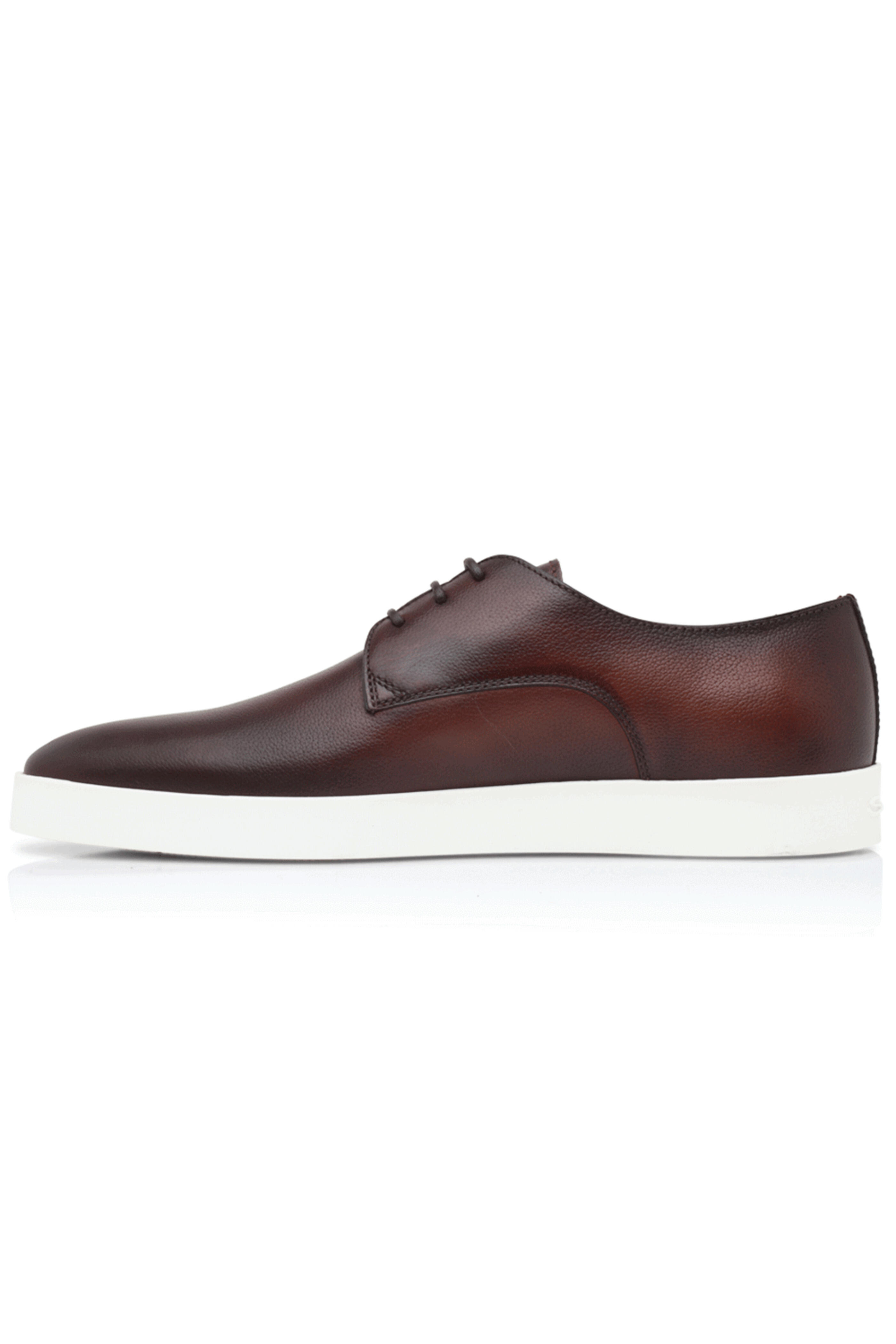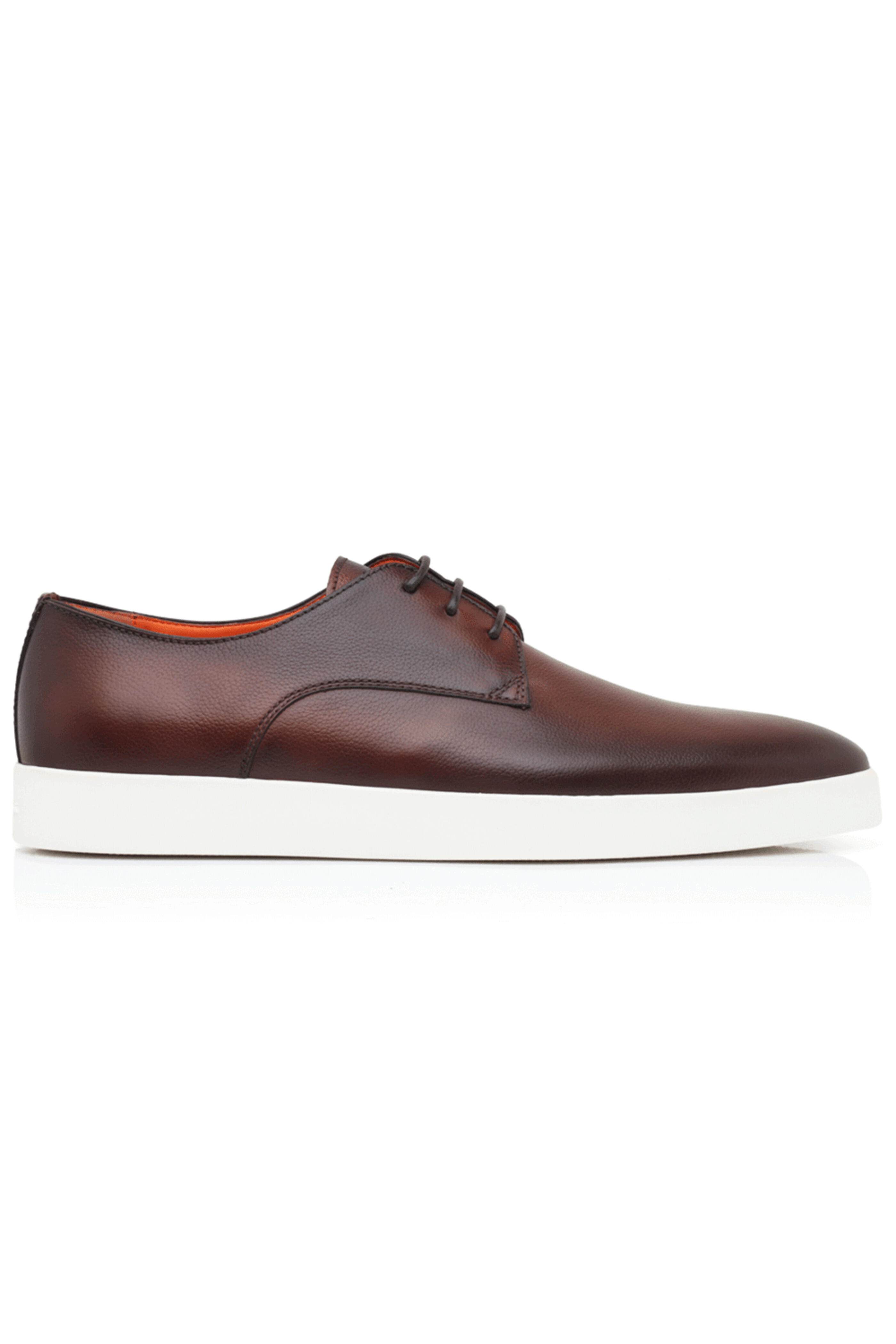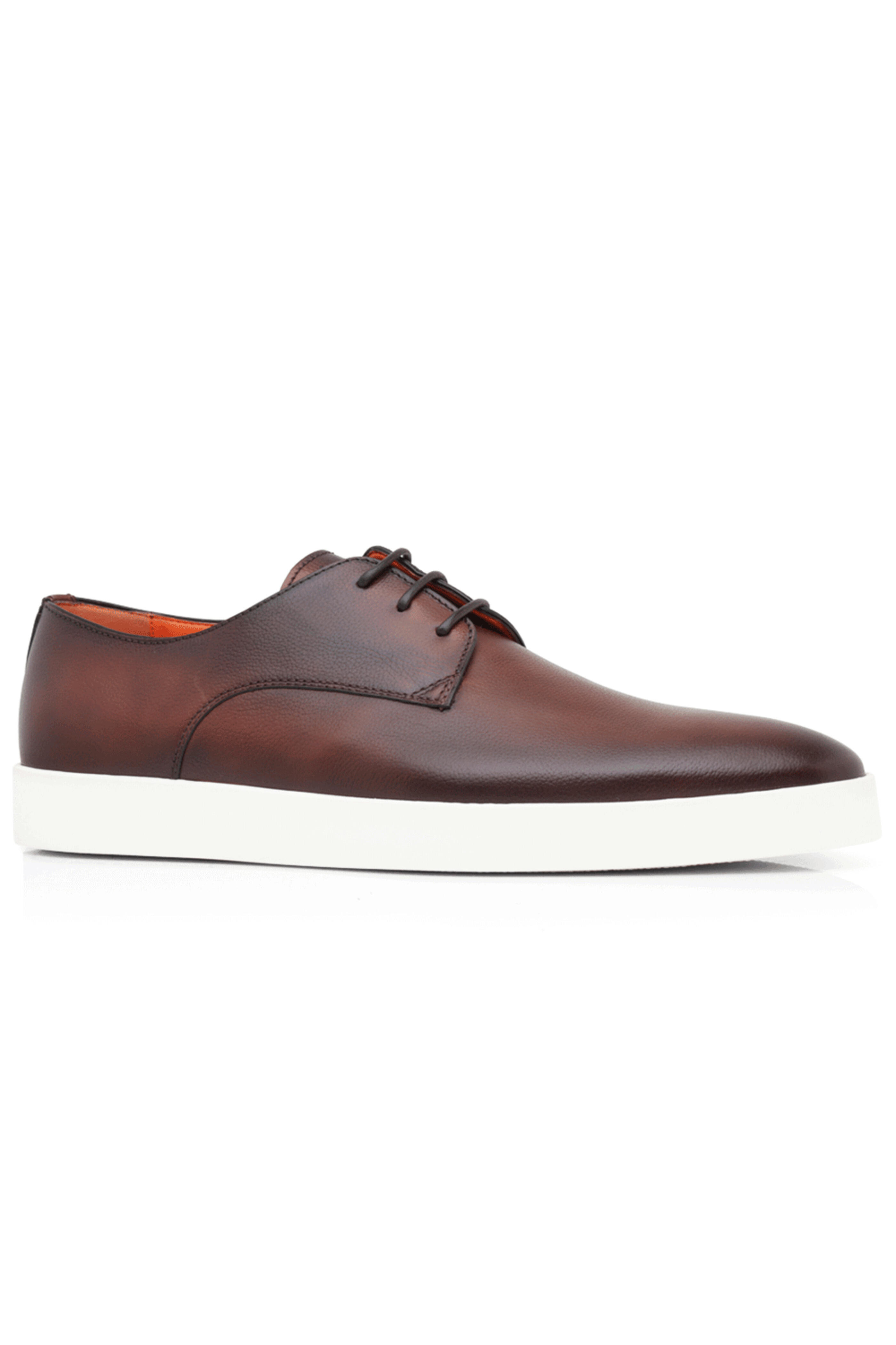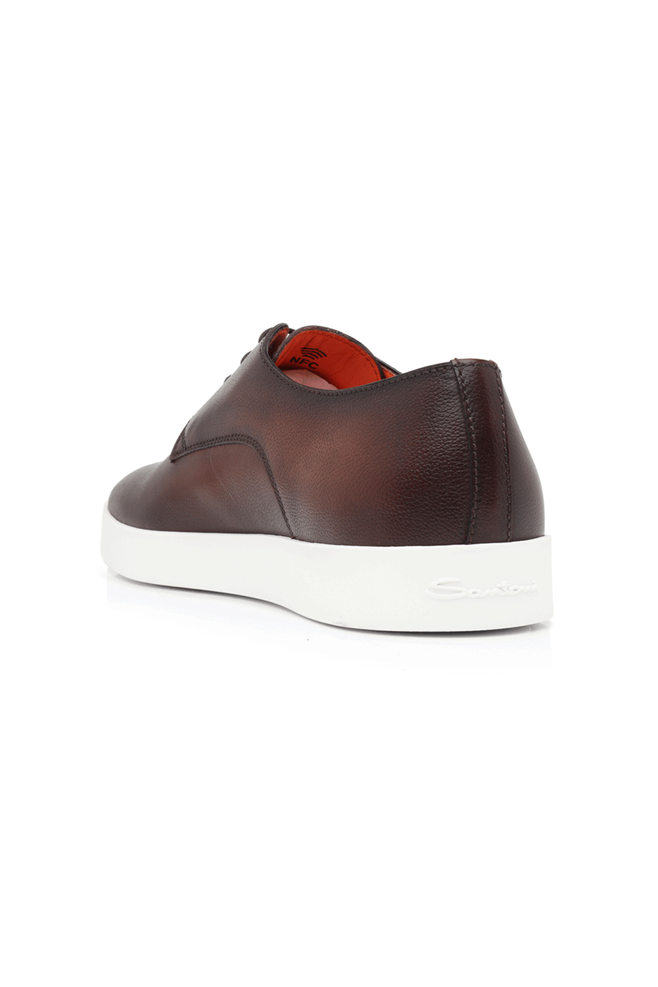 - Santoni Burnished Leather Dilate Laceup Sneaker in Dark Brown