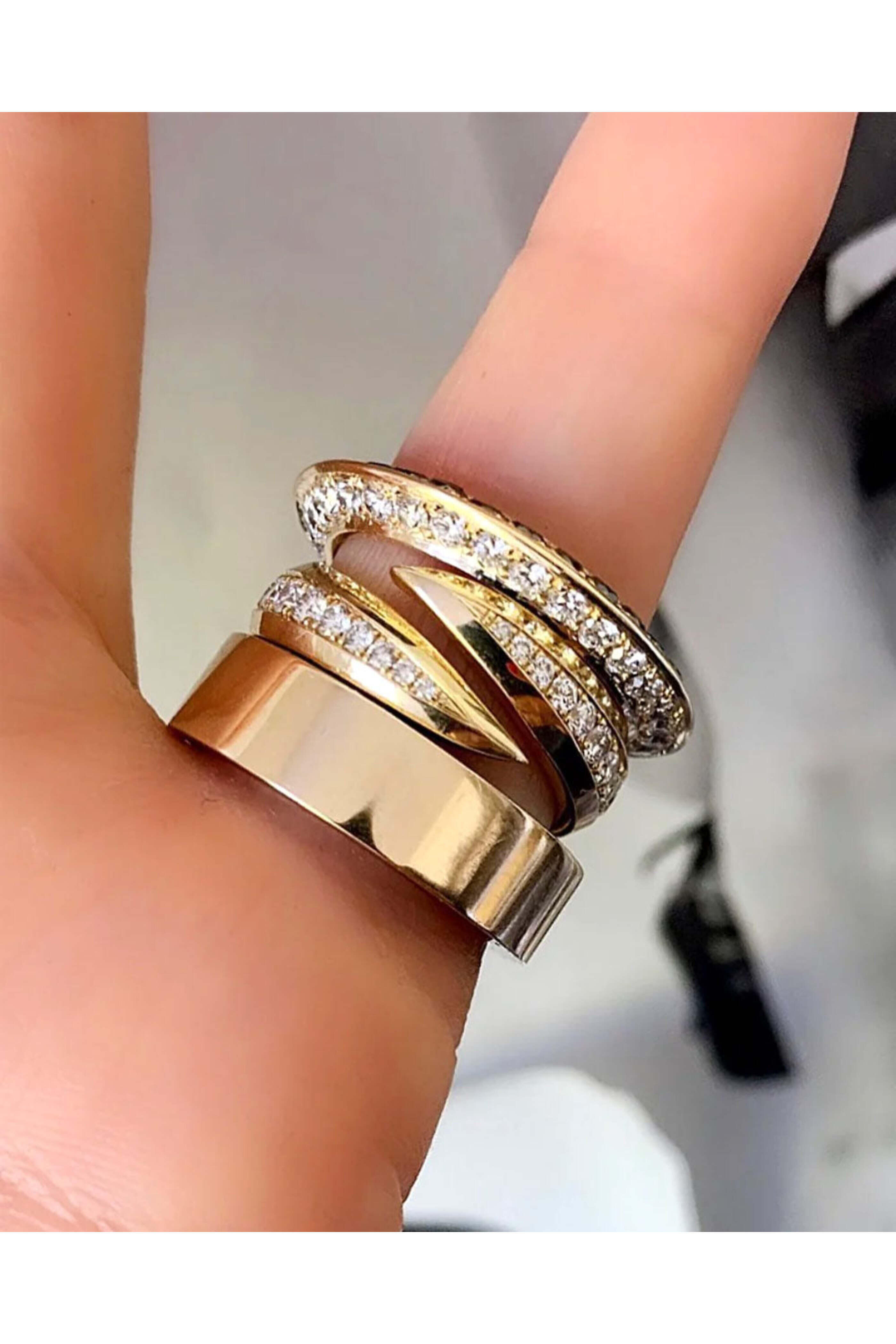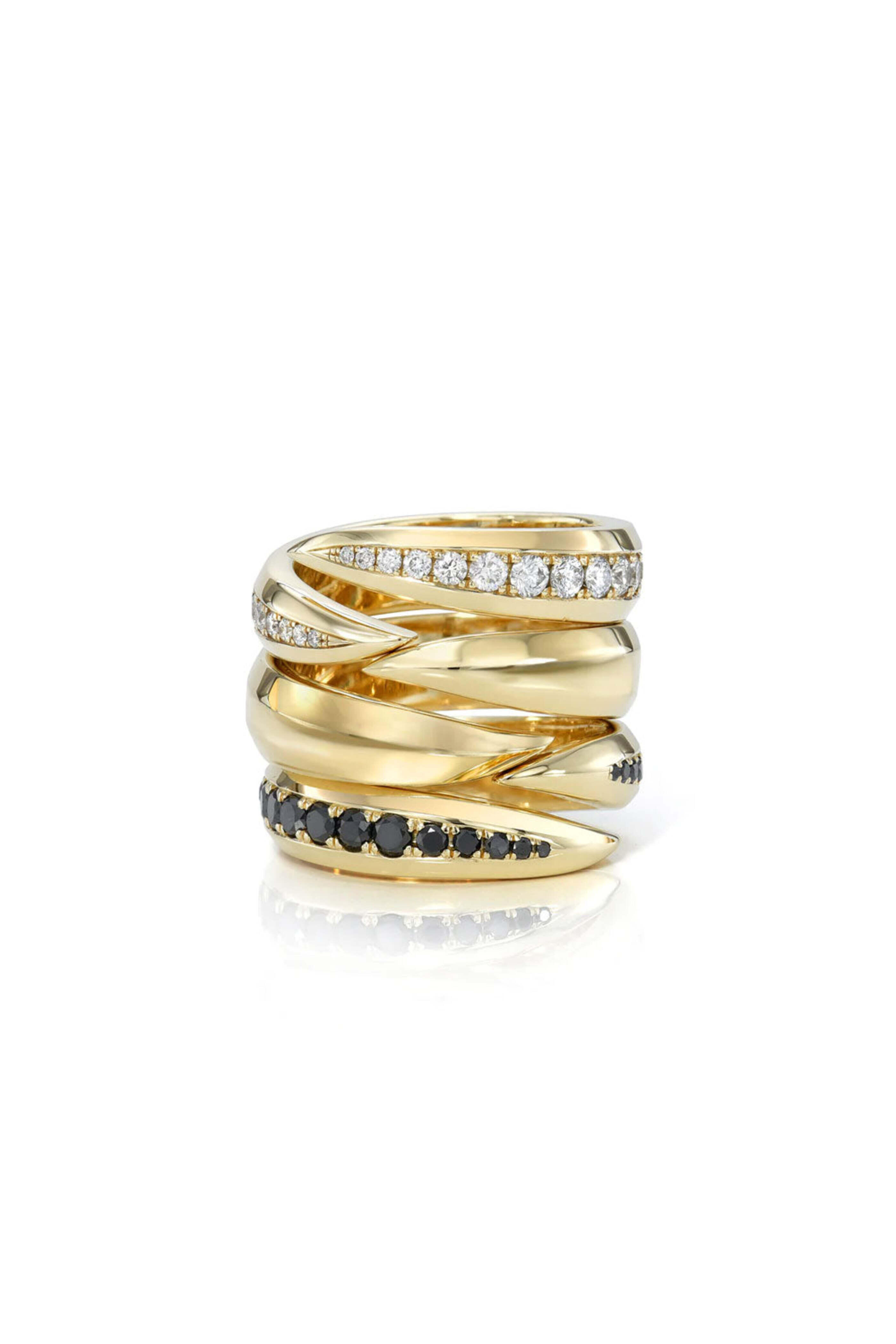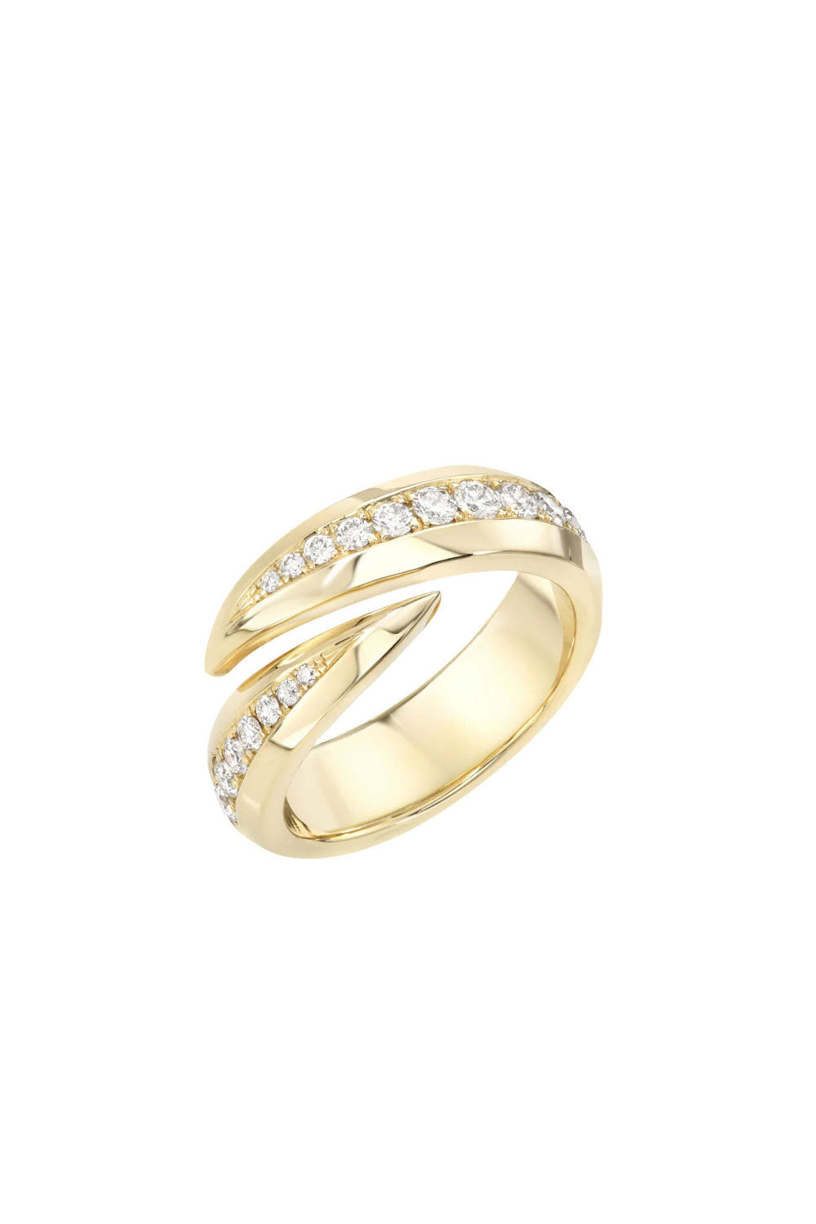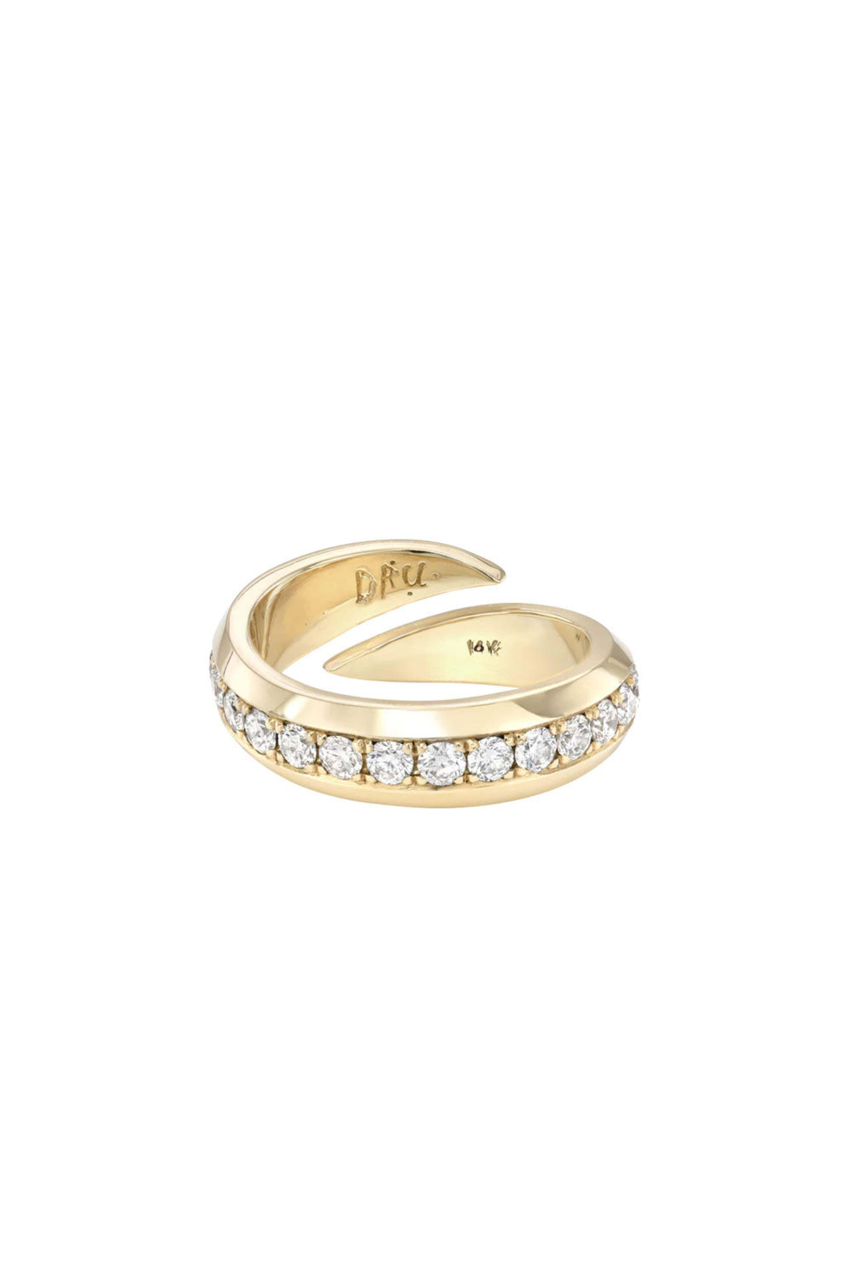 DRU. Diamond Claw Ring. 14k yellow gold. Diamond 0.90 total carat weight. Claw design. Band width begins at 0.22 and ends at 0.1 where the claw forms. Ring size 6.