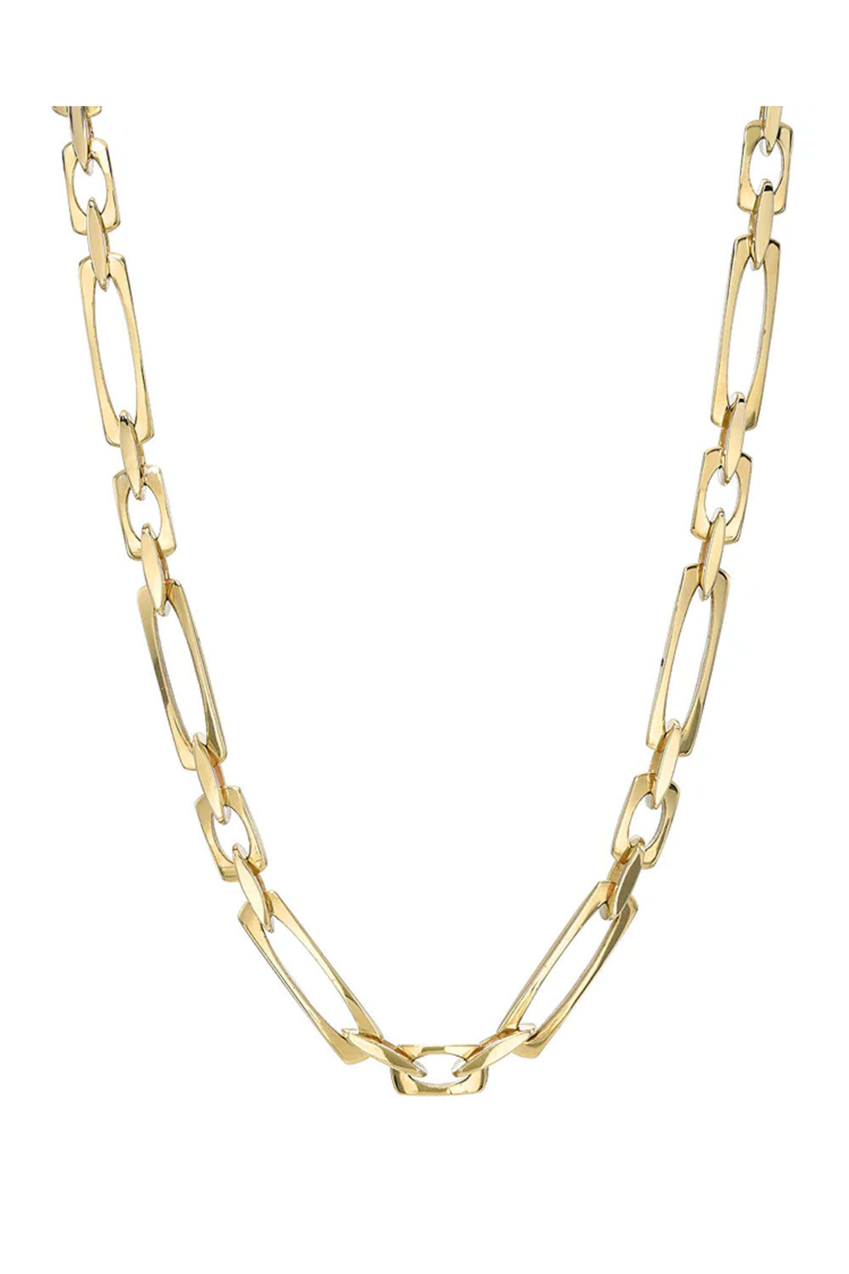 DRU. Gold Godfather Chain. 14k gold. Black diamond. Chain. 18 L. Lobster claw clasps with black diamonds.
