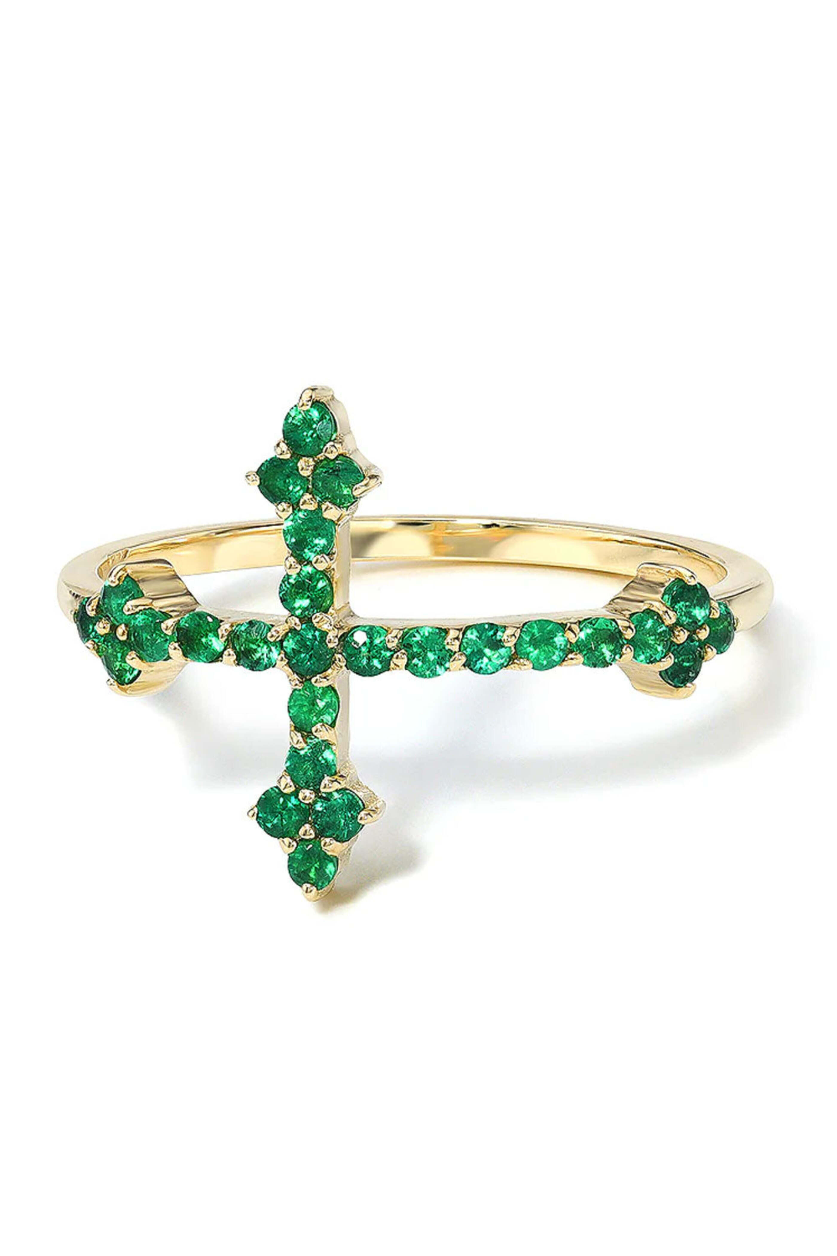- DRU. Emerald Cross Your Fingers Ring