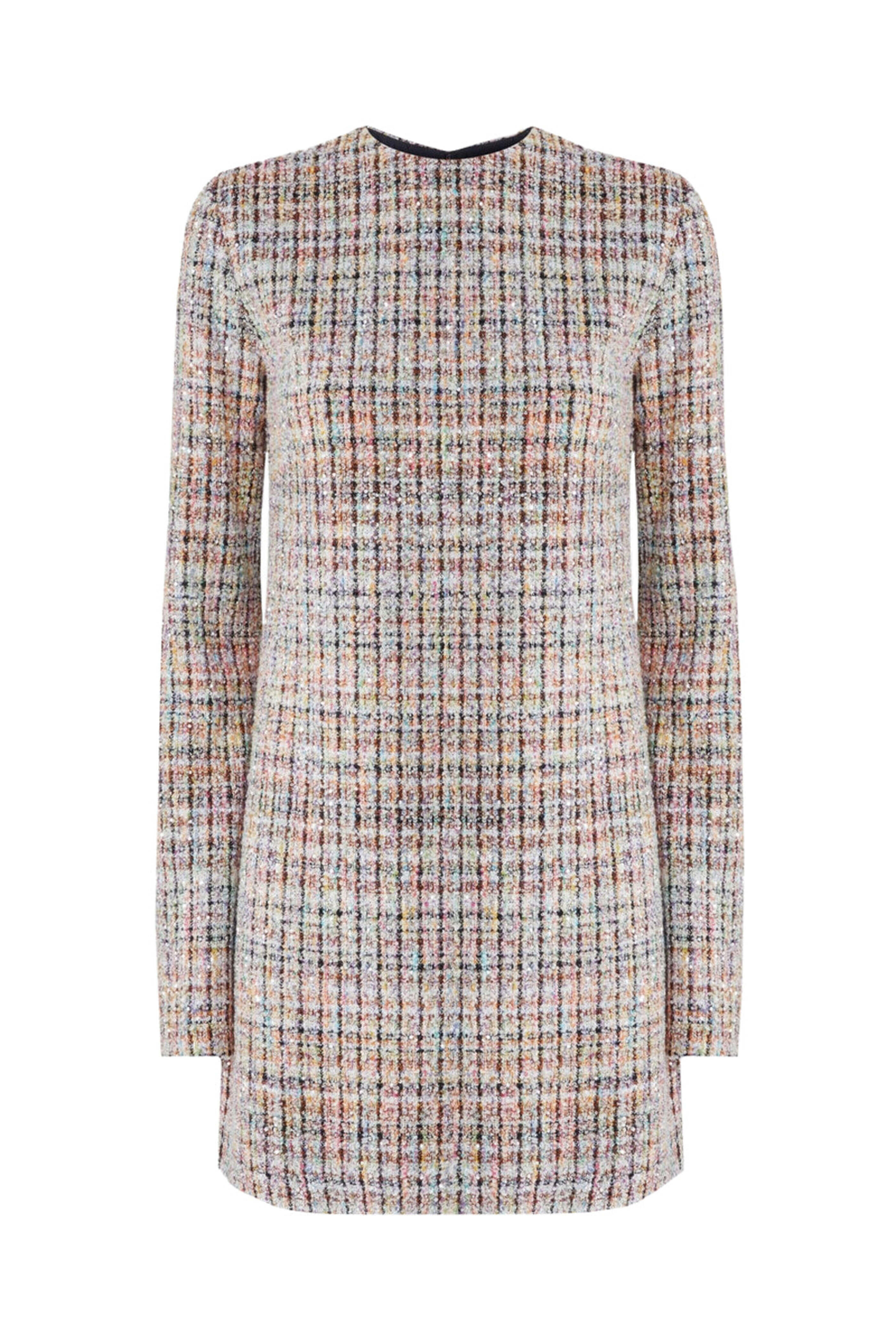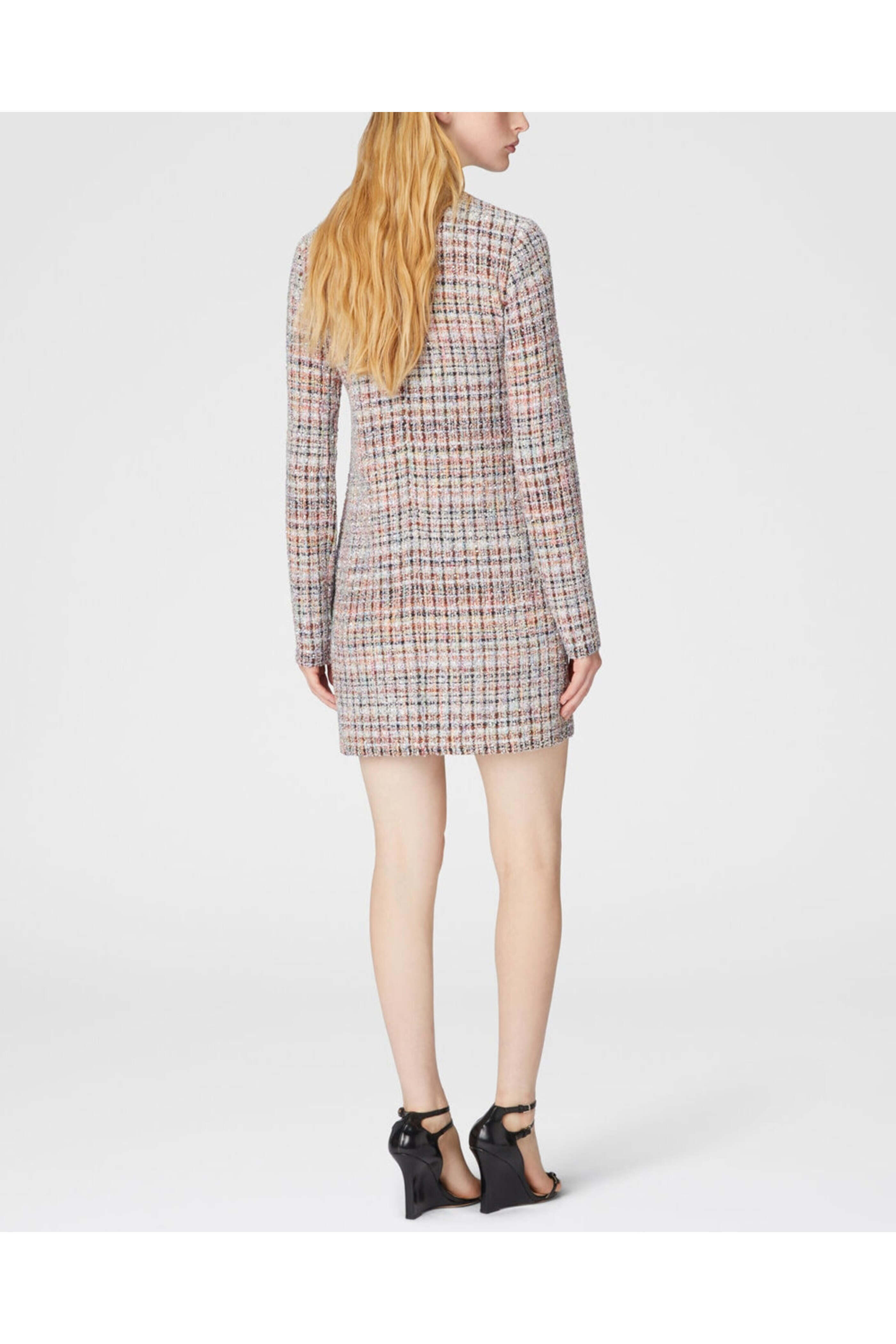 Multicolor Boucle Long Sleeve Mini Dress