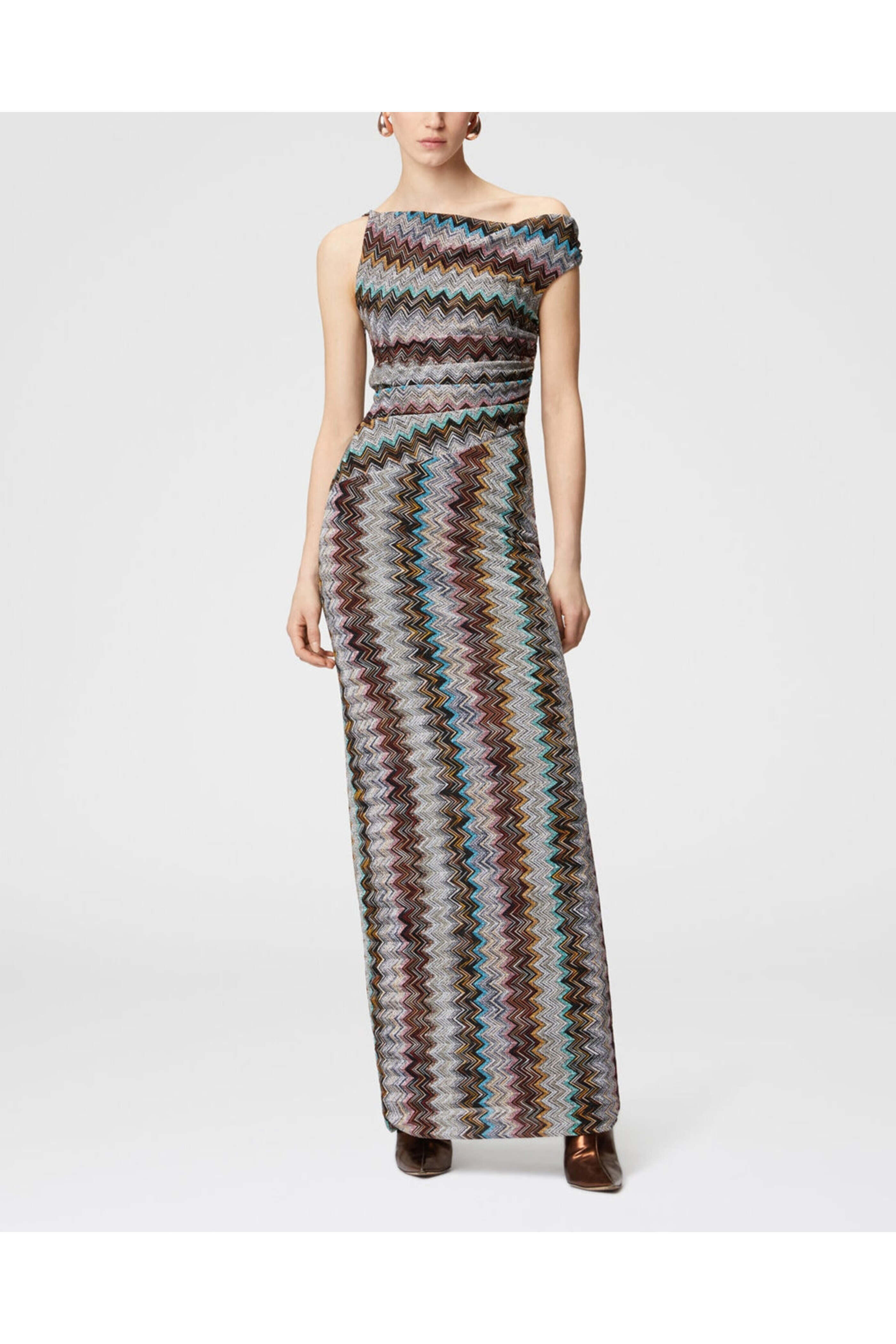 - Missoni Multicolor Zig Zag Single Shoulder Maxi Dress