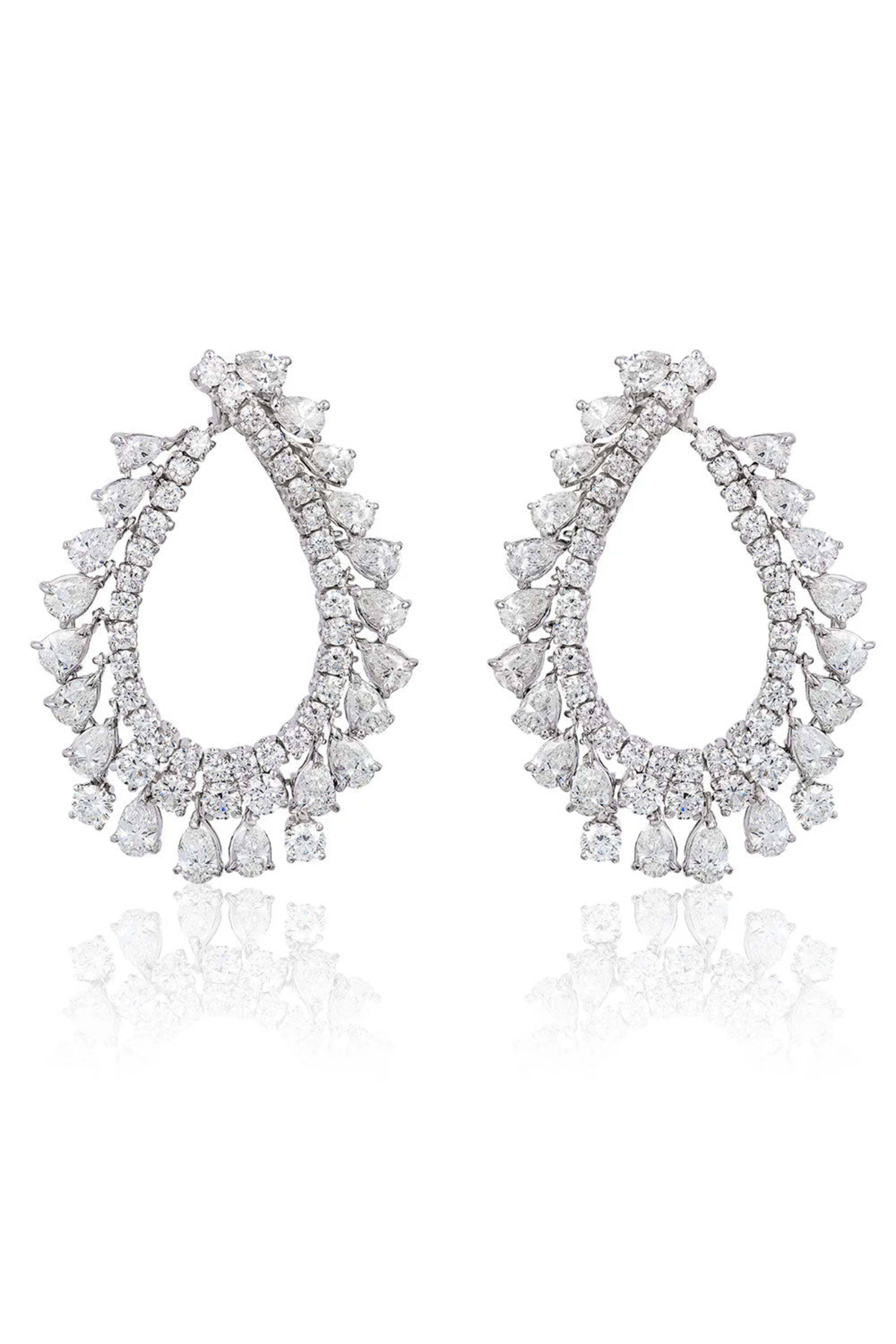 Andreoli Letitia Lusso Diamond Earrings. 18k white gold. Diamond 8.71 total carat weight. Gold 17.41 total gram weight. Hoop style. Pear shape. Latch back and clip on option as well. Designed and handcrafted in Italy.