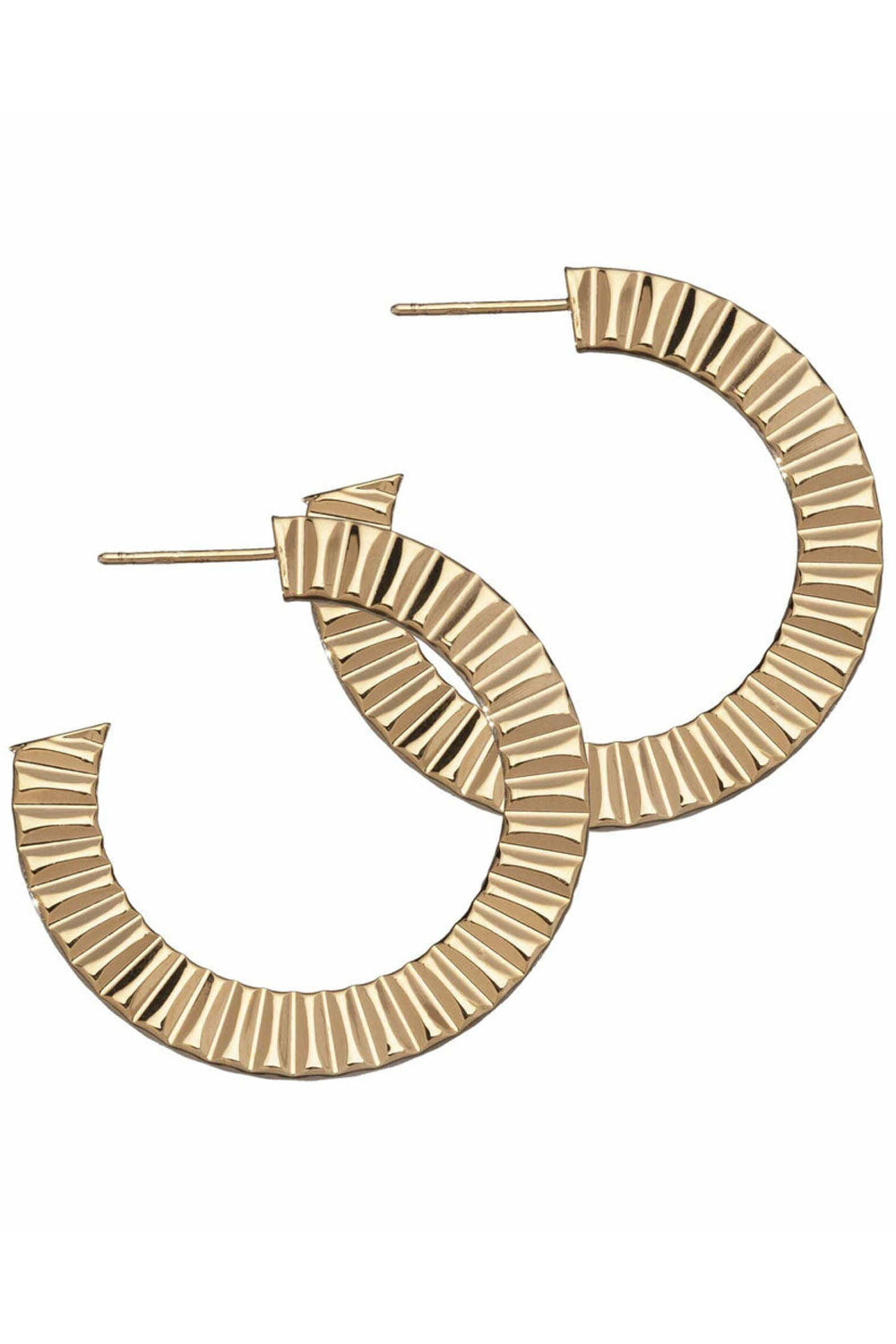 Jennifer Zeuner Hannah 1.5 Hoop Earrings. 14k yellow gold plated silver. Scallop design. 1.5. Post back.