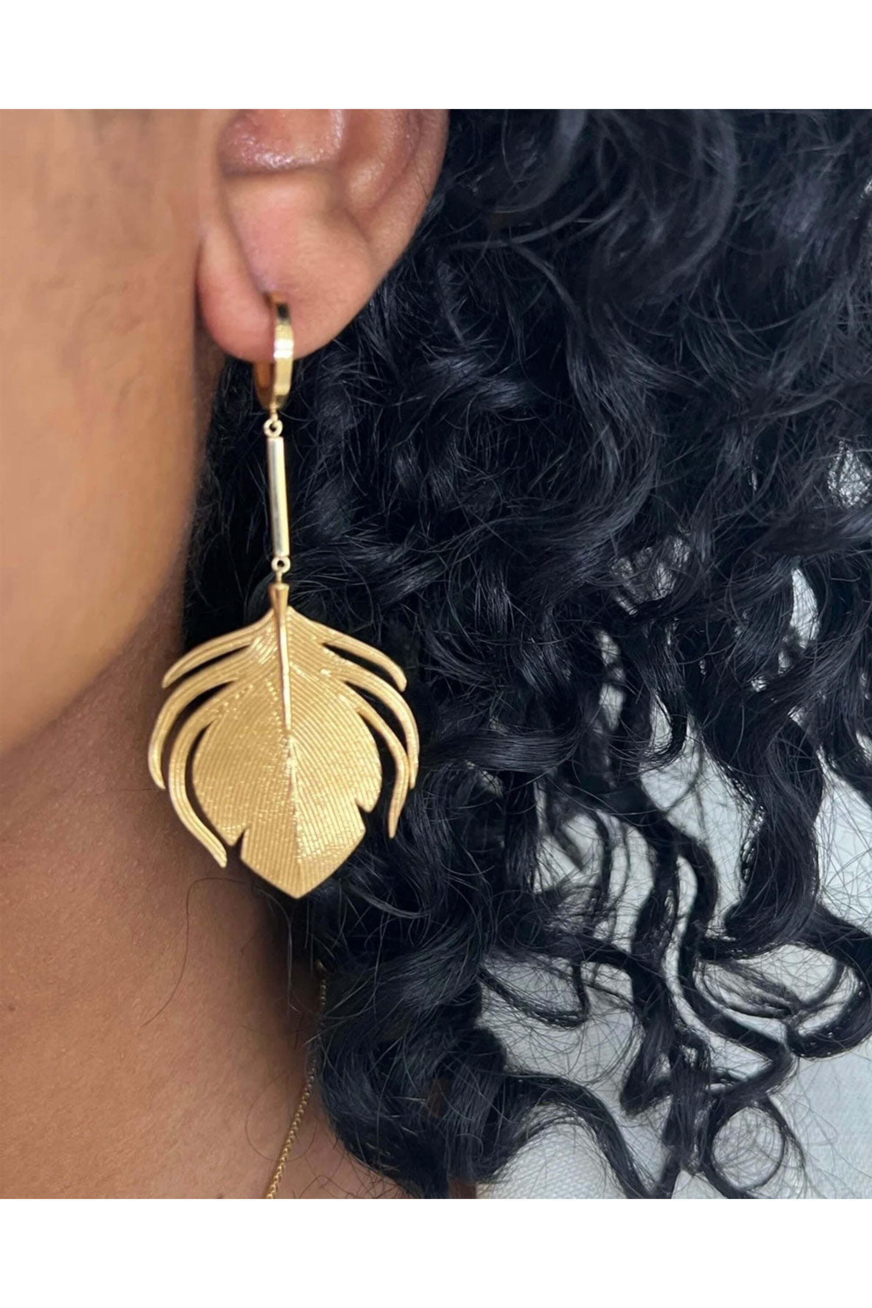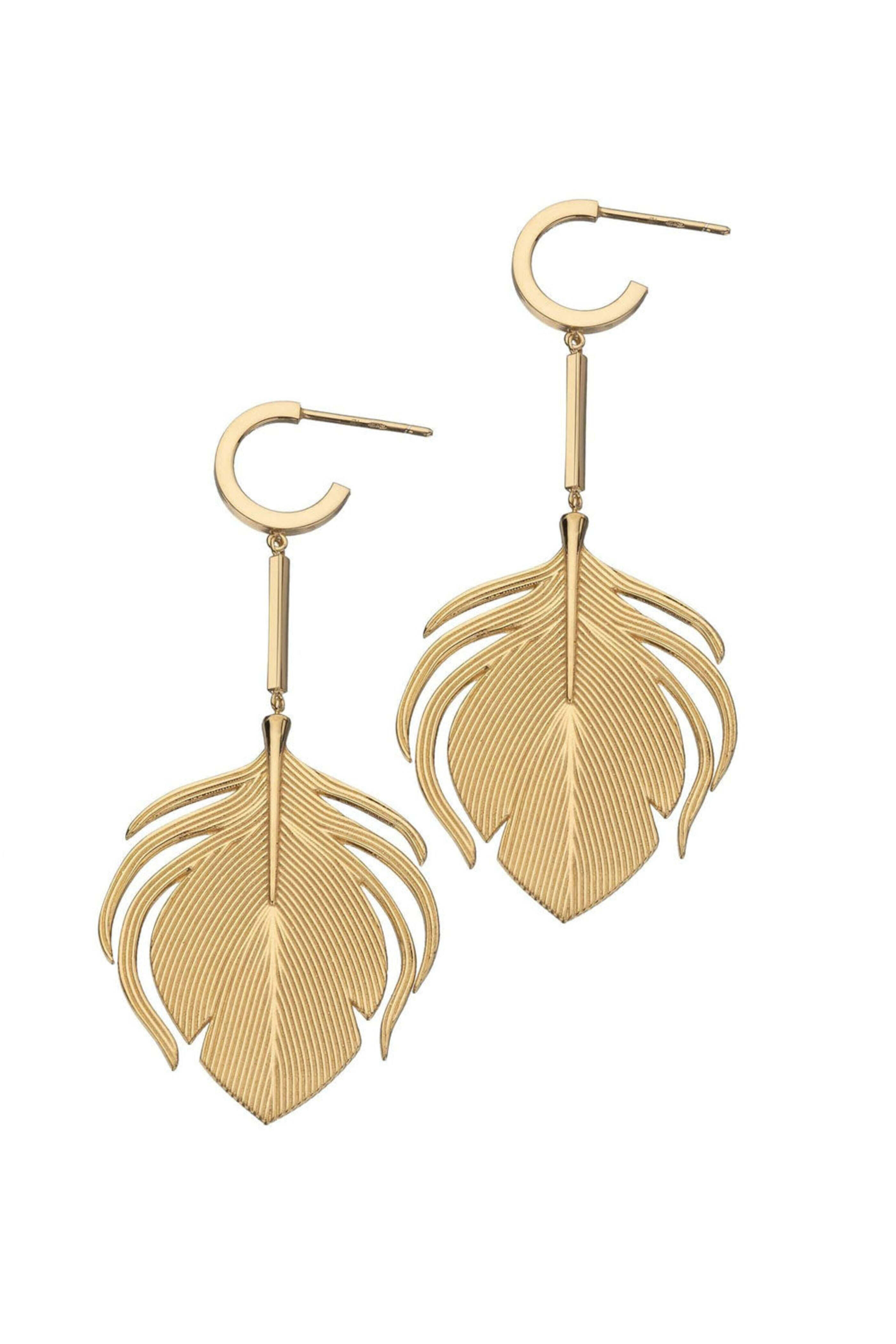 Jennifer Zeuner Lena Earrings. 14k gold plated silver. Huggies. Lena pendant hang from gold bar. Floral design. ½ D. 1.5 pendant. 2 L. Post back.