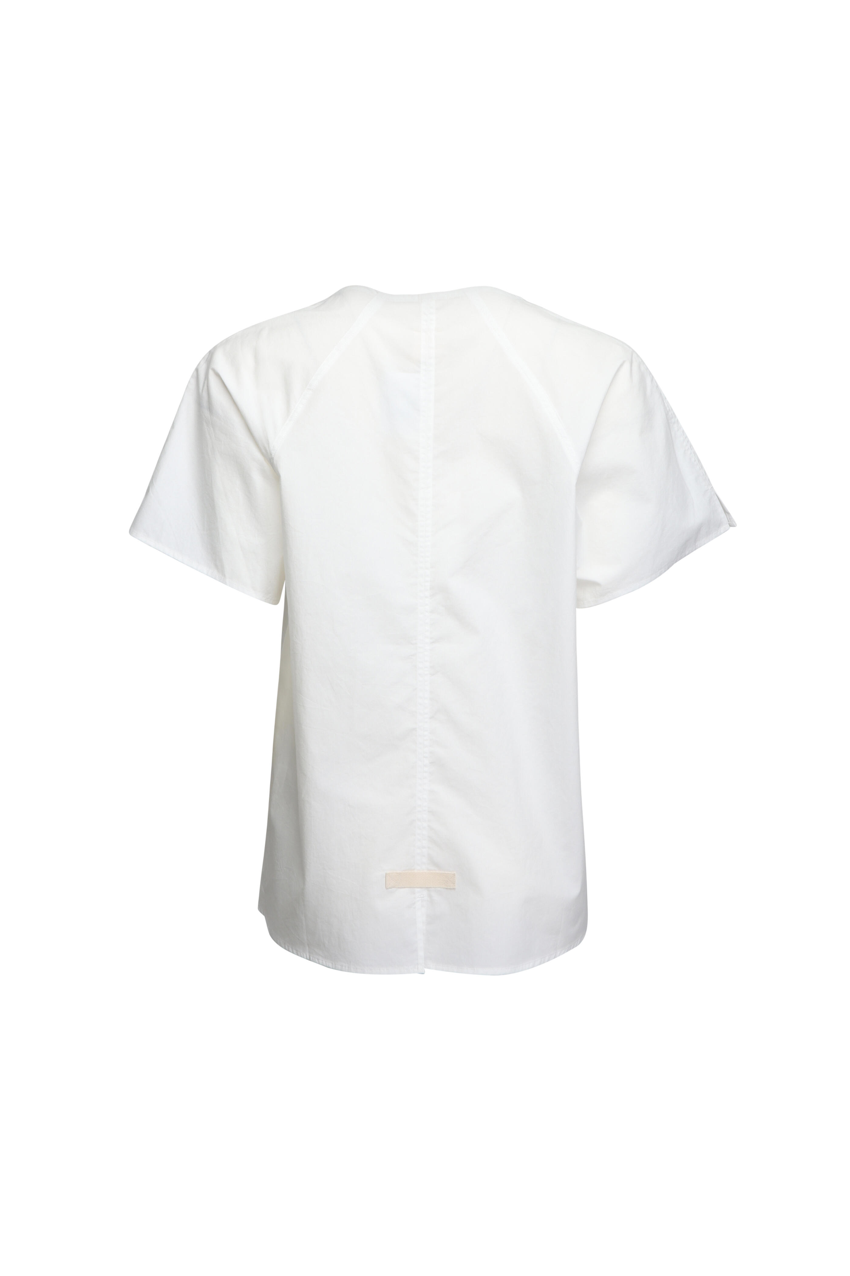 Round neck; button closure. Short raglan sleeves. Relaxed fit. Imported. Bust 75” (Size 1). 100% BCI cotton. Dry clean.