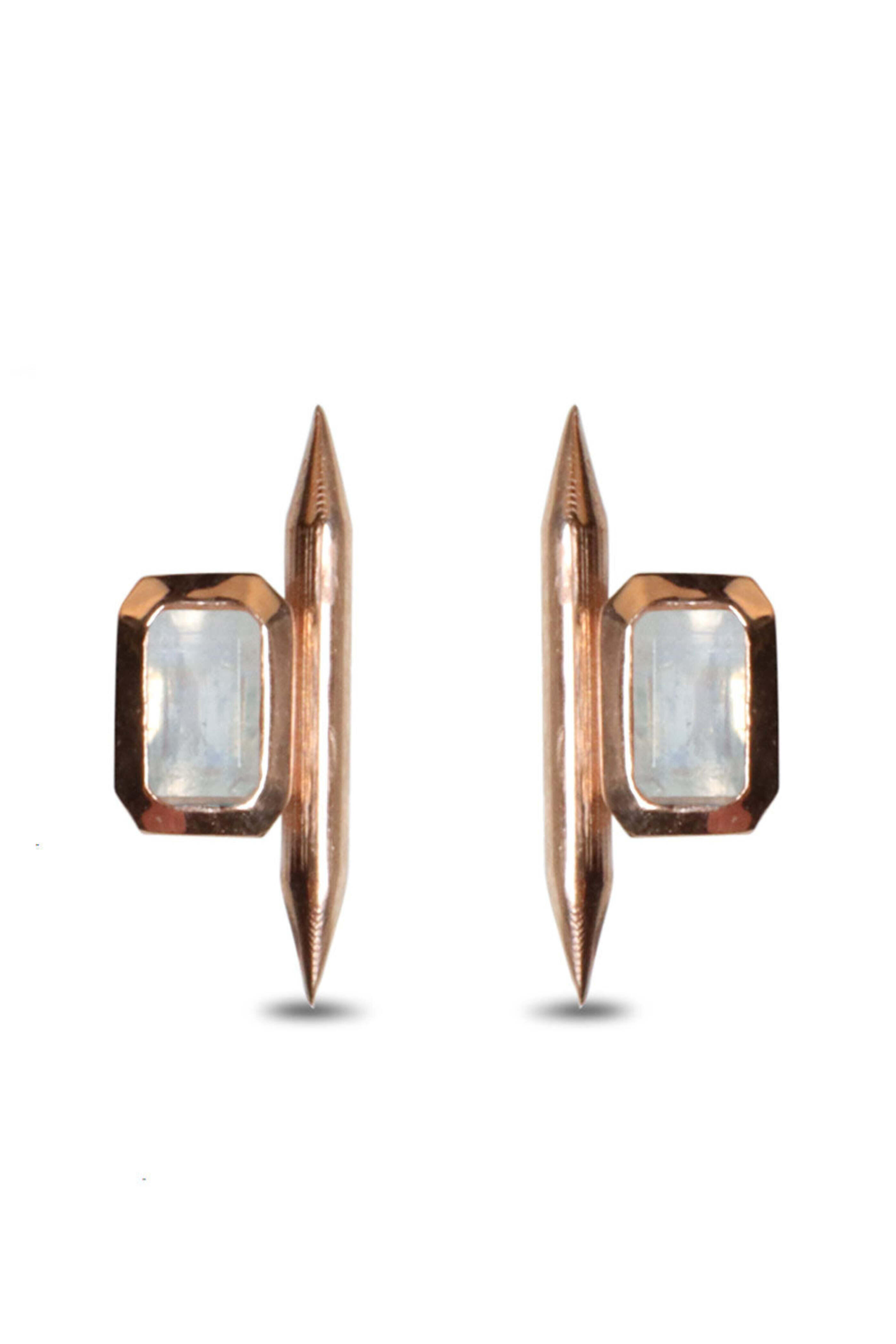- Ferocity Jewelry Rose Gold Moonstone Spike Earrings