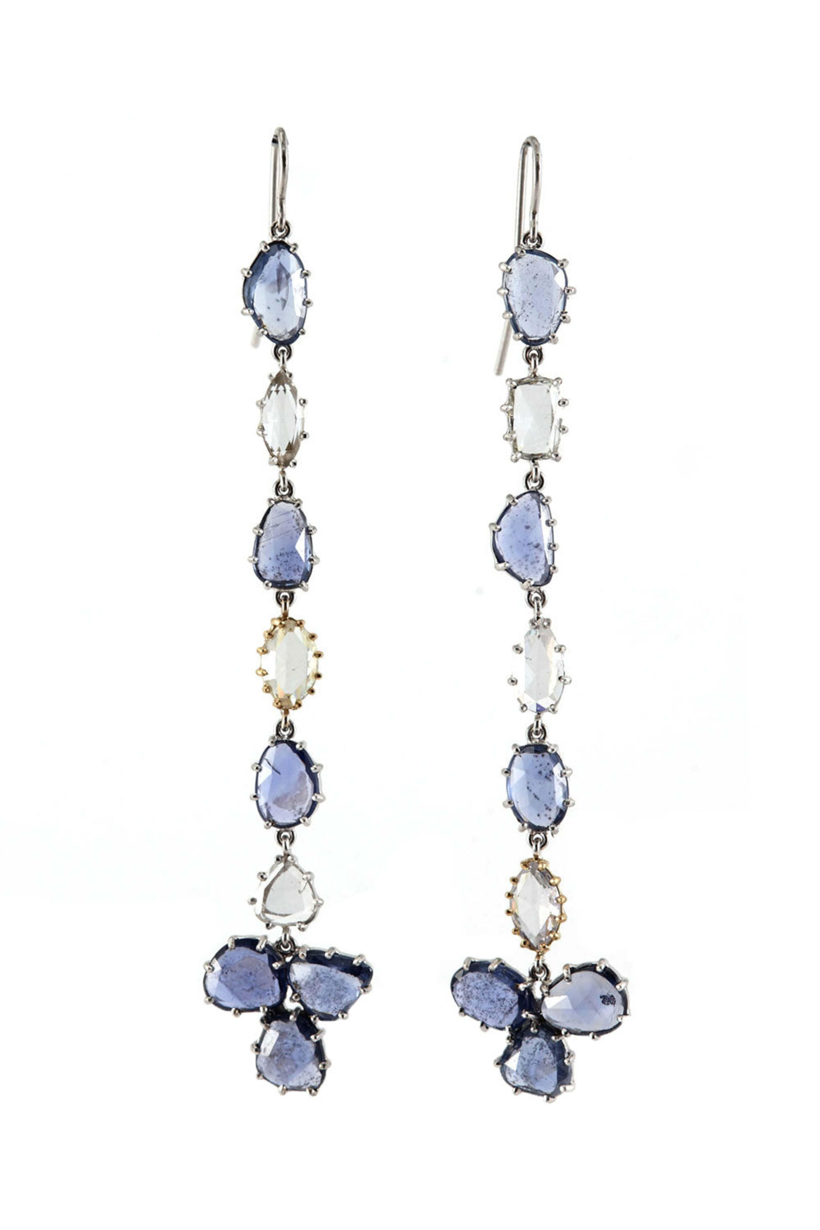 - Sylva & Cie Diamond and Sapphire Long Drop Earrings