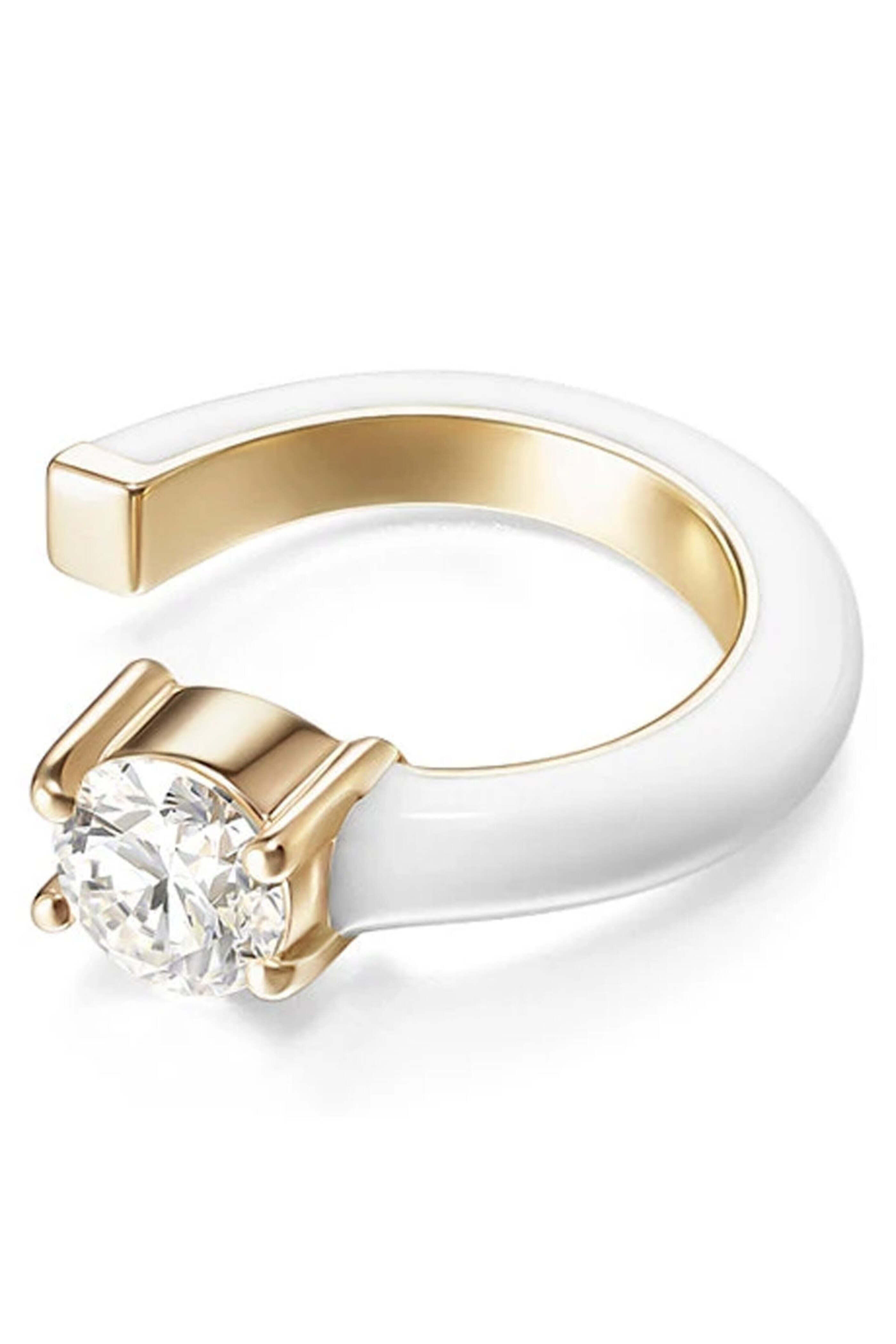 Yellow Gold White Enamel Diamond Aria U Earcuff II