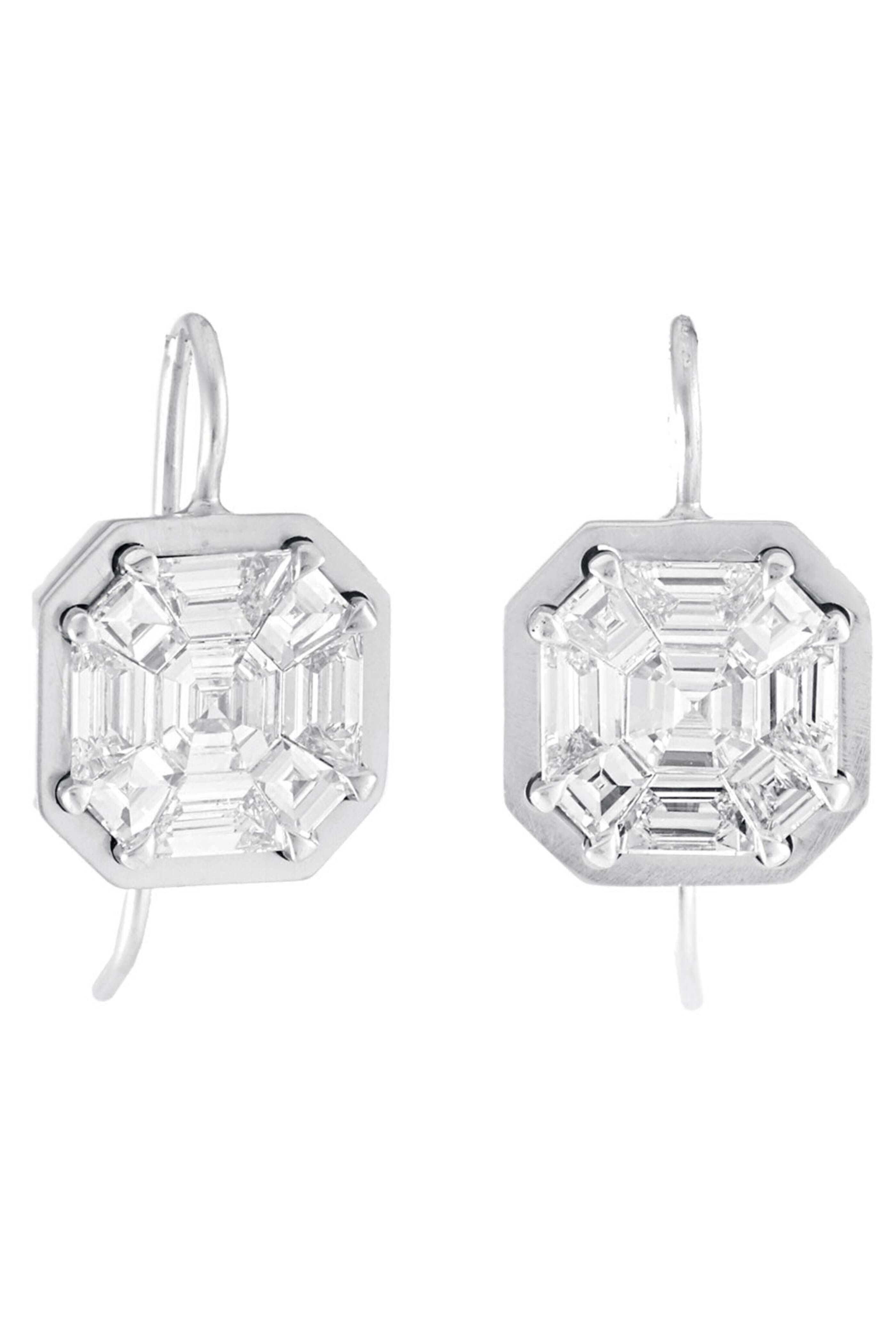 Sylva & Cie Mosaic Diamond Earrings. 18k white gold. Diamond 1.64 total carat weight. Mosaic diamonds. Wire back. Made in the USA.