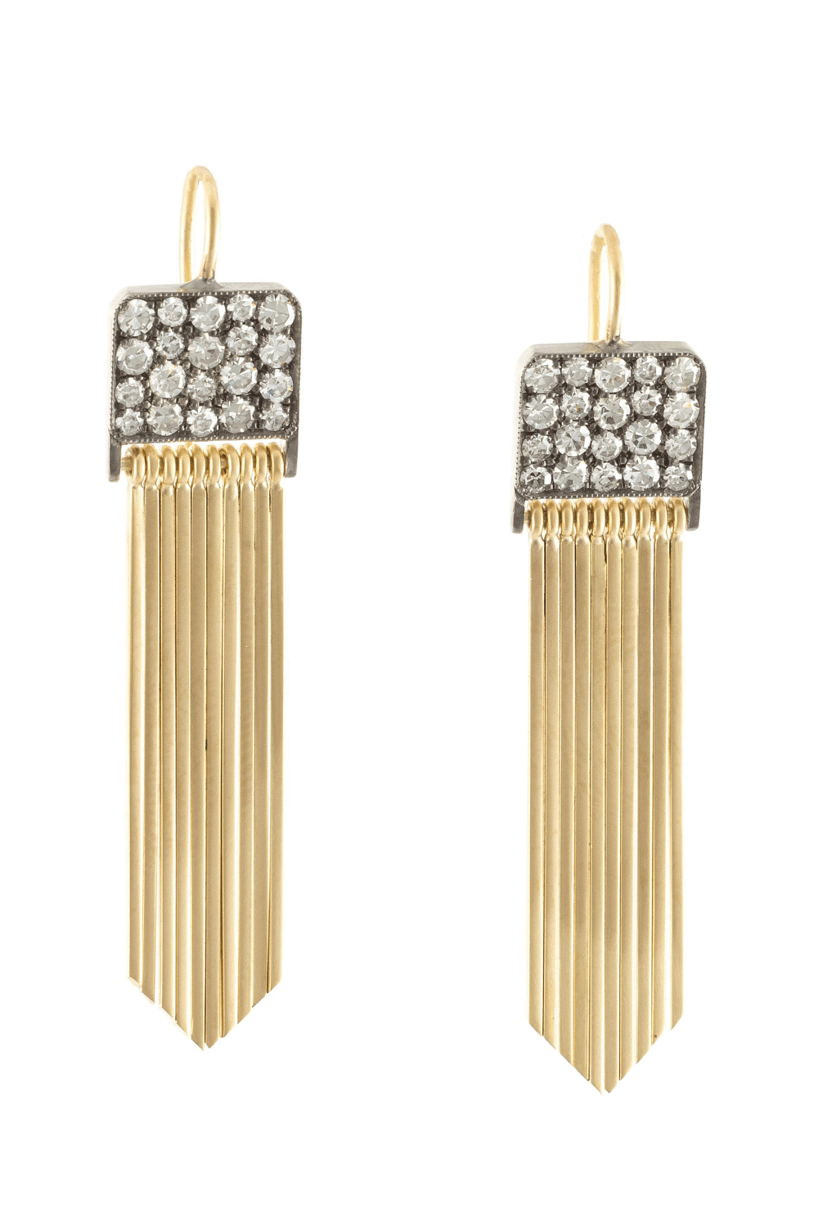 Sylva & Cie Ten Table Sima Earrings. 18k gold. Sterling silver. Diamond 0.85 total carat weight. Single cut diamond. Tassel design. Push pack post. Wire back. Made in the USA.