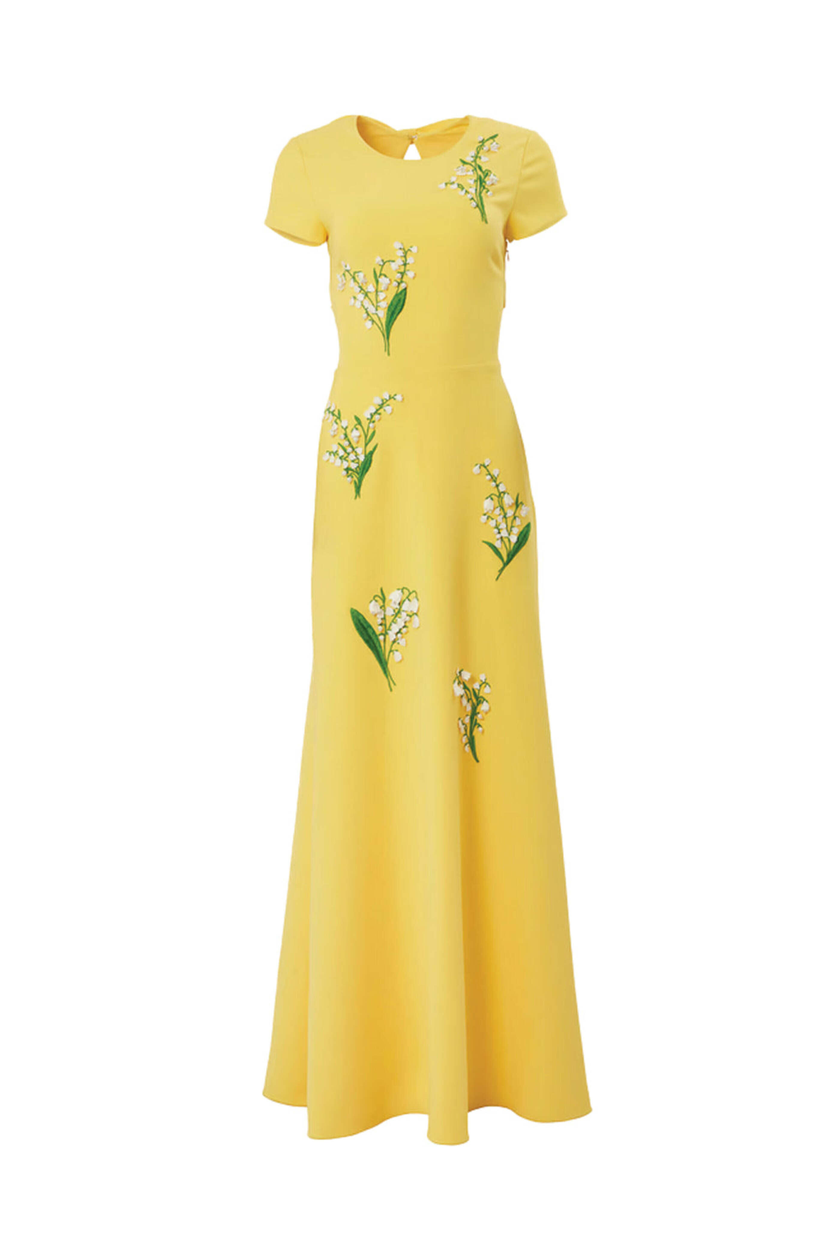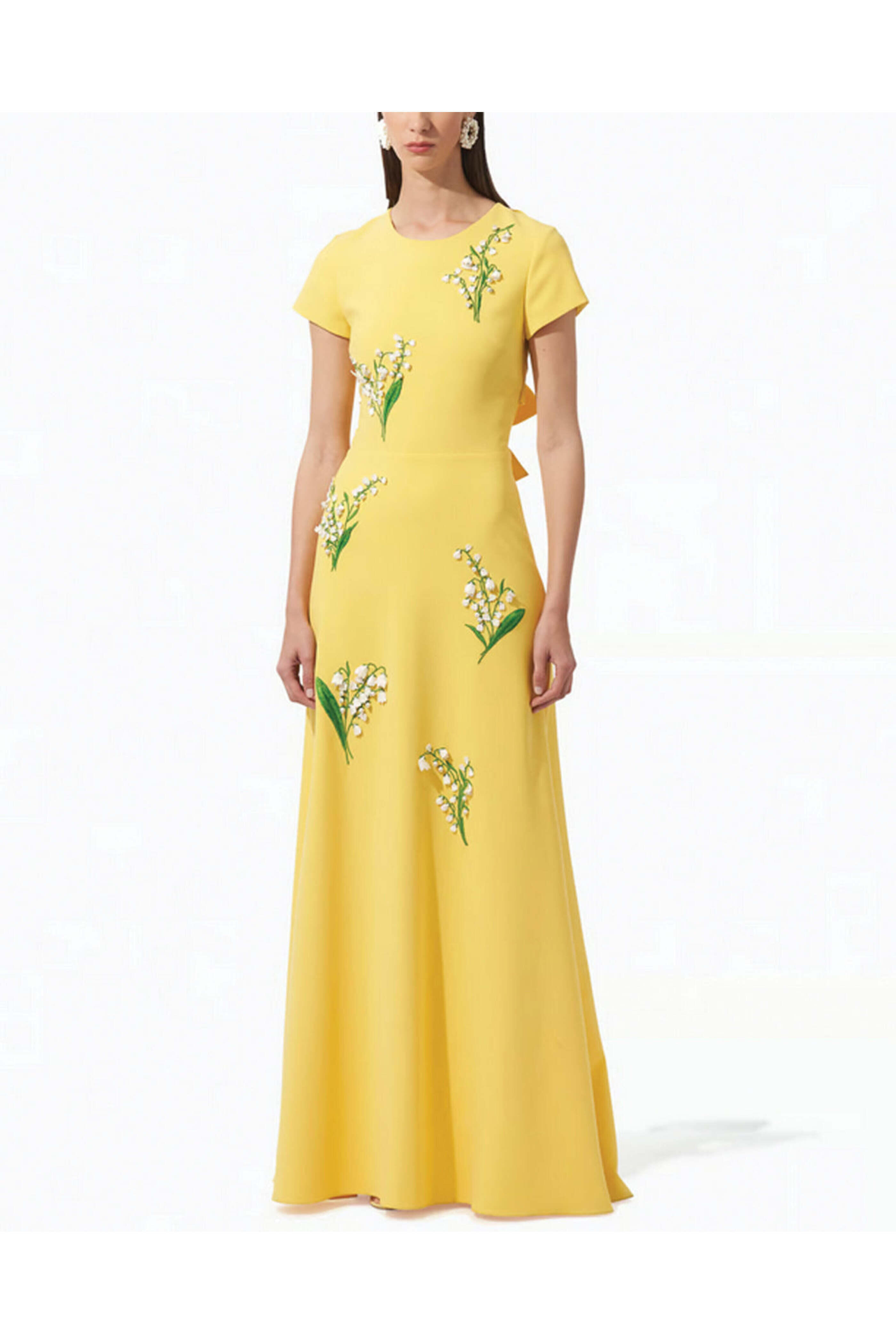 - Carolina Herrera Sunshine Lily Valley Embellished Short Sleeve Gown
