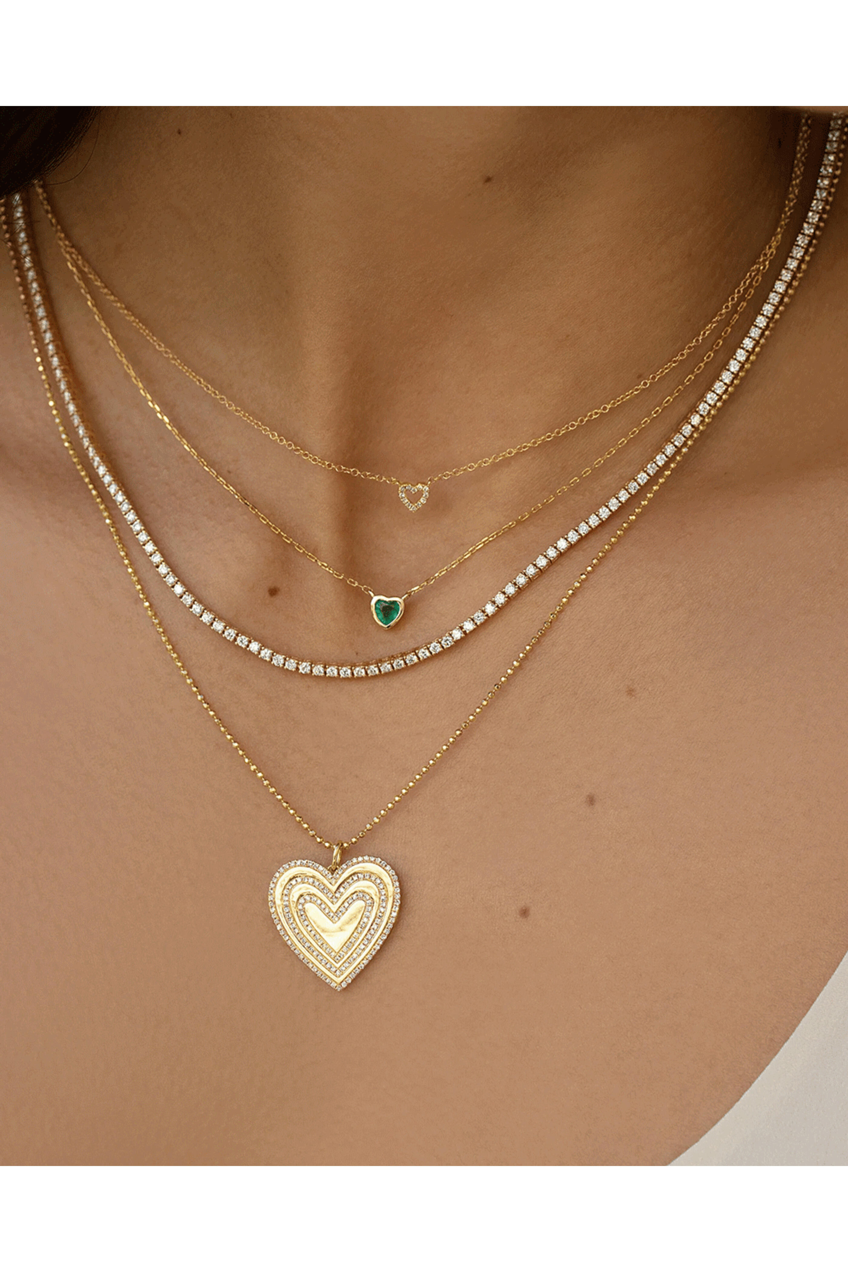14k Yellow Gold Baby Diamond Open Heart Necklace