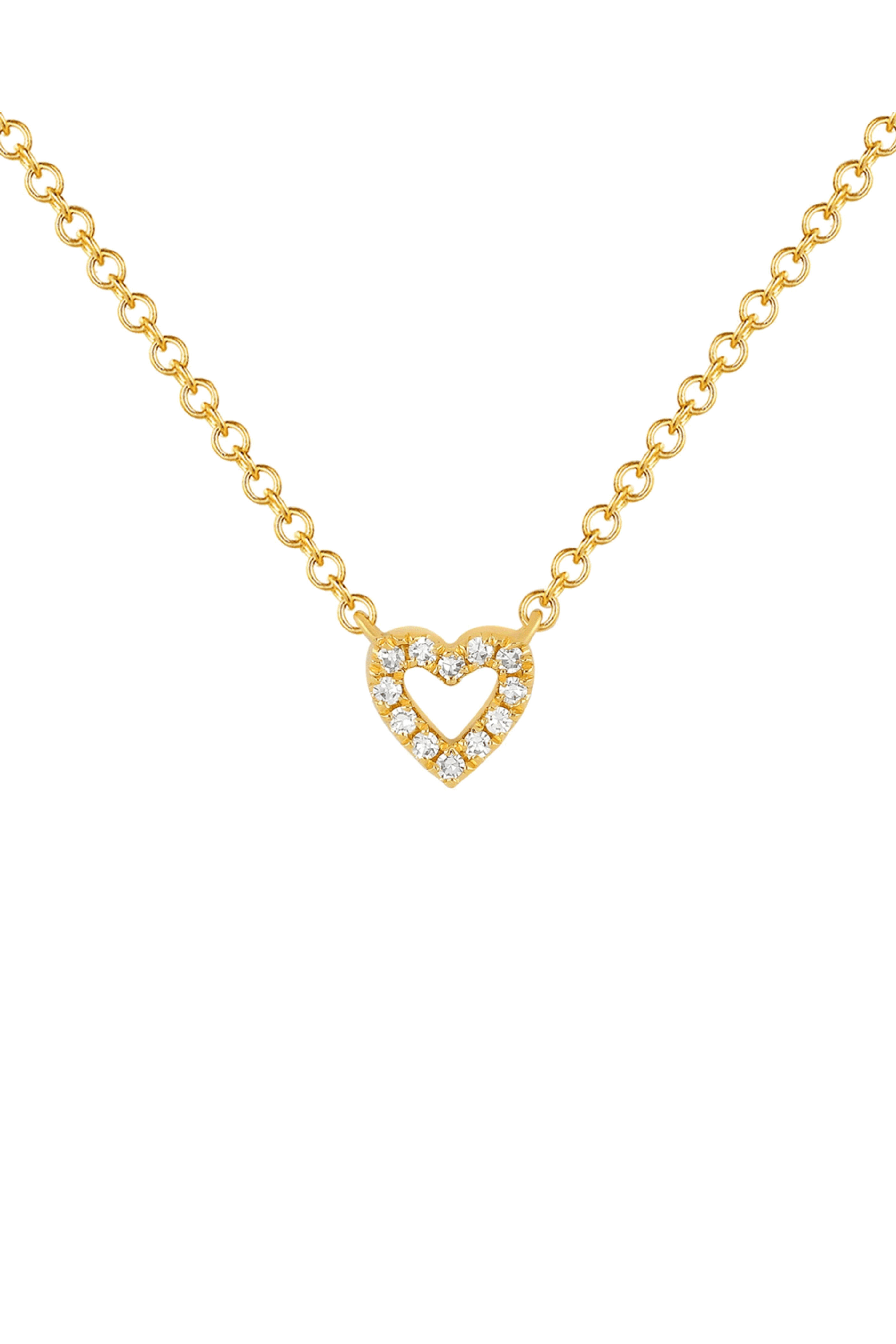 - EF Collection 14k Yellow Gold Baby Diamond Open Heart Necklace