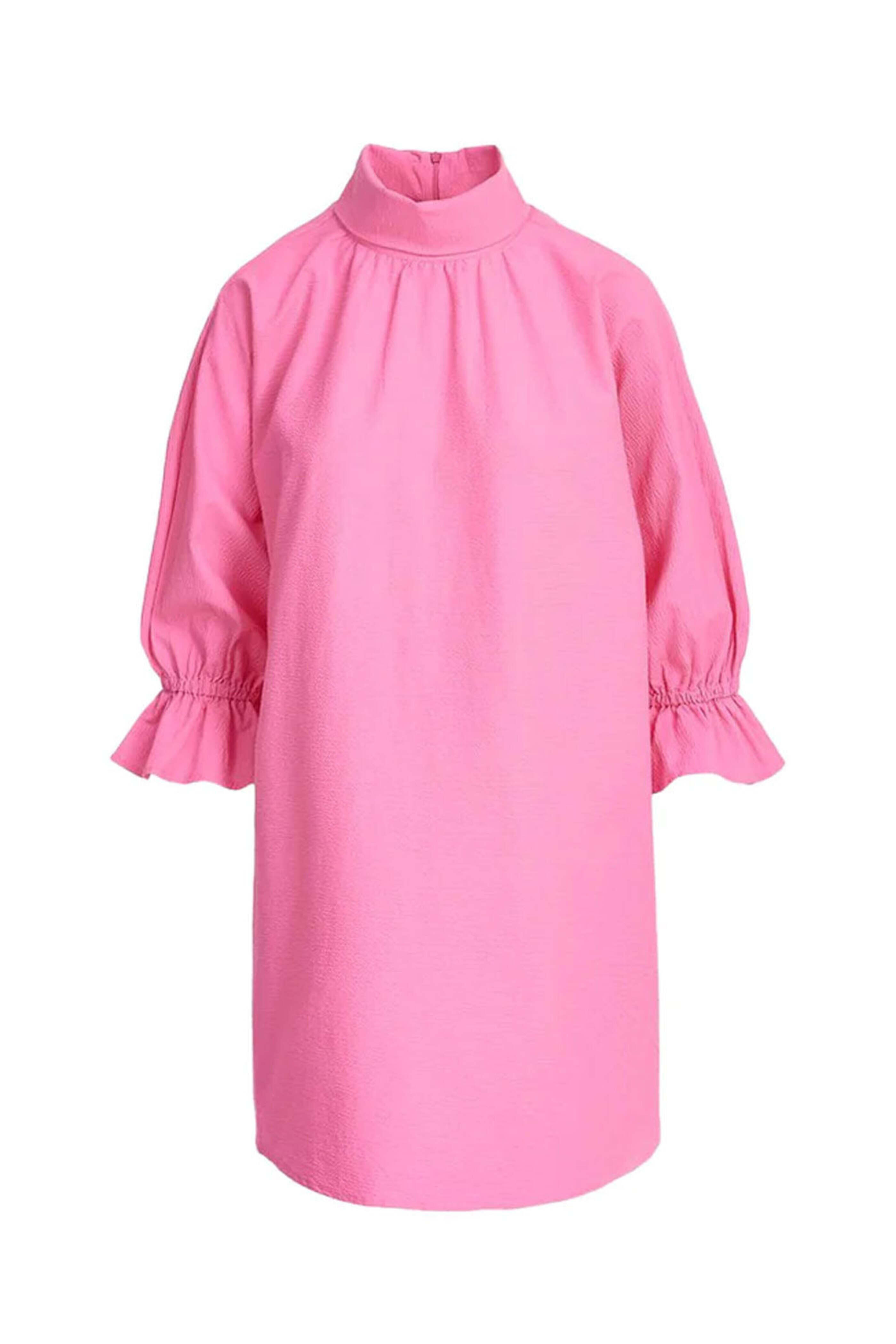 Essentiel Antwerp High Voltage Elon Puff Sleeve Mini Dress . Stand-up collar. 3/4 puffed length sleeves with elasticated cuffs. Hidden zip fastening at the back. Relaxed fit. Mini. 98% cotton 2% polyurethane .