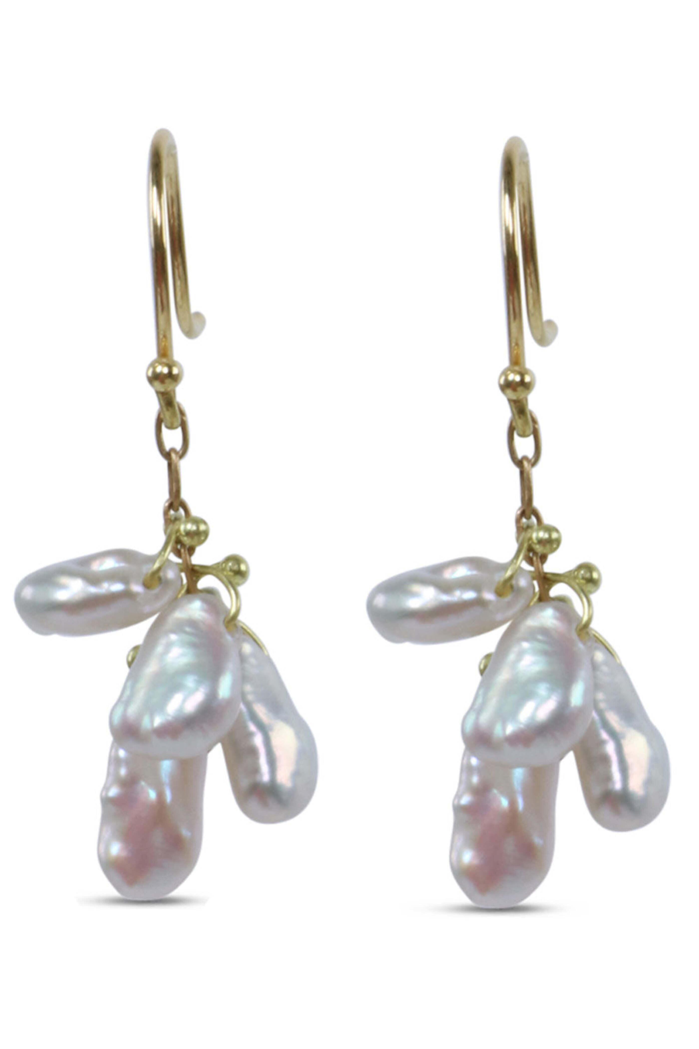 Ten Thousand Things Keshi Pearl Cluster Earrings. 18k gold. Keshi pearl. Cluster design. Drop style. French wire back. Handmade in New York.
