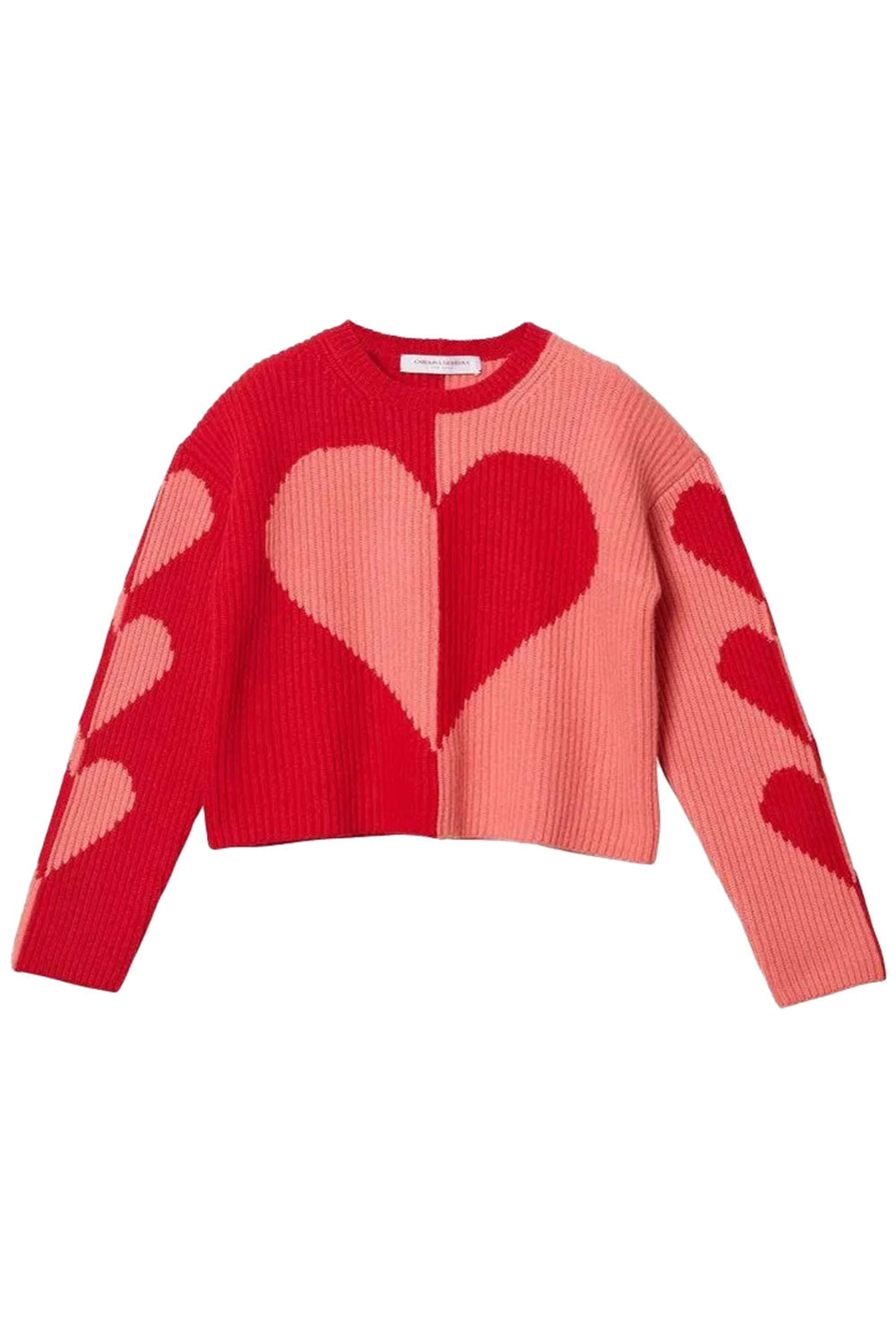 - Carolina Herrera Lacquer Crew Neck Heart Intarsia Pullover