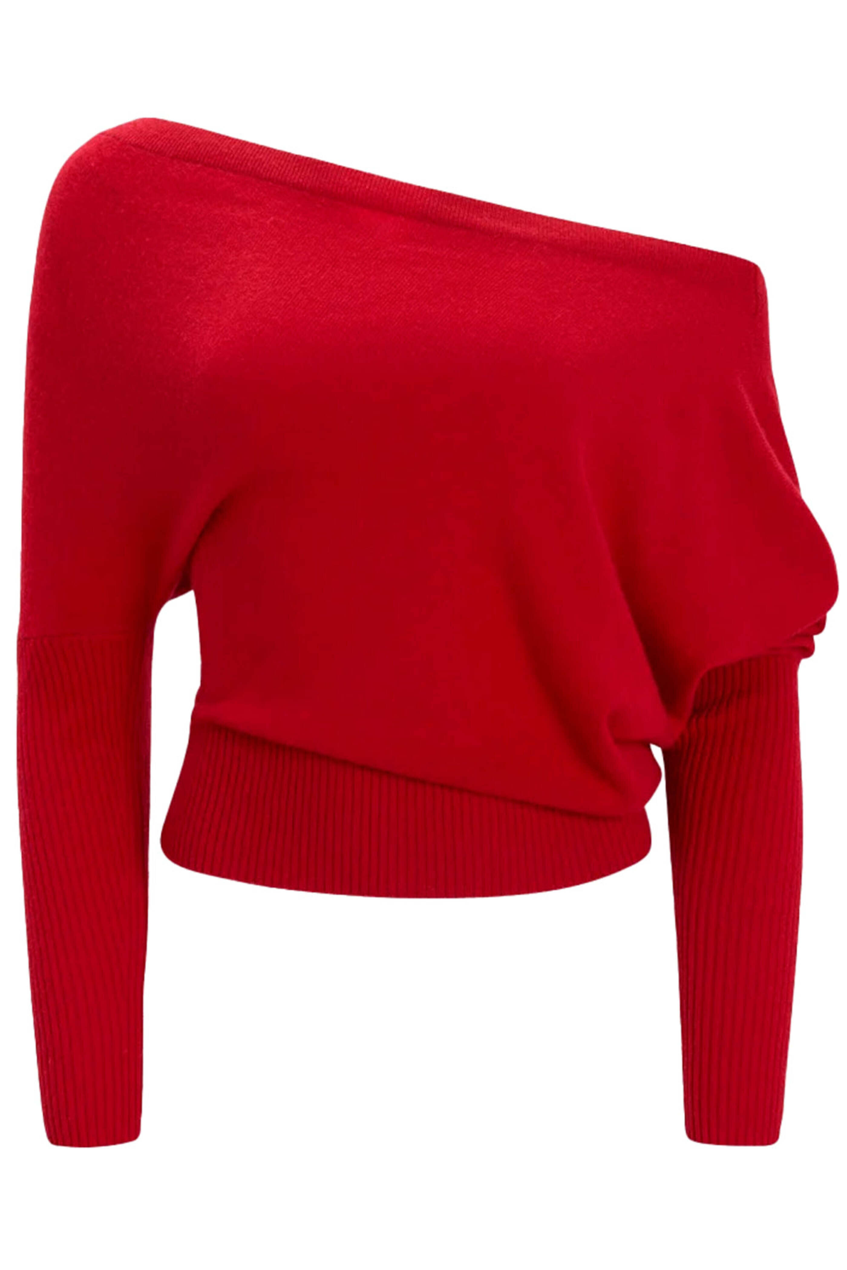 Altuzarra Grenadine Paxi Sweater. Off the shoulder neckline. Long dolman sleeves. Relaxed fit. Ribbed extended cuffs and hem. Made in Italy. 100% cashmere.