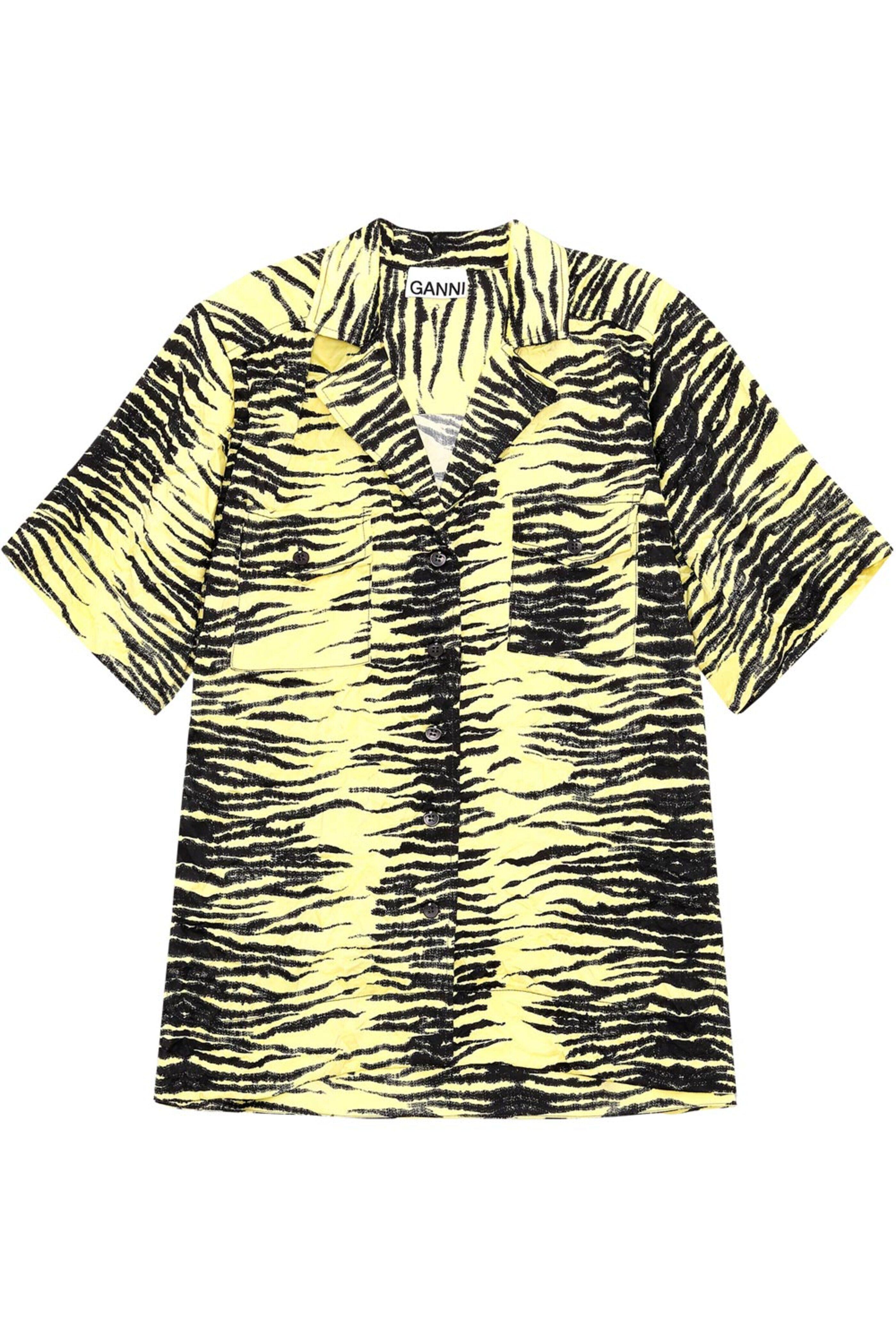 - Ganni Pale Banana Crinkled Satin Button Up Shirt