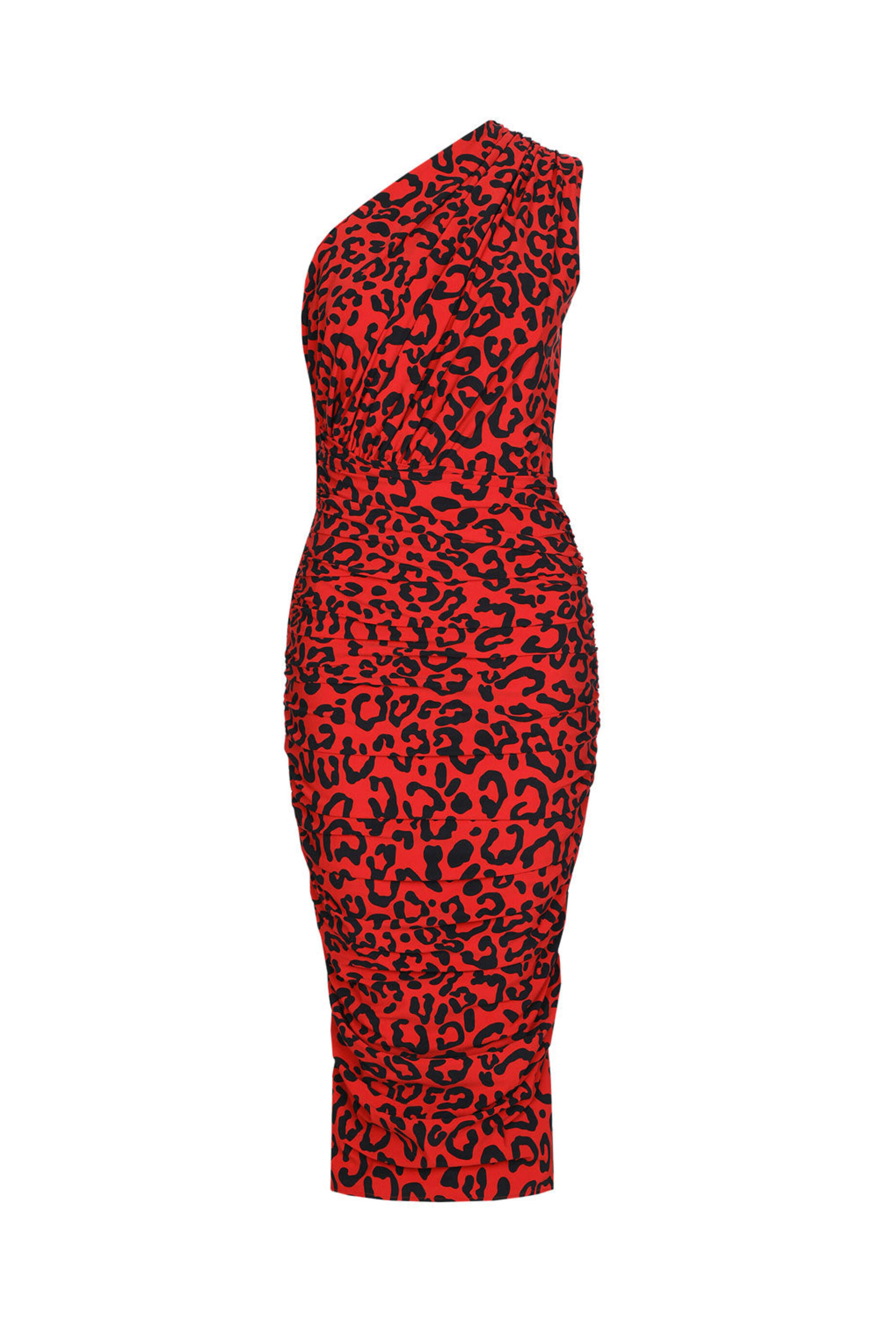 - Dolce & Gabbana Rosso Leopard Print Single Shoulder Dress
