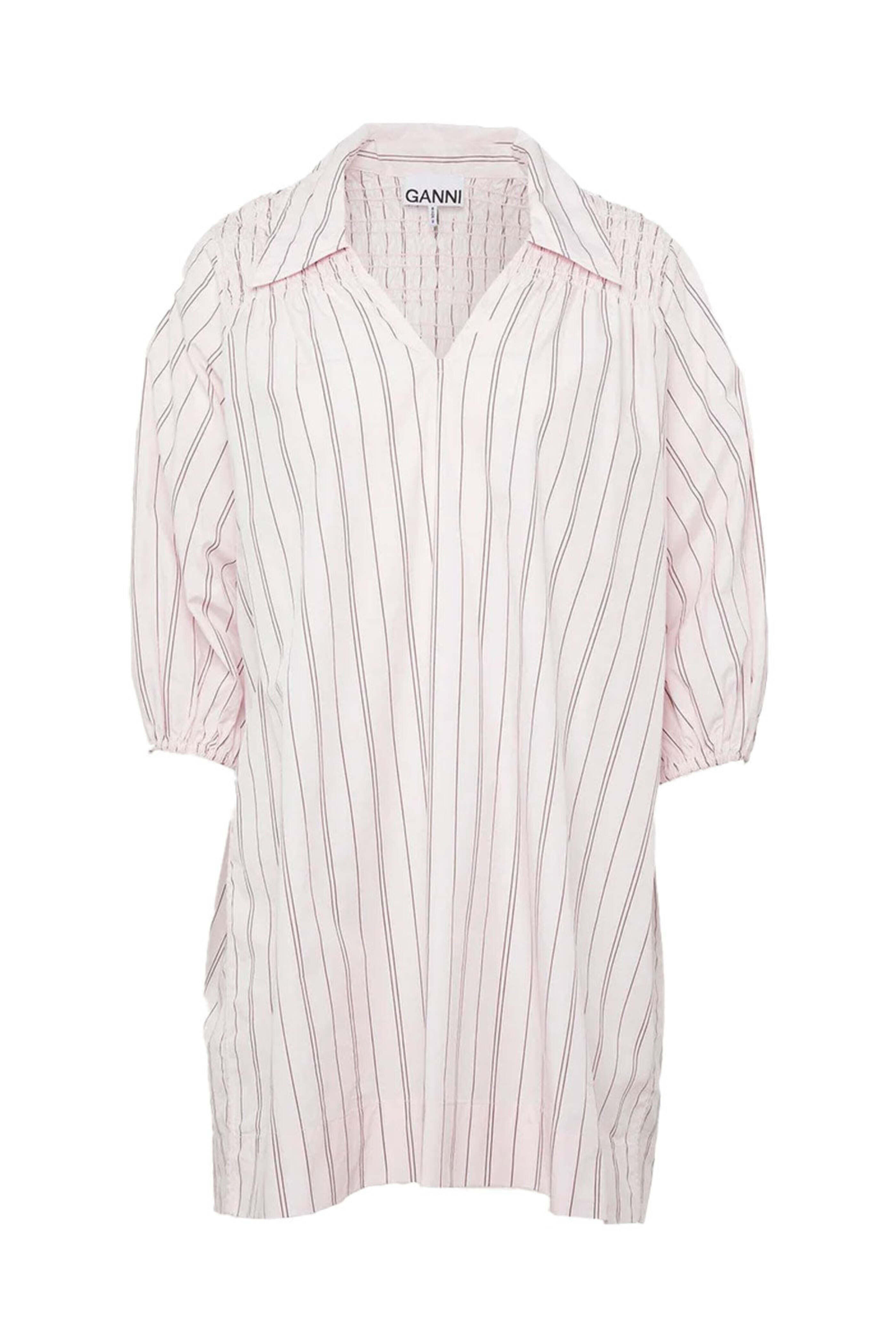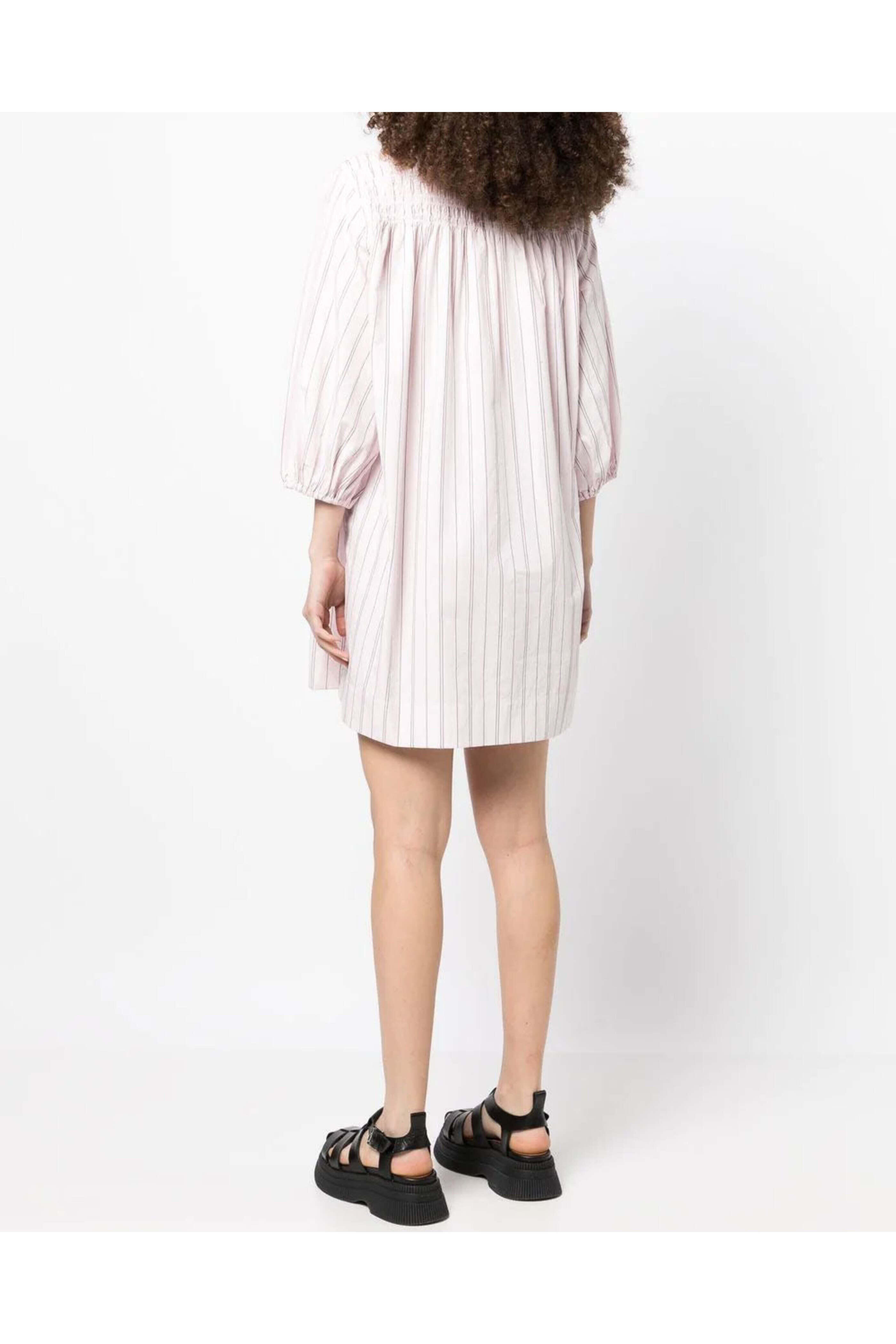 - Ganni Shrinking Violet Stripe Cotton V Neck Mini Dress