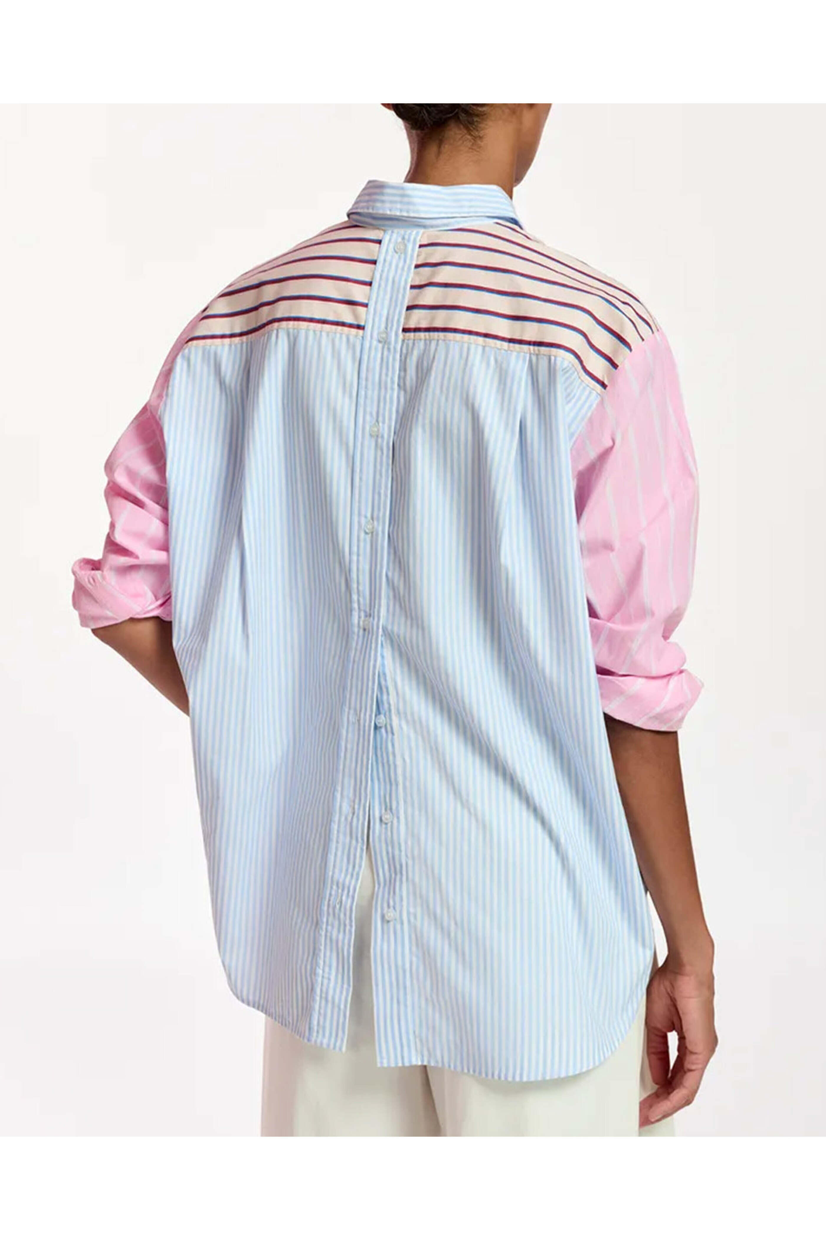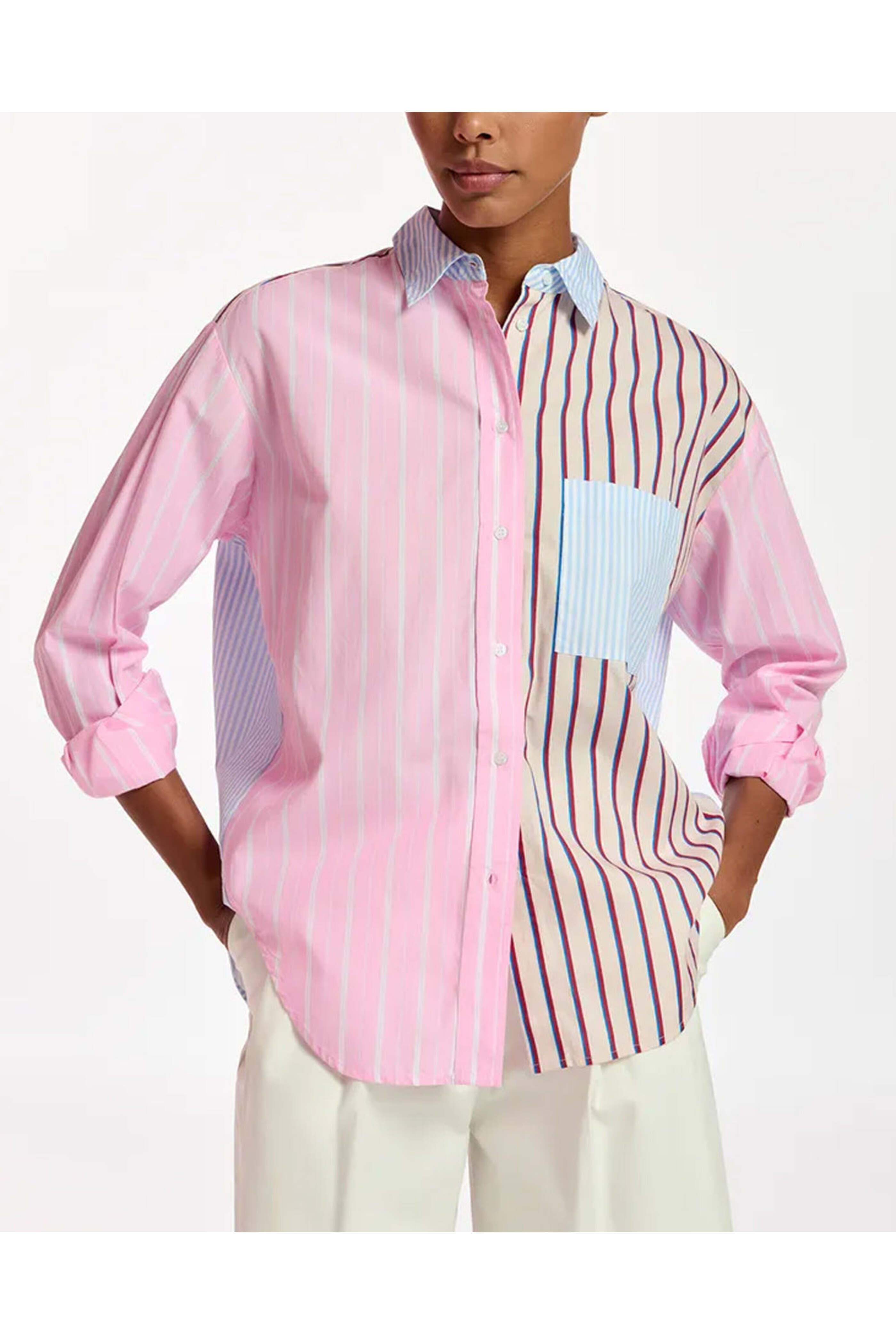 - Essentiel Antwerp Off White Patchwork Stripe Famille Shirt