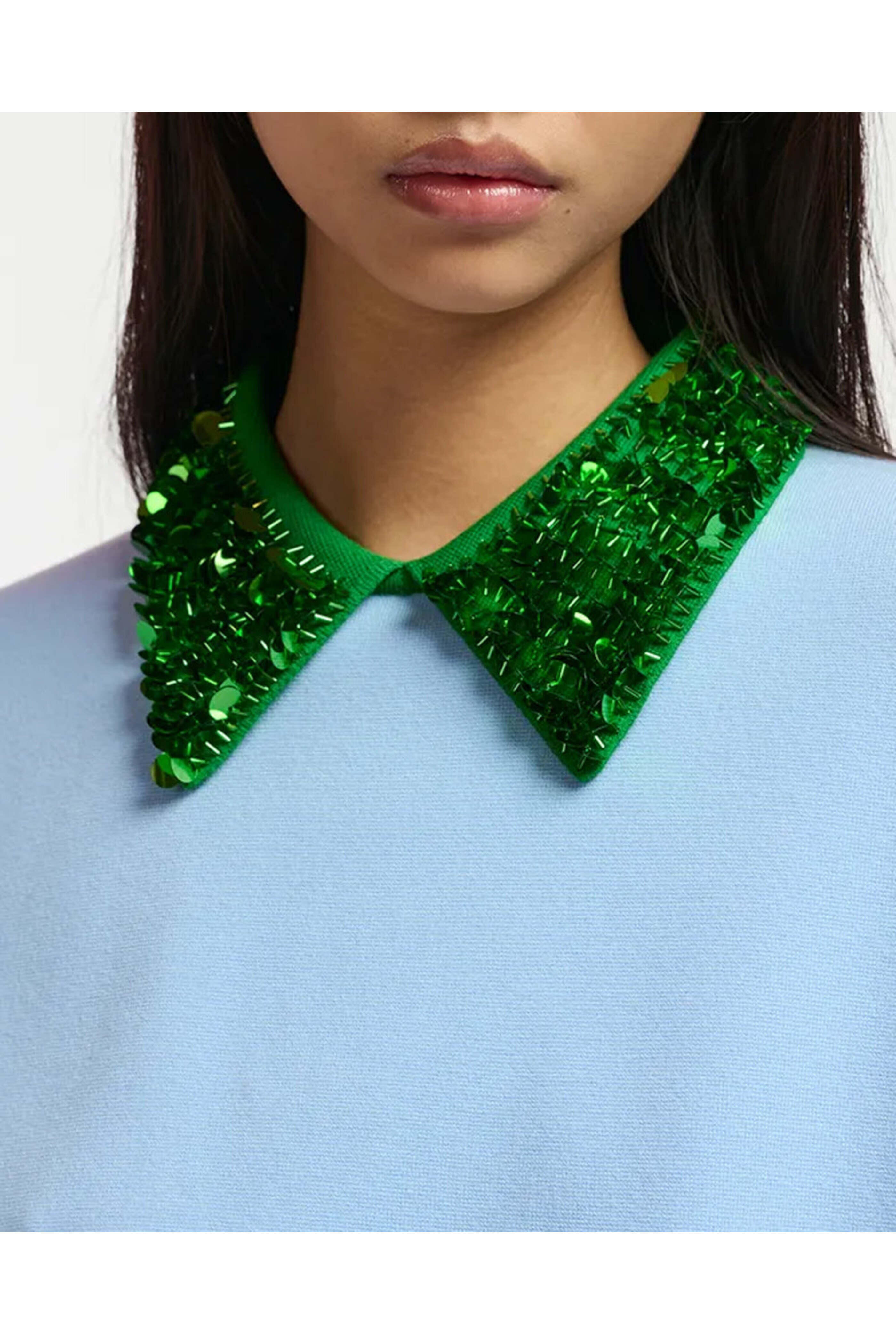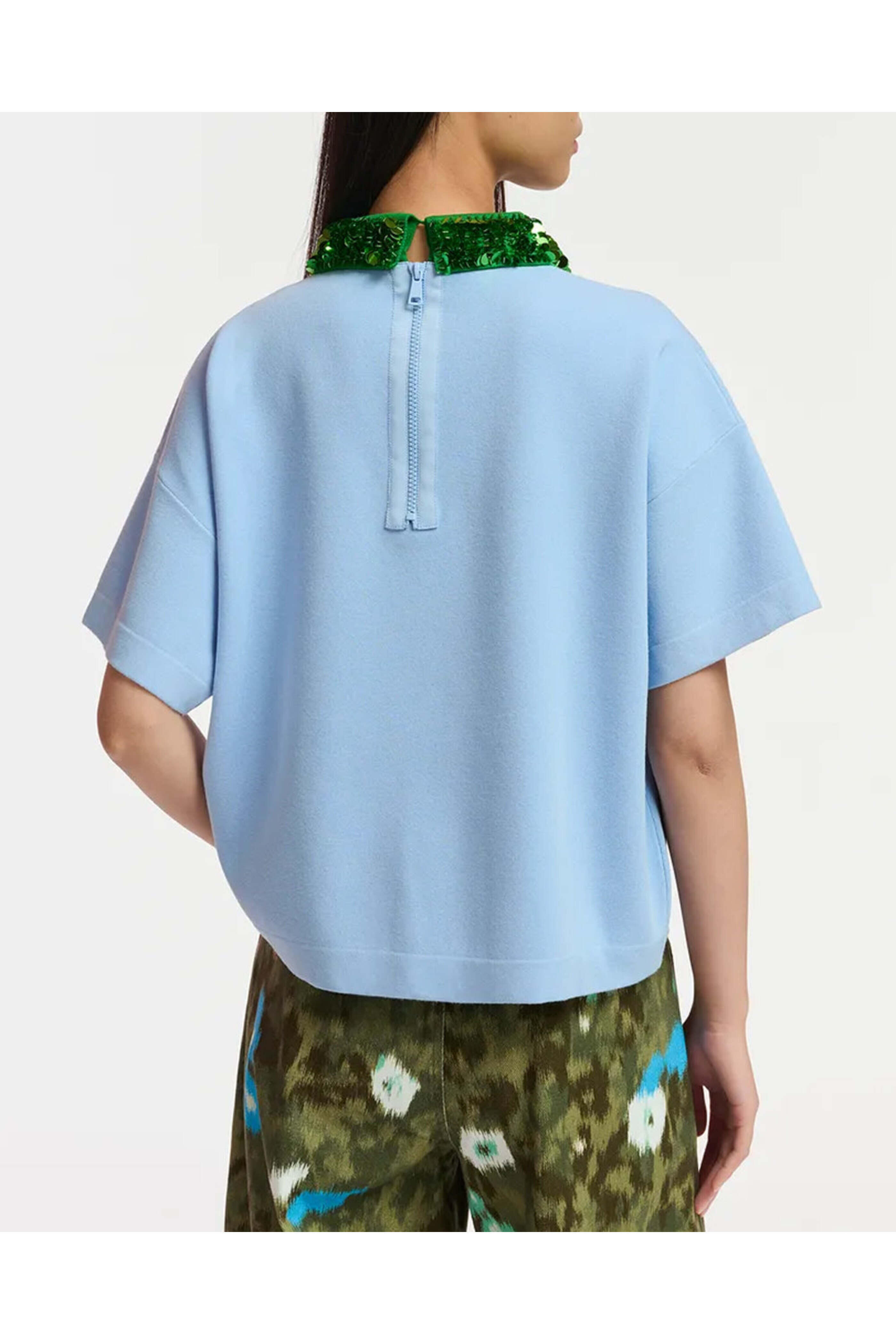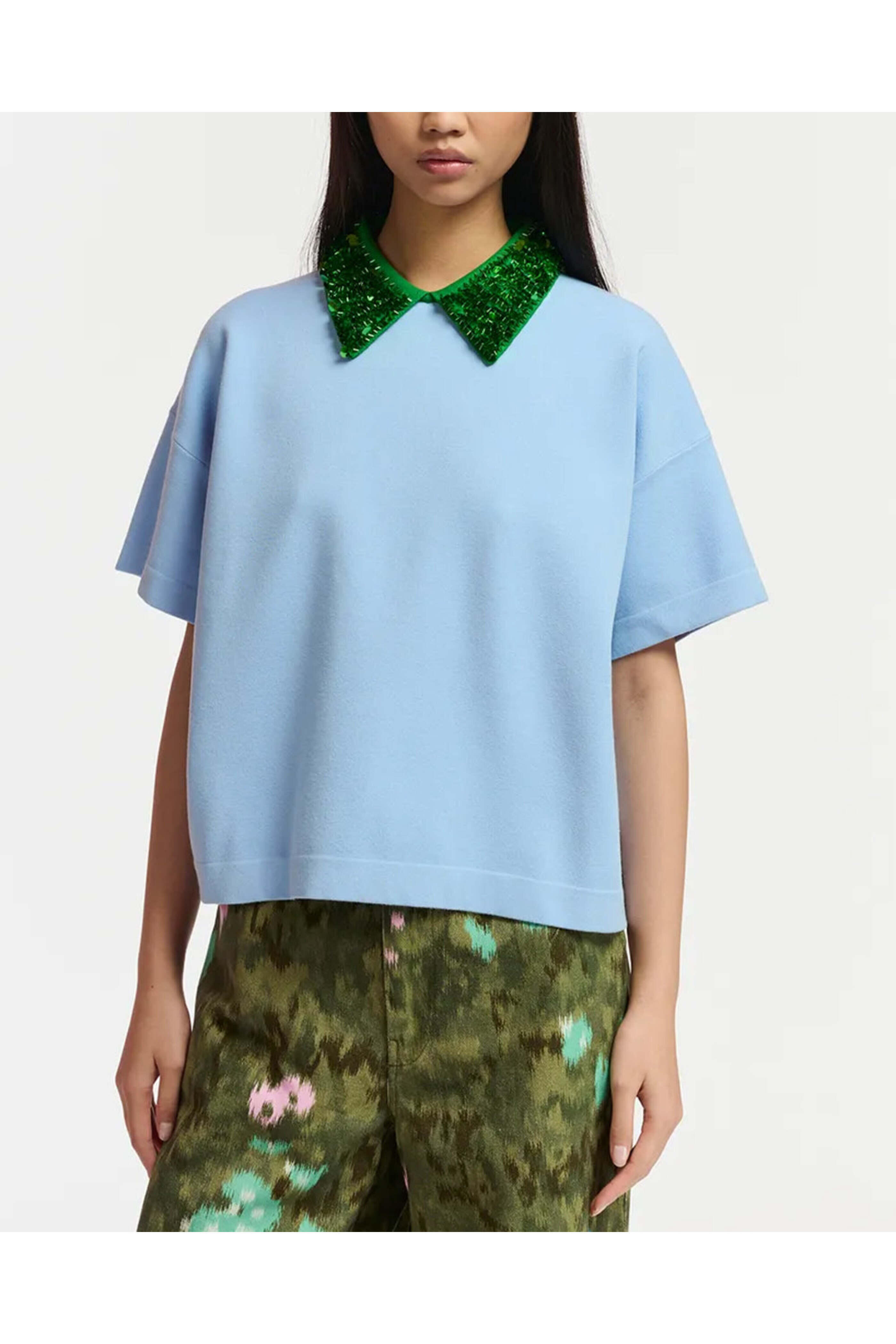 - Essentiel Antwerp Feeling Blue Filano Embellished Collar Top