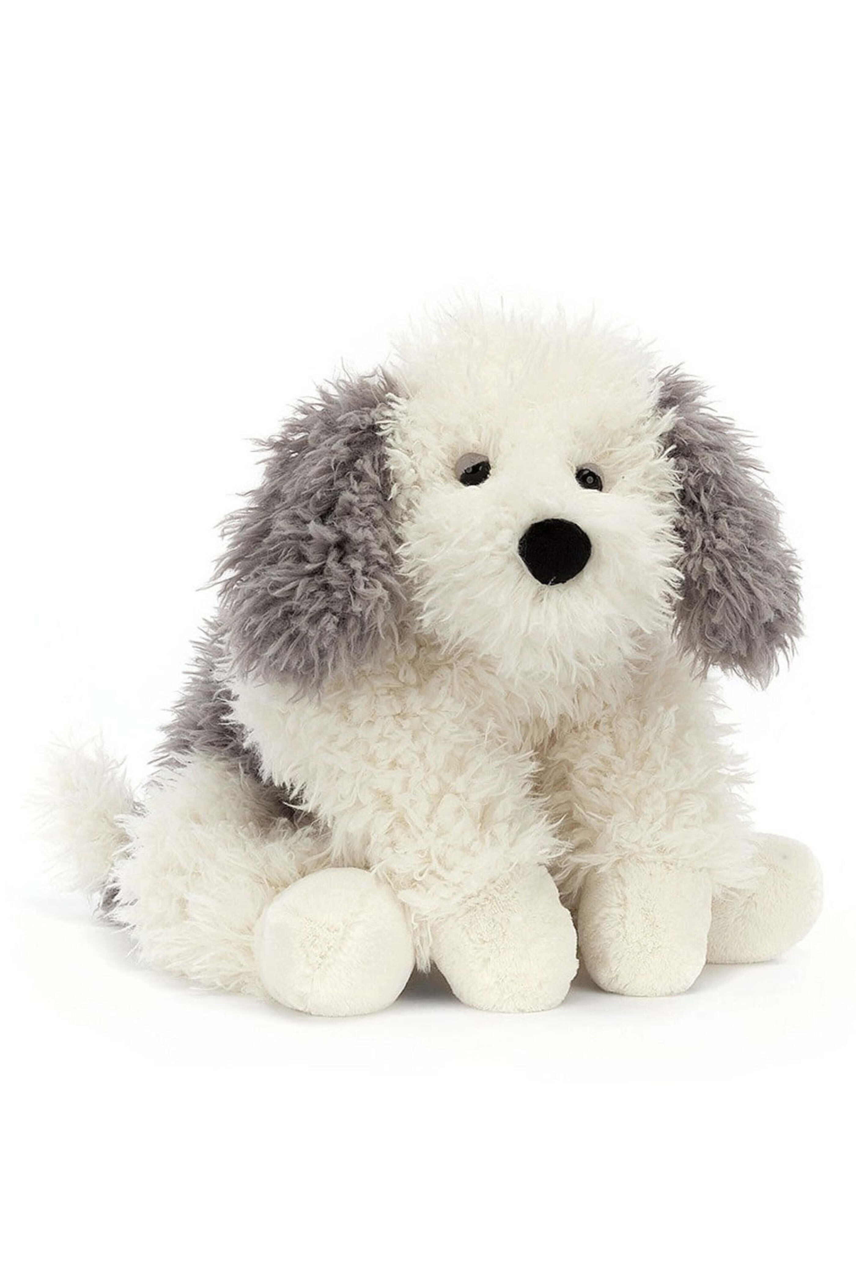 Jellycat Floofie Sheepdog. Suitable for all ages. Polyester with plastic pellet fill. 16€W x 10€H.