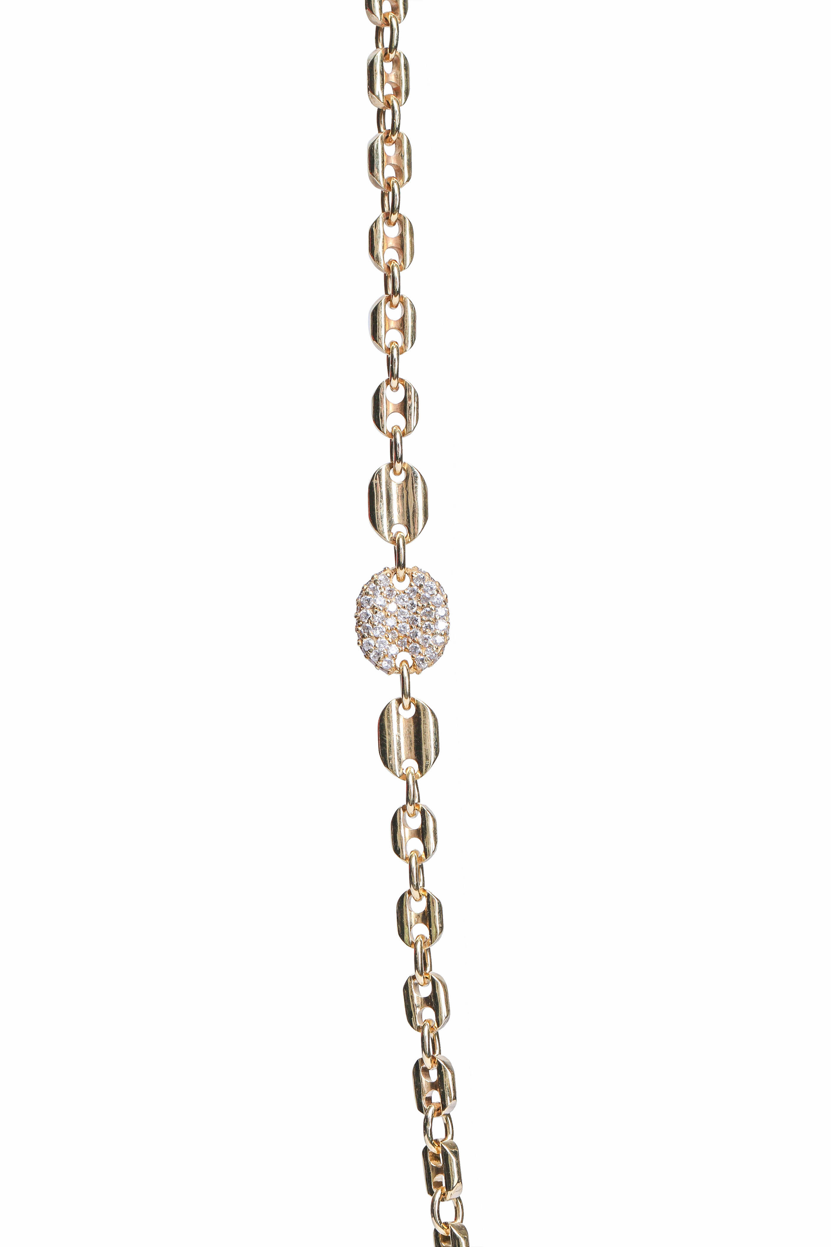 14k gold. Diamond 1.00 total carat weight. Gucci inspired designed links. Single diamond link. Chain links. Lobster claw clasps. Handcrafted in L.A.. Length: 25”.