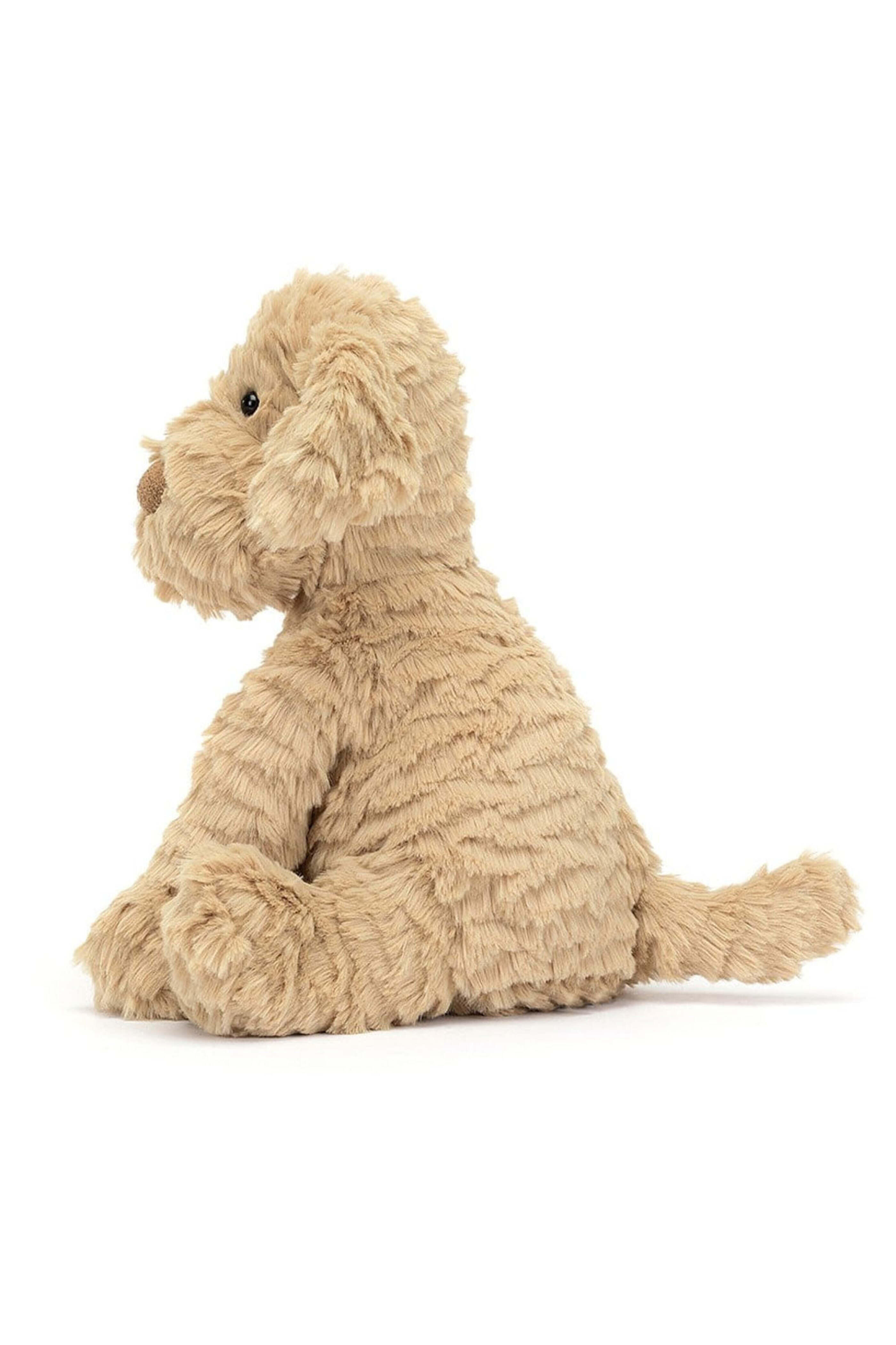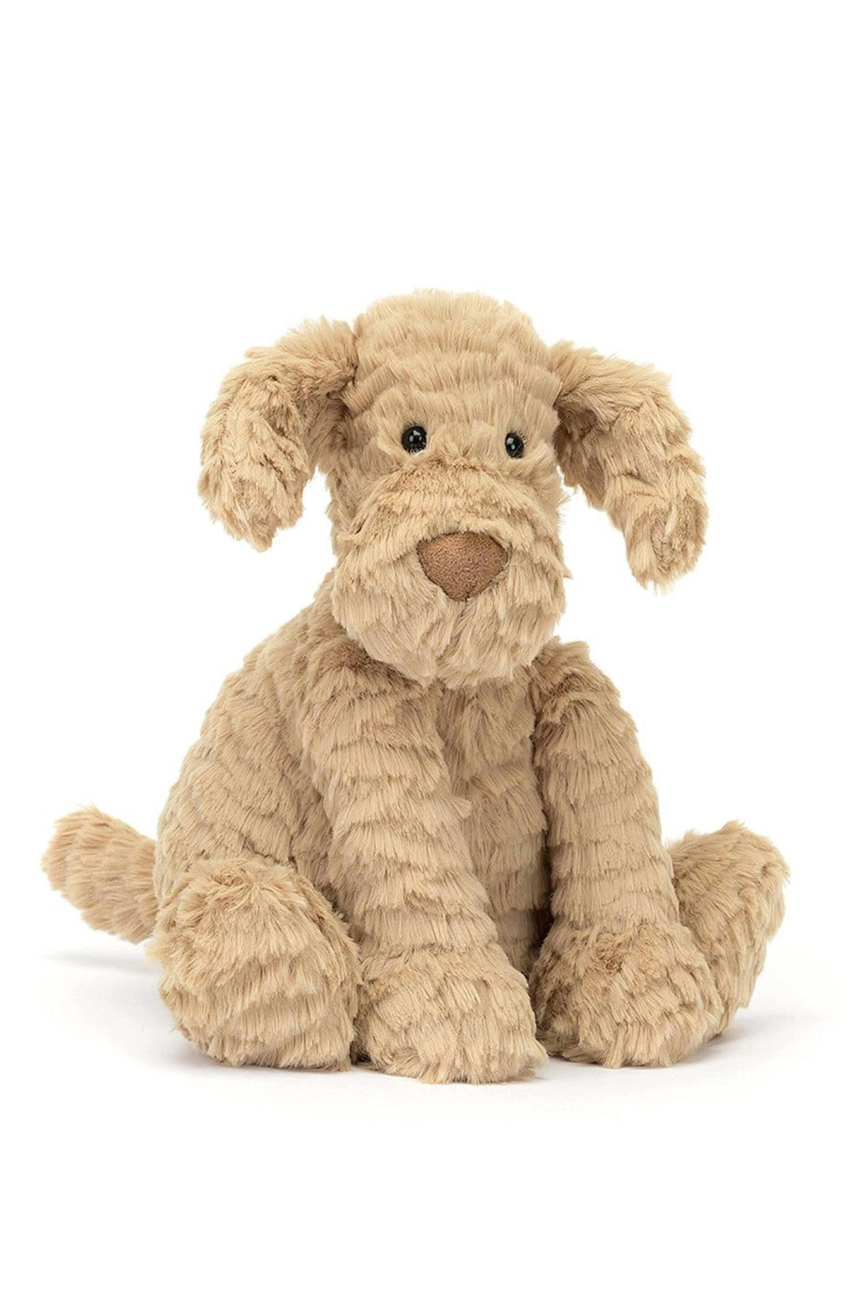 Jellycat Fuddlewuddle Puppy. Suitable for all ages. Polyester with plastic pellet fill. 5€W x 9€H.