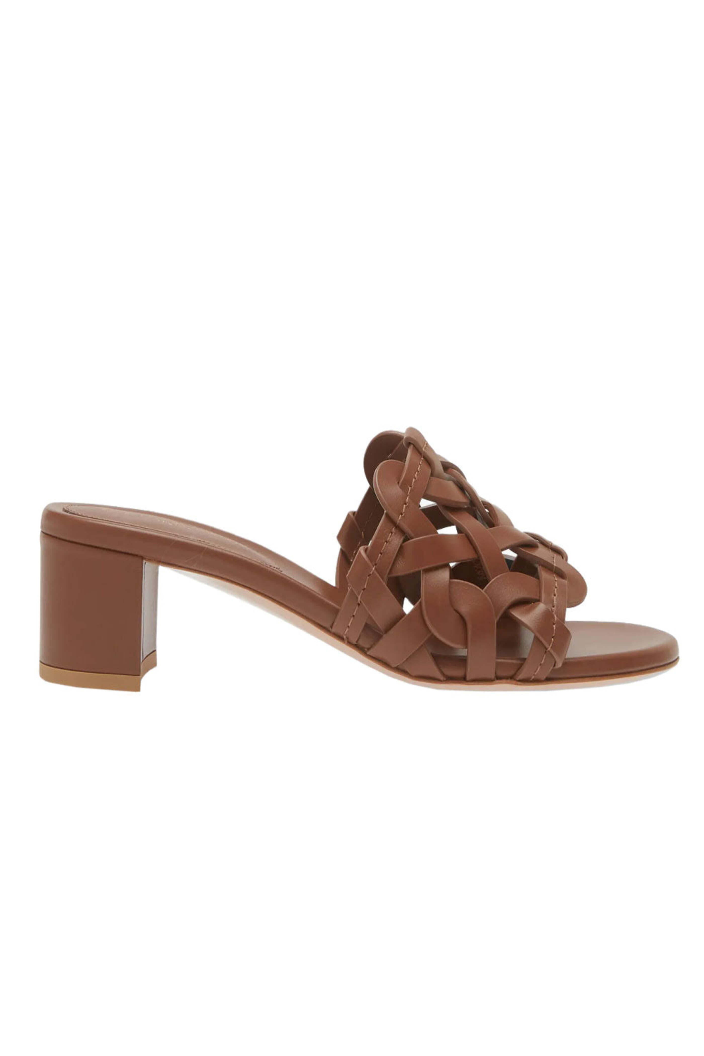 - Gianvito Rossi Amalfi Block Heel Slide Sandal in Sedona