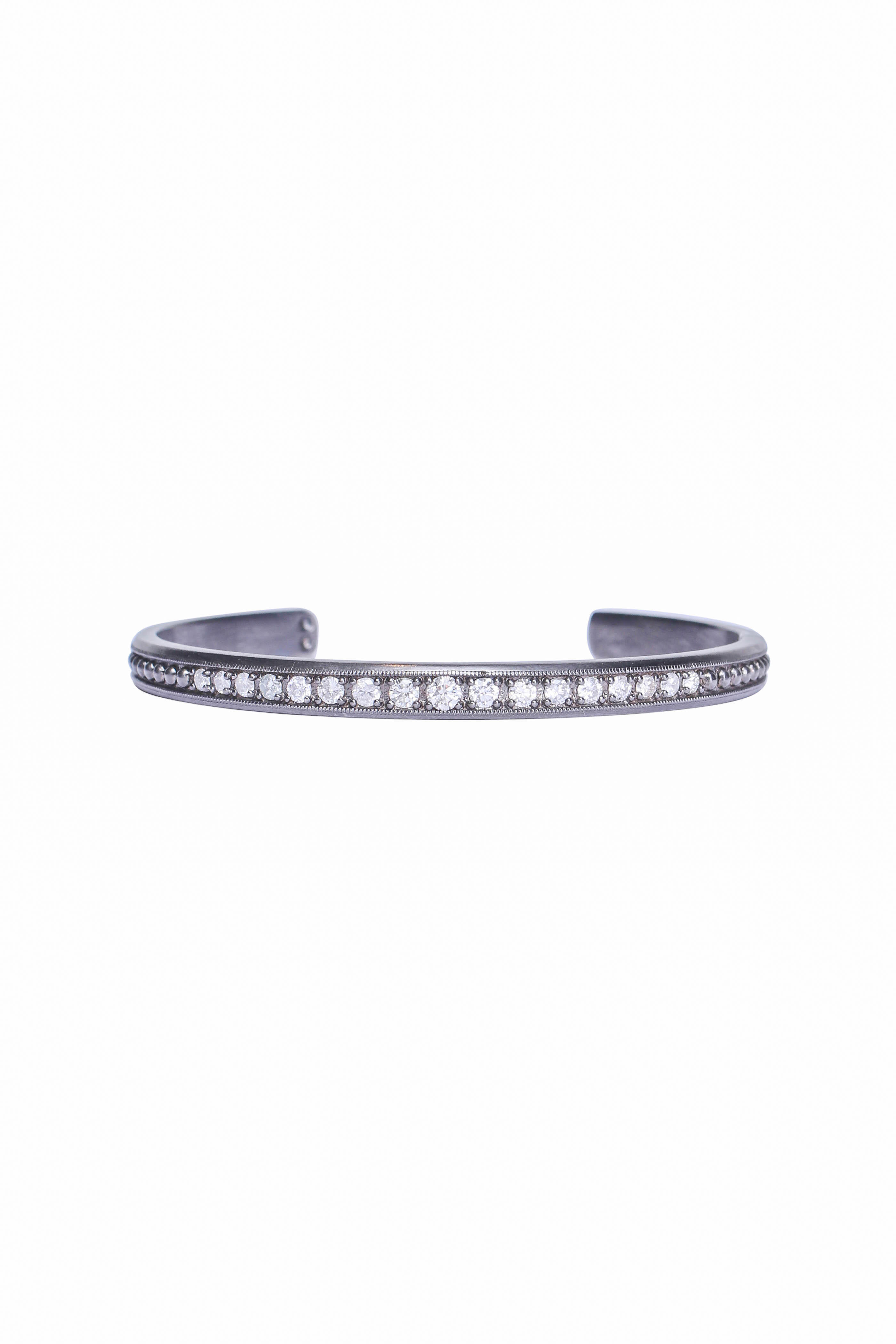 Sterling silver. Diamond 1.60 total carat weight. Cuff style. Prong setting. Handcrafted in L.A.. 5mm x 57mm.