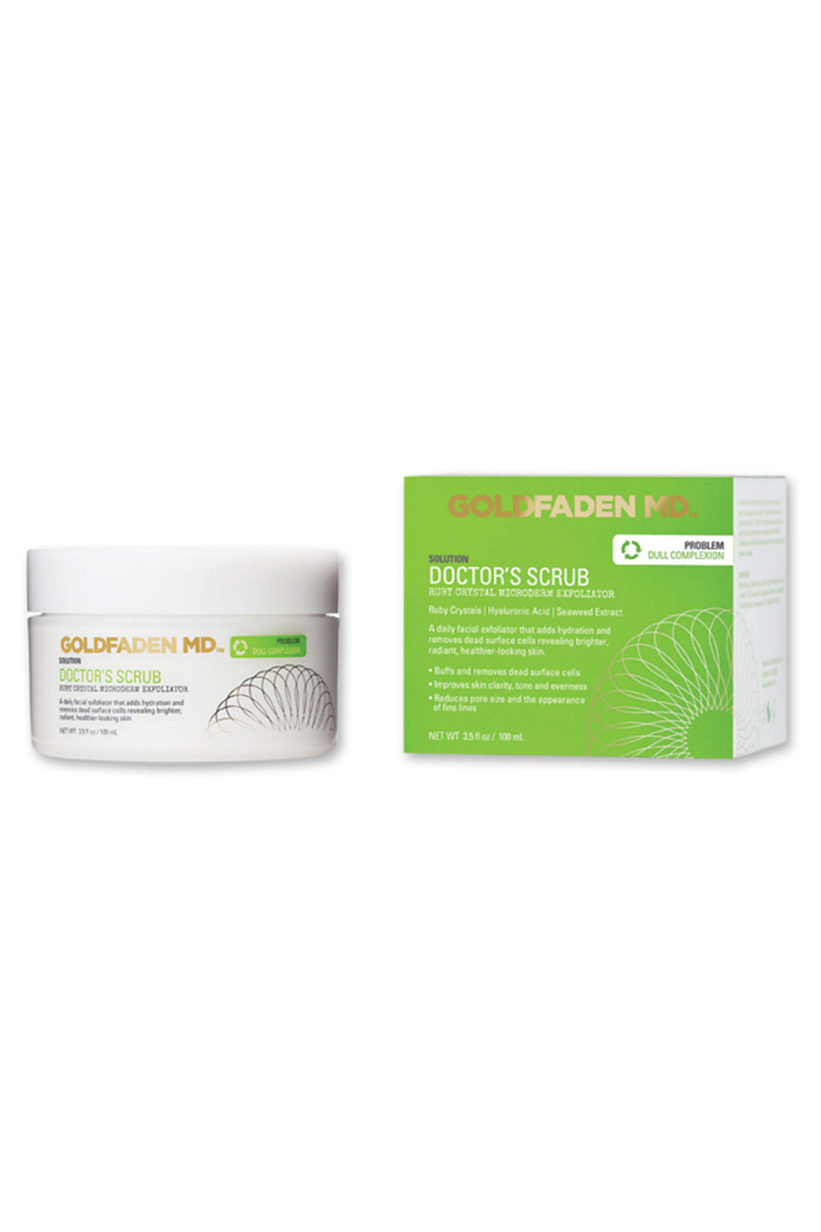 - Goldfaden MD Doctors Scrub Ruby Crystal Micoderm Exfoliator A daily facial exfoliator that adds hydration and removes dead surface cells revealing brighter~ radiant~ healthier-looking skin. Buffs and removes dead surface cells Improves skin clarity~ tone and evenness Reduces pore size and the appearance of fine lines Recommended for: All skin types. How to use: Gently massage a liberal amount of exfoliating scrub onto damp skin in circular motions. Rinse thoroughly with warm water. 3.5fl oz~ 100ml