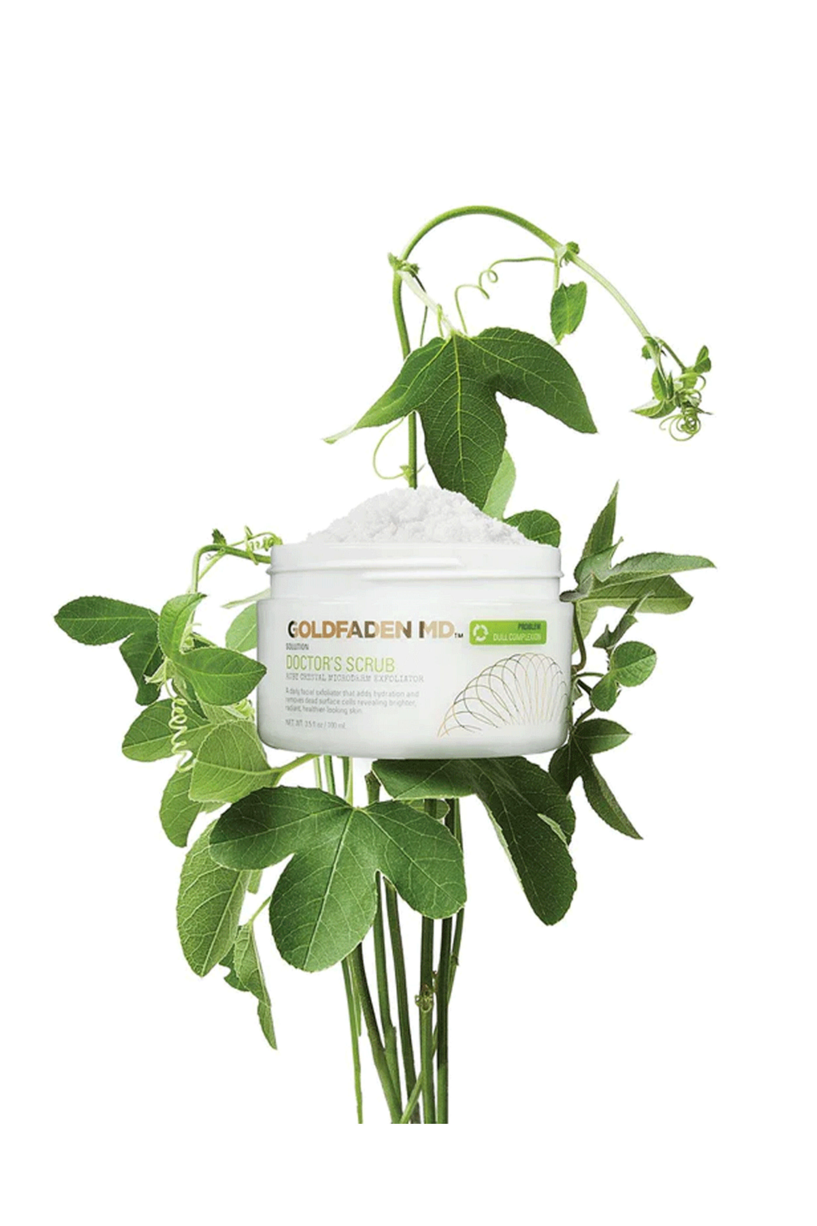 Goldfaden Travel Size Doctors Scrub. Works to add hydration to help skin feel brighter, healthier and more radiant. Formulated with line-filling Hyaluronic Acid, this facial exfoliator works to deliver long-lasting hydration while nourishing Seaweed and Organic Red Tea Extract offer nourishment to the skin. Daily use will leave behind skin that appears more firm and rejuvenated. 7 oz/50ml.
