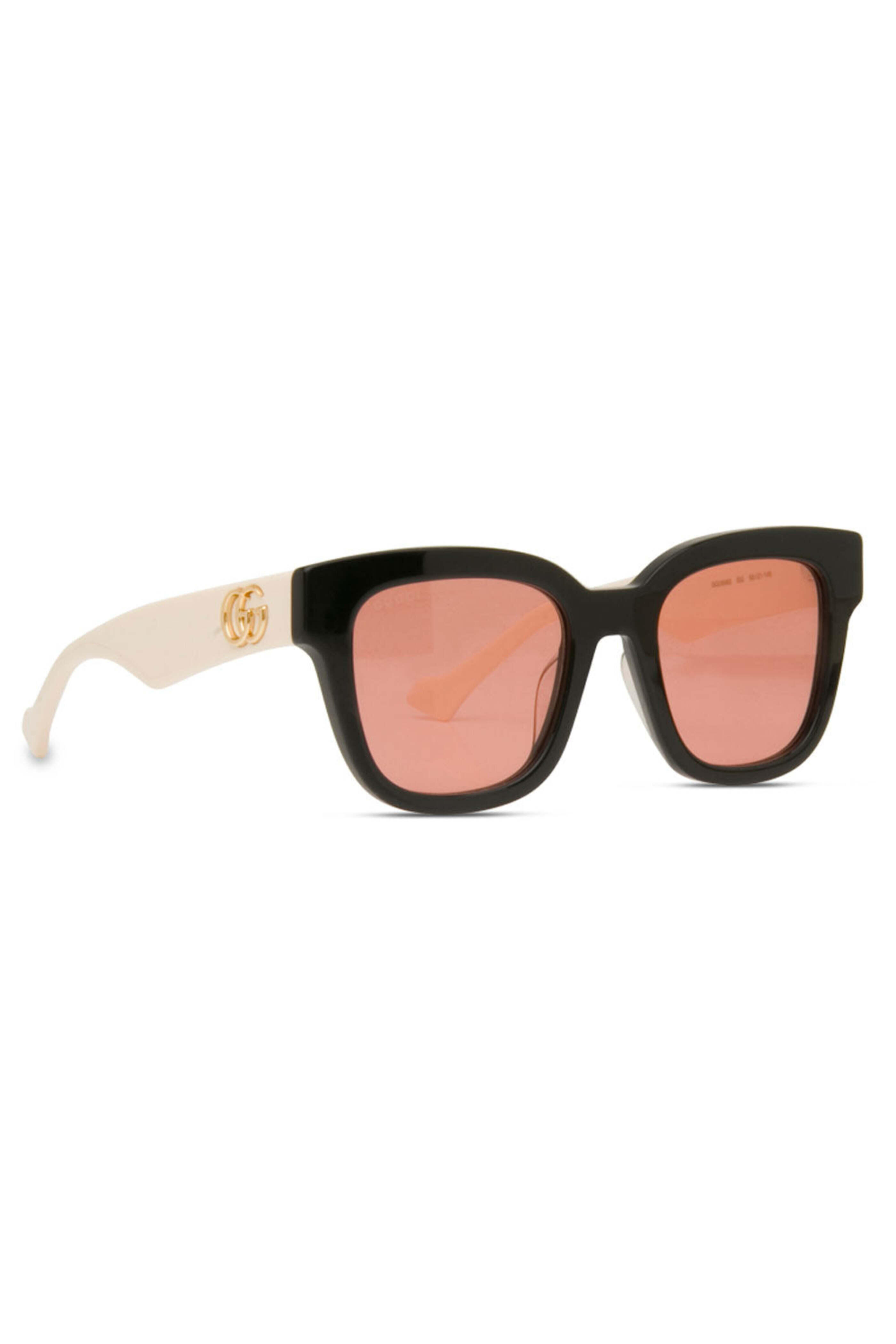 Gucci Black And Pink Oversized Sunglasses. Pink lenses. Oversized square acetate frame. Nude temples. Size 52-21-145. 100% UV protection.