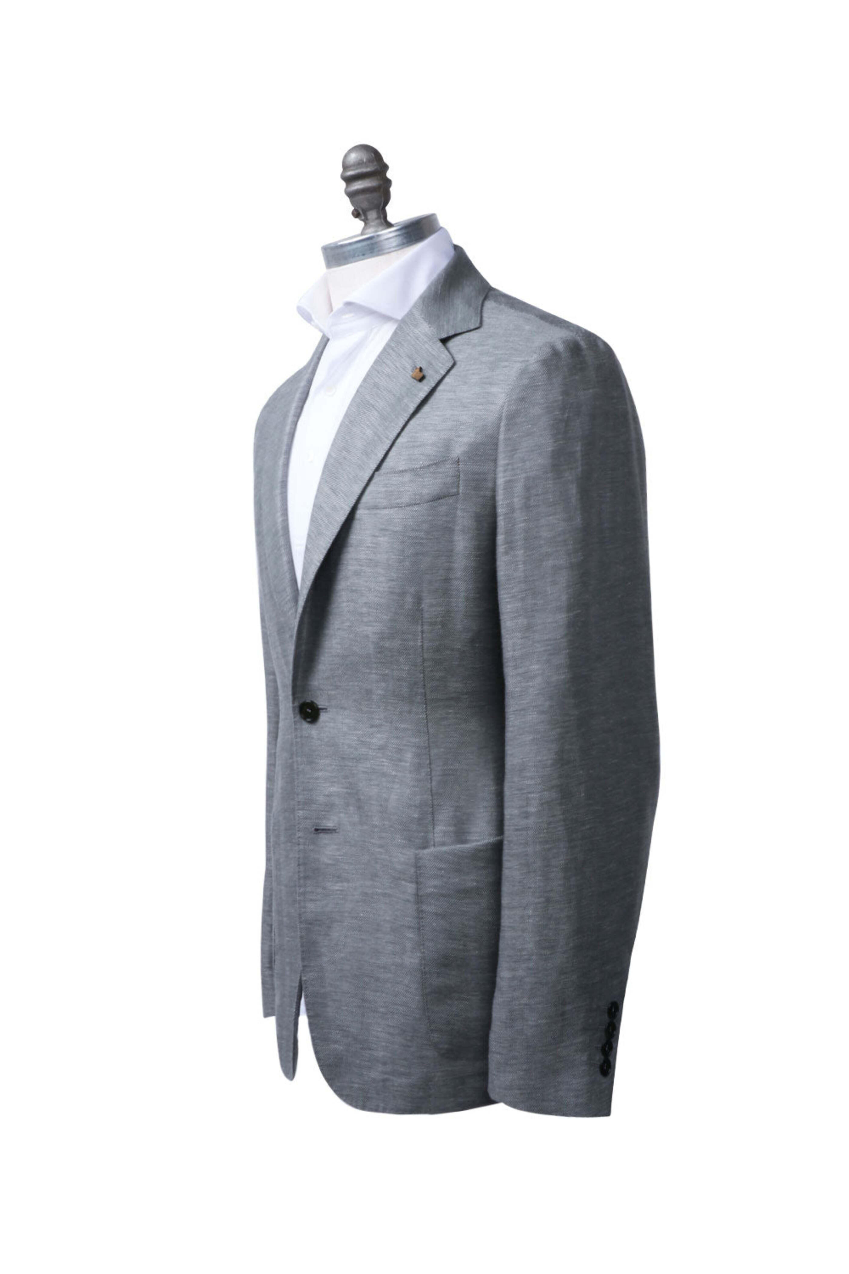 Colombo Light Sage Green Linen Sportcoat. Notch lapels. Two button jacket. Front left chest welt pocket. Waist patch pockets. Double back vents. Made in Italy . 66% cashmere, 34% linen.