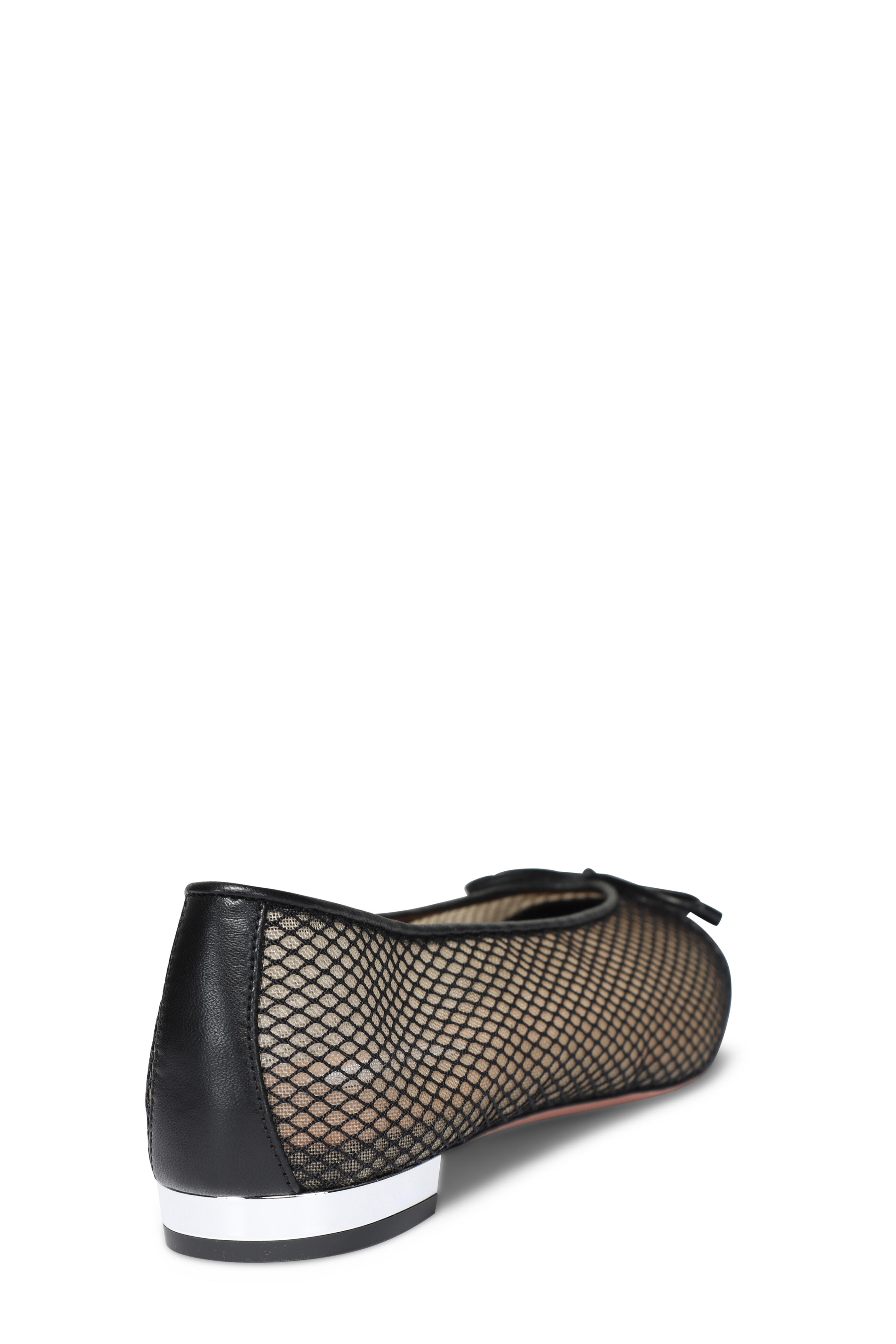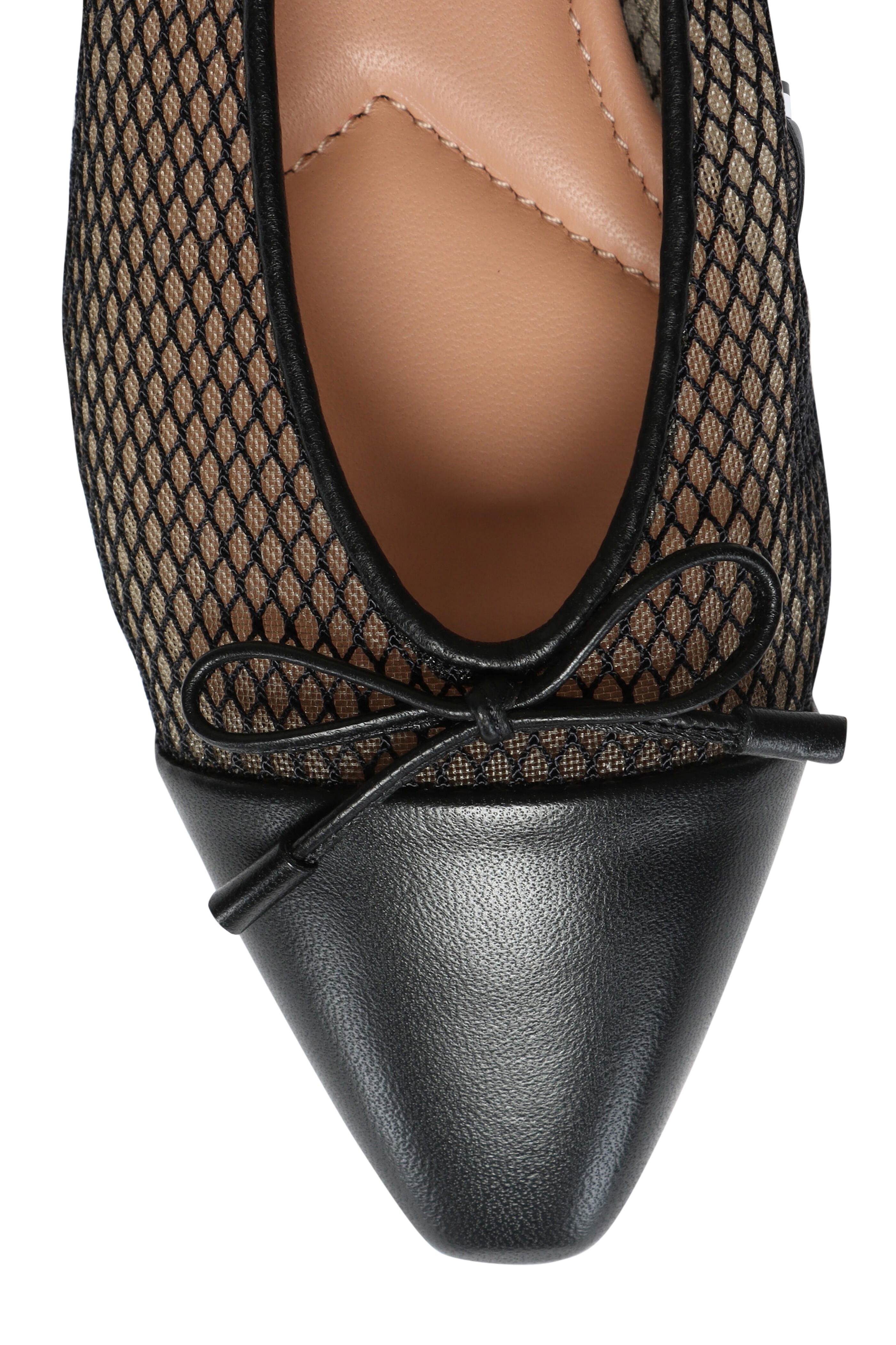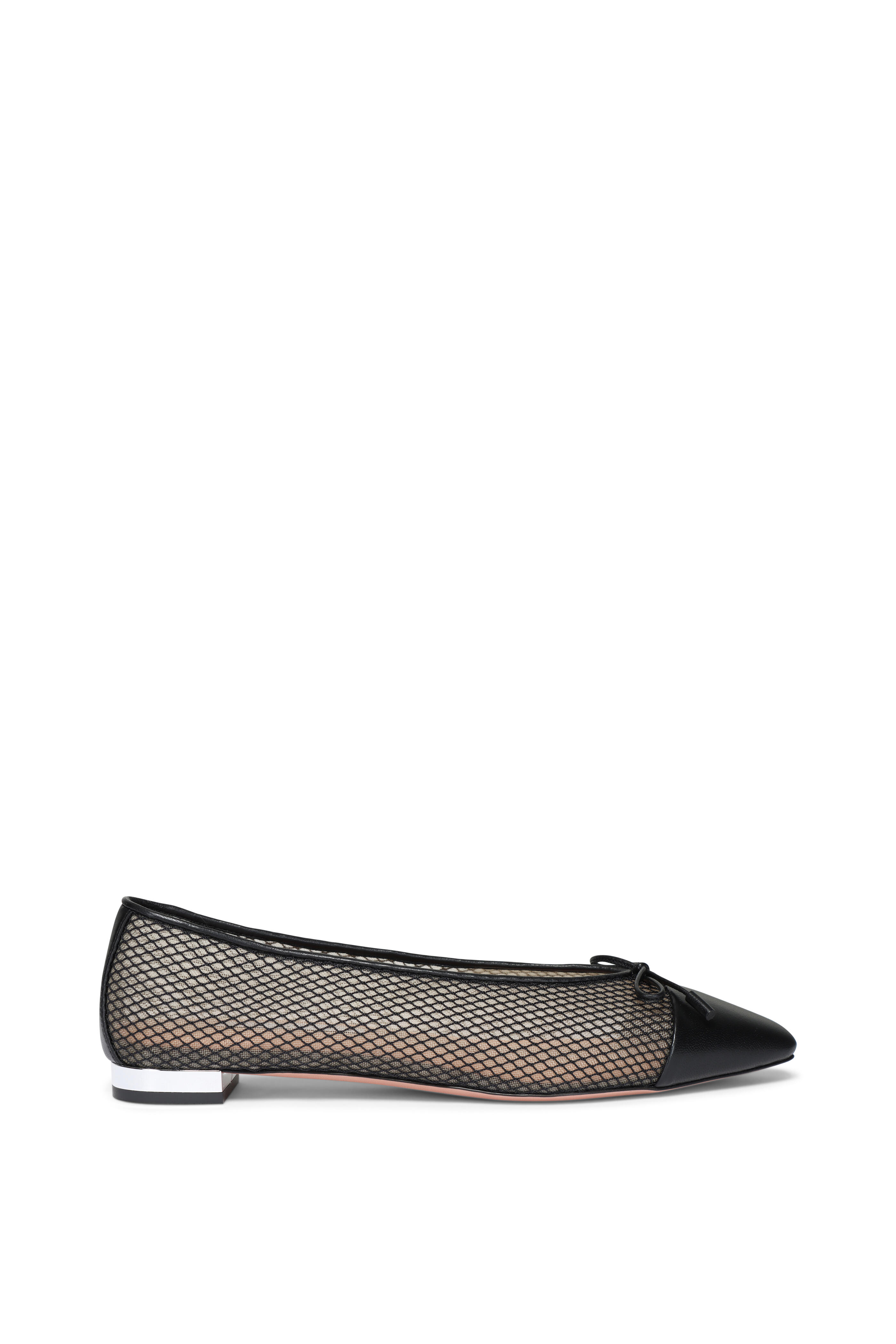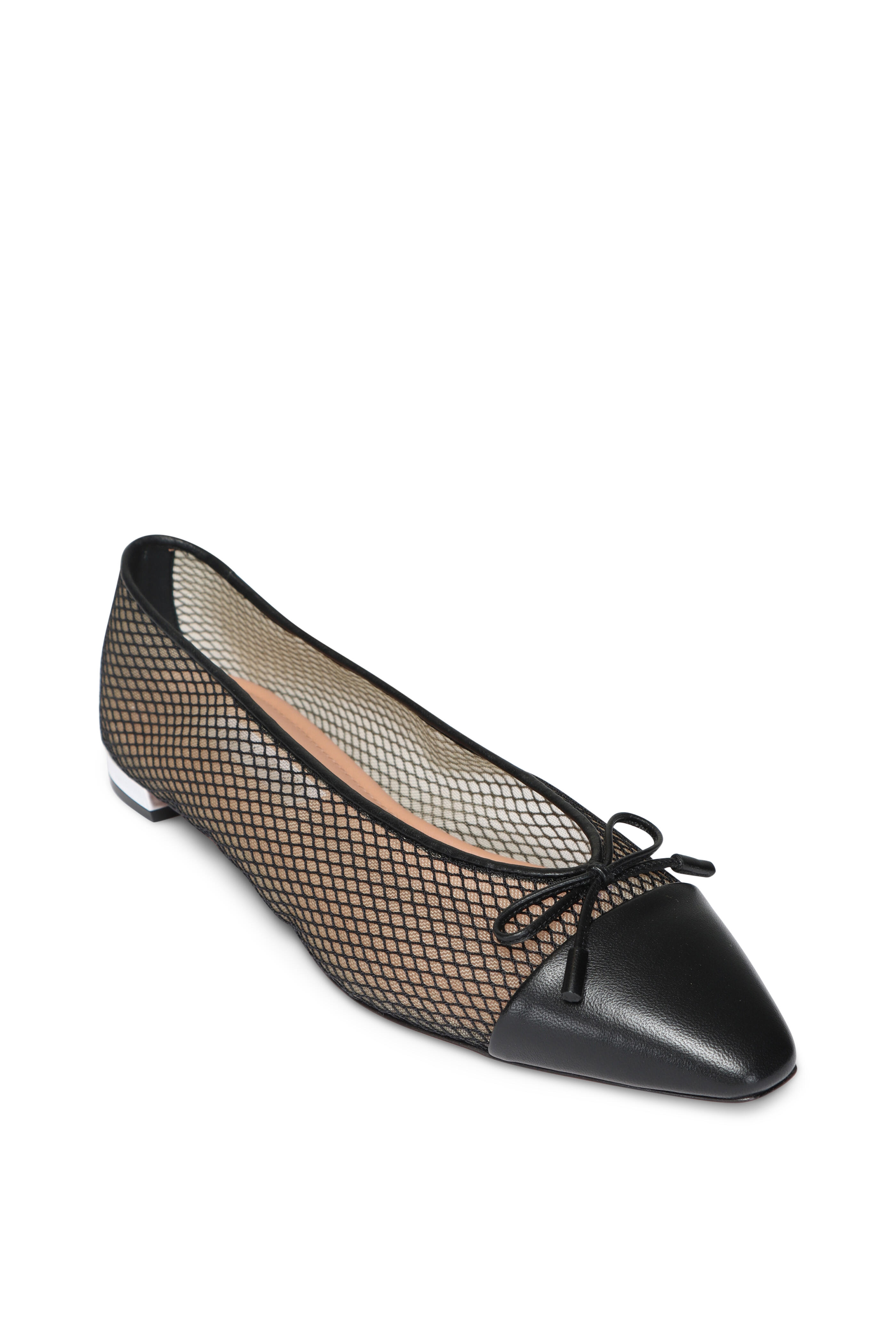 Leather and mesh upper. Leather lining and sole. Pointed toe. Slip-on style. Bow embellished on toe vamp. See-through paneling. Made in Italy.
