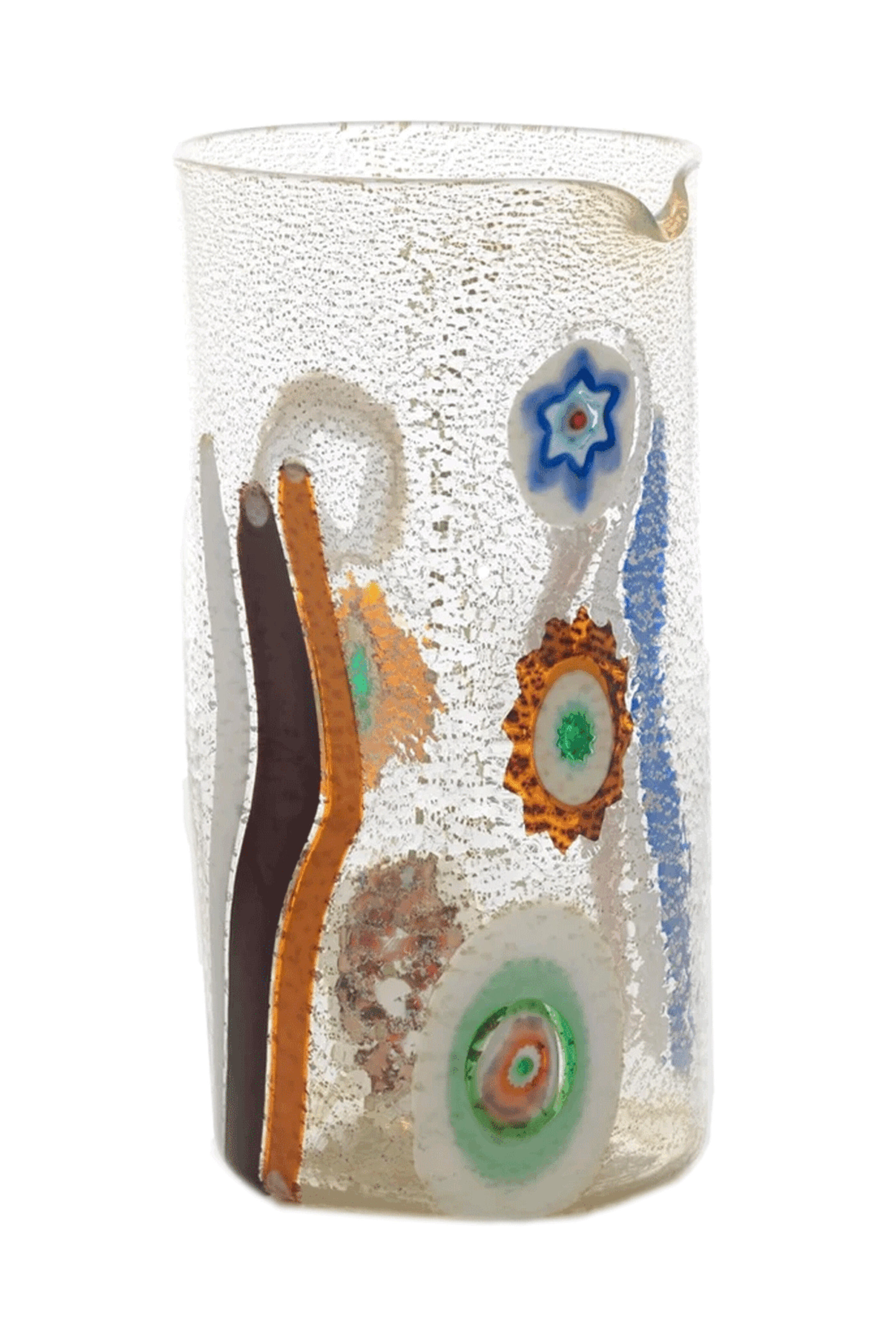 Zafferano Goti Di Murano Carafe. Handcrafted, glass blown and unique. Authentic Murano glass. 3.9 diameter X 8 height. 43 oz. capacity. Hand wash only.