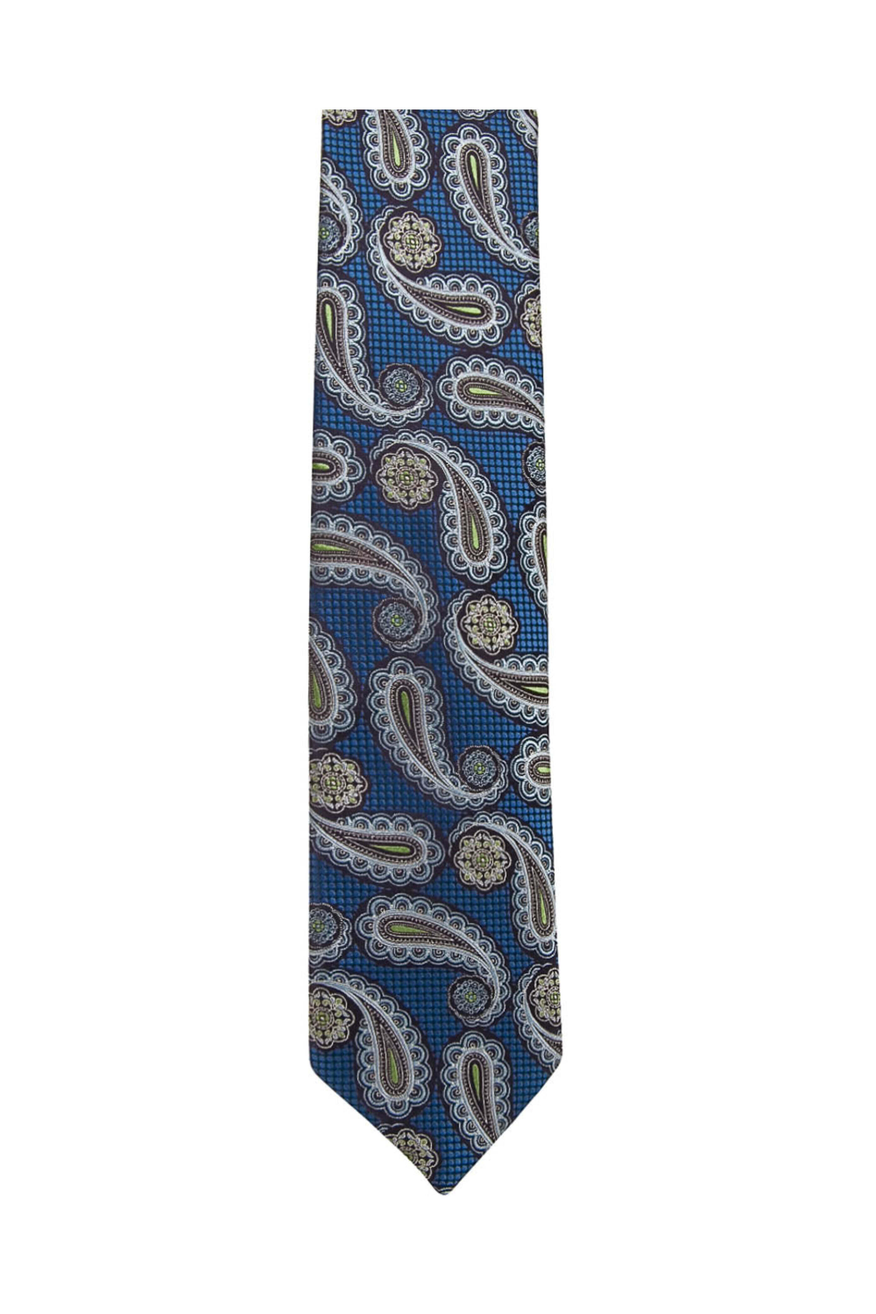 Navy Sky Blue and Lime Green Paisley Tie