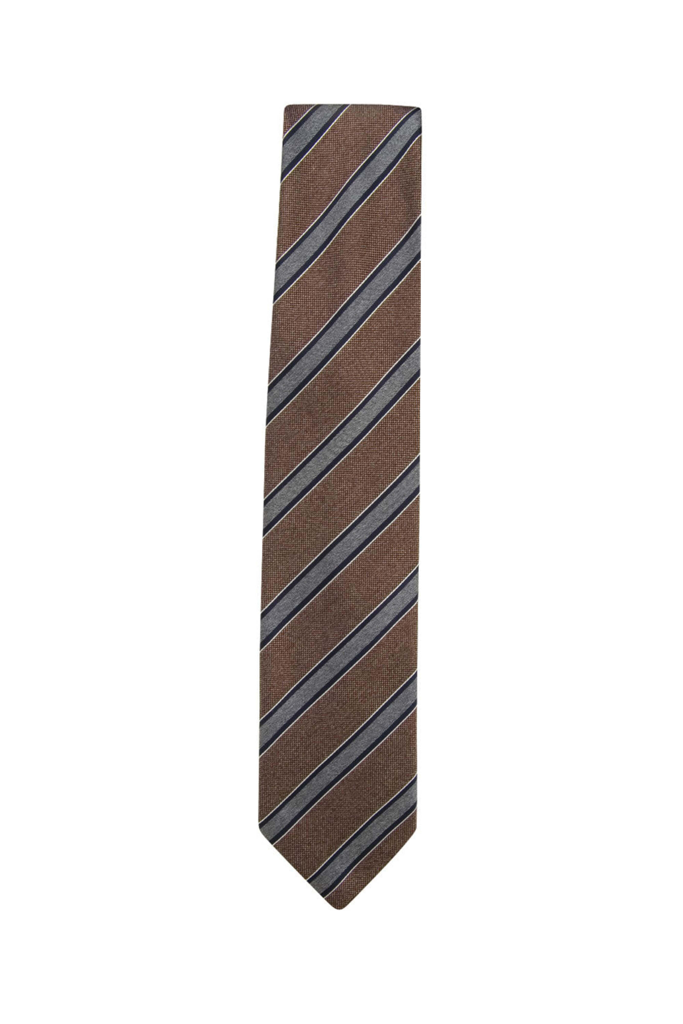 - Geoff Nicholson Brown and Grey Striped Silk Tie