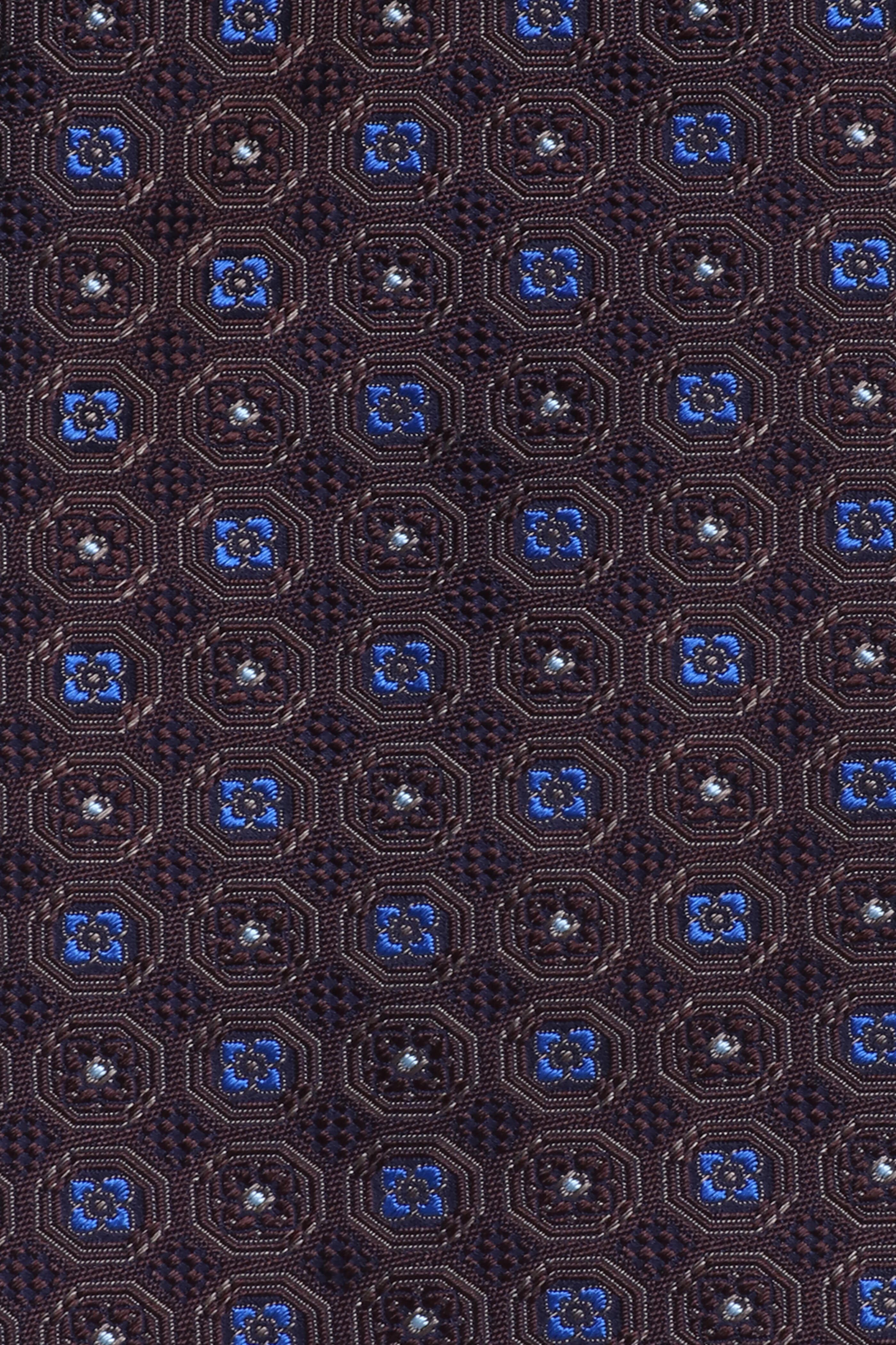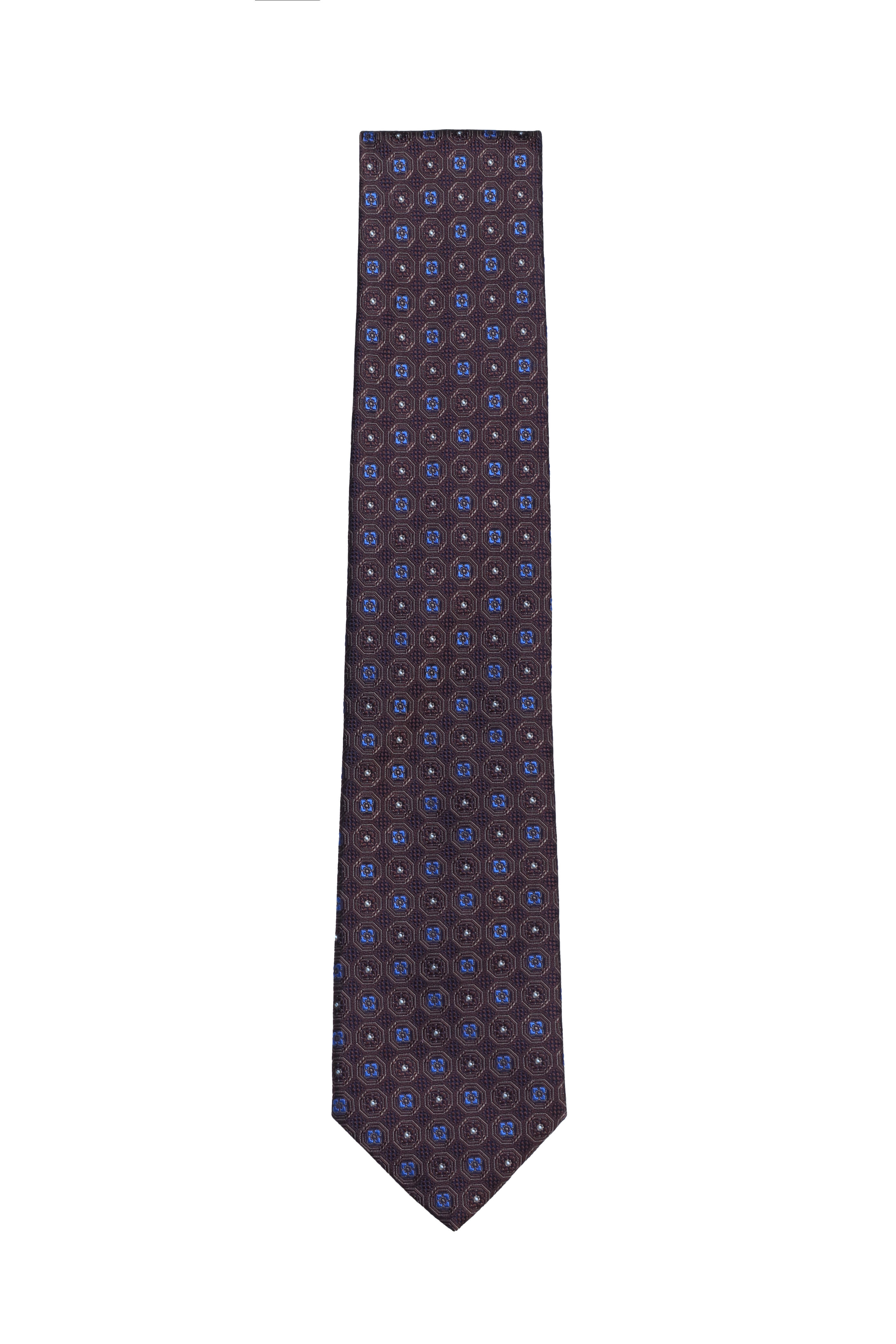 Brown & Blue Micro Medallion Silk Necktie
