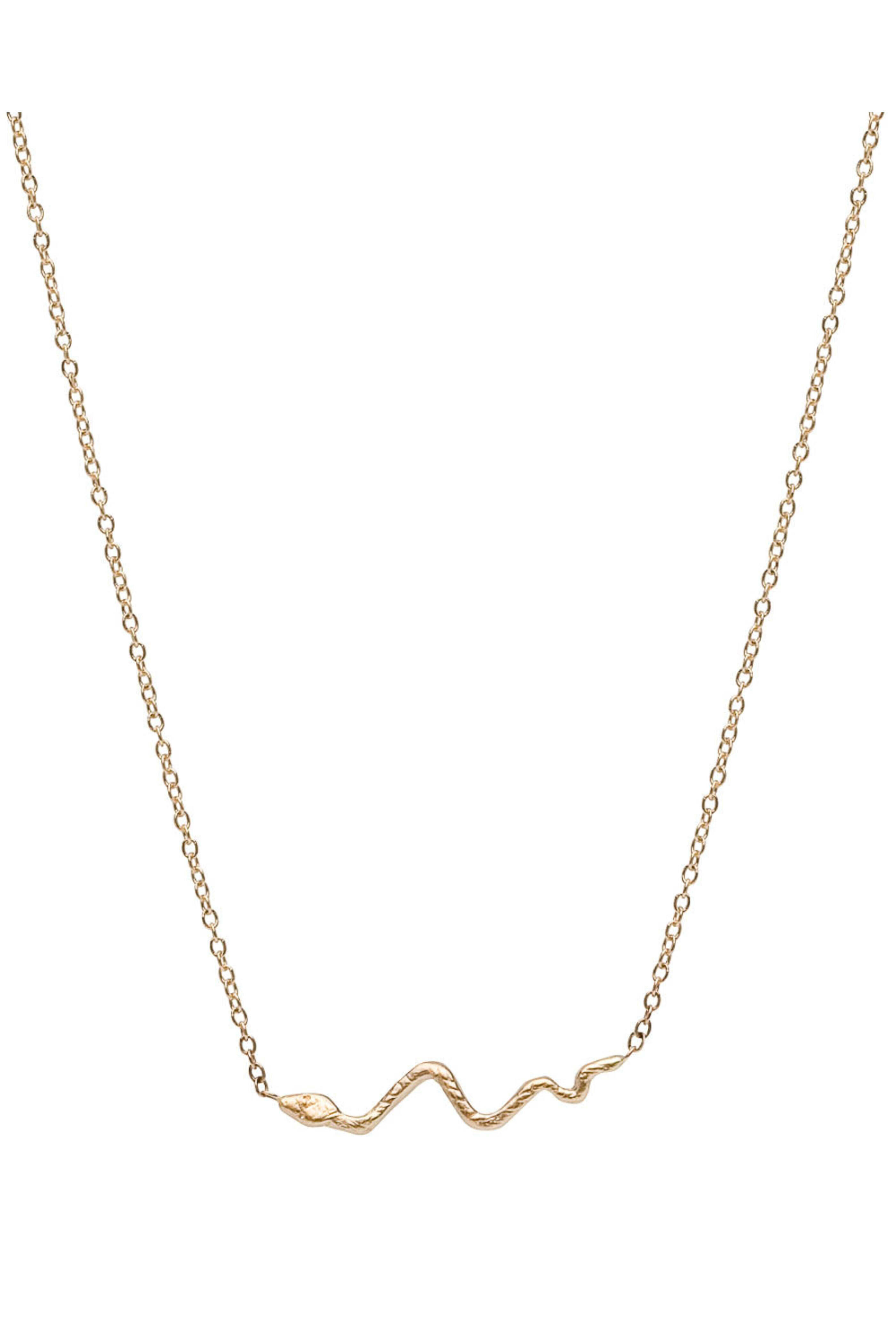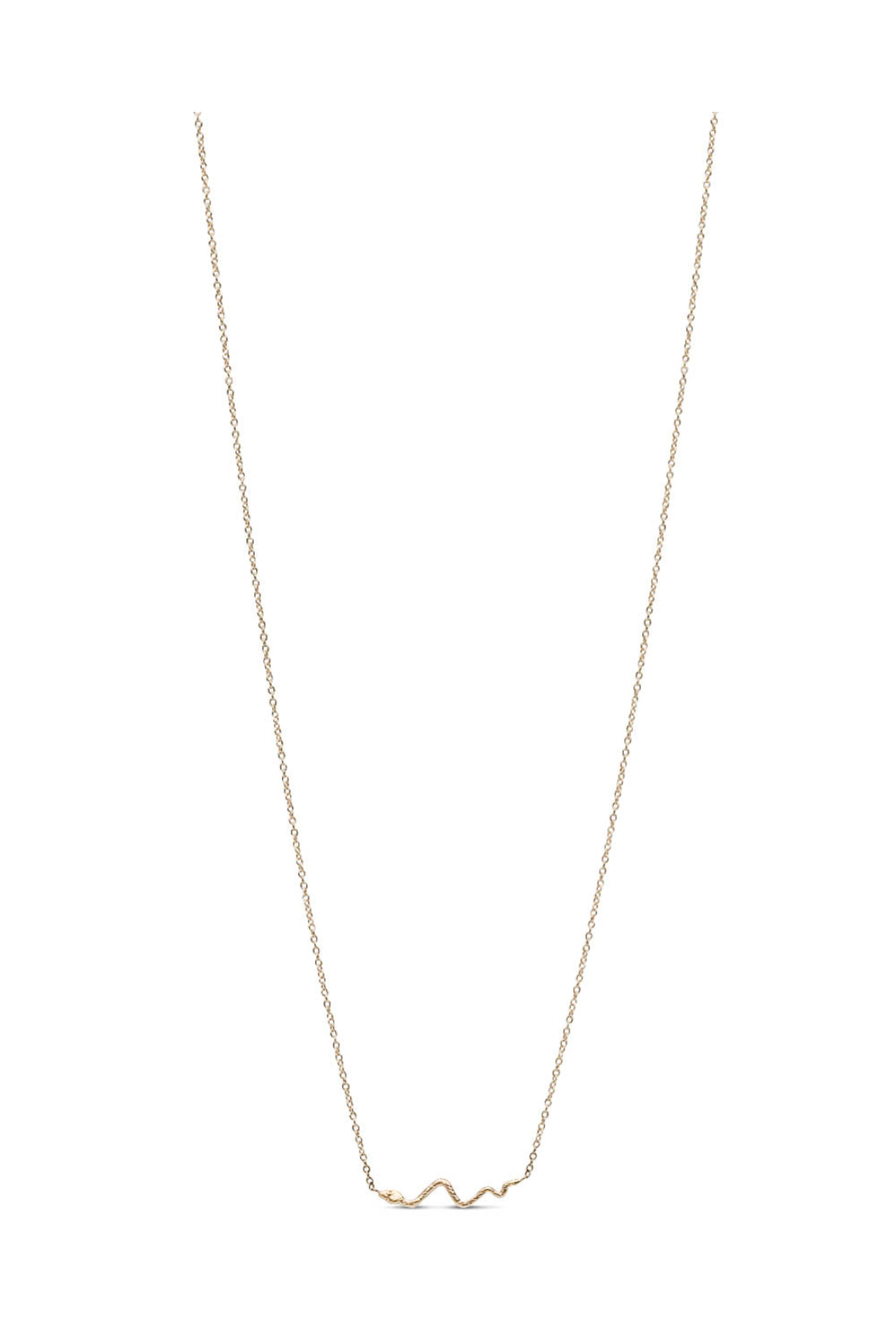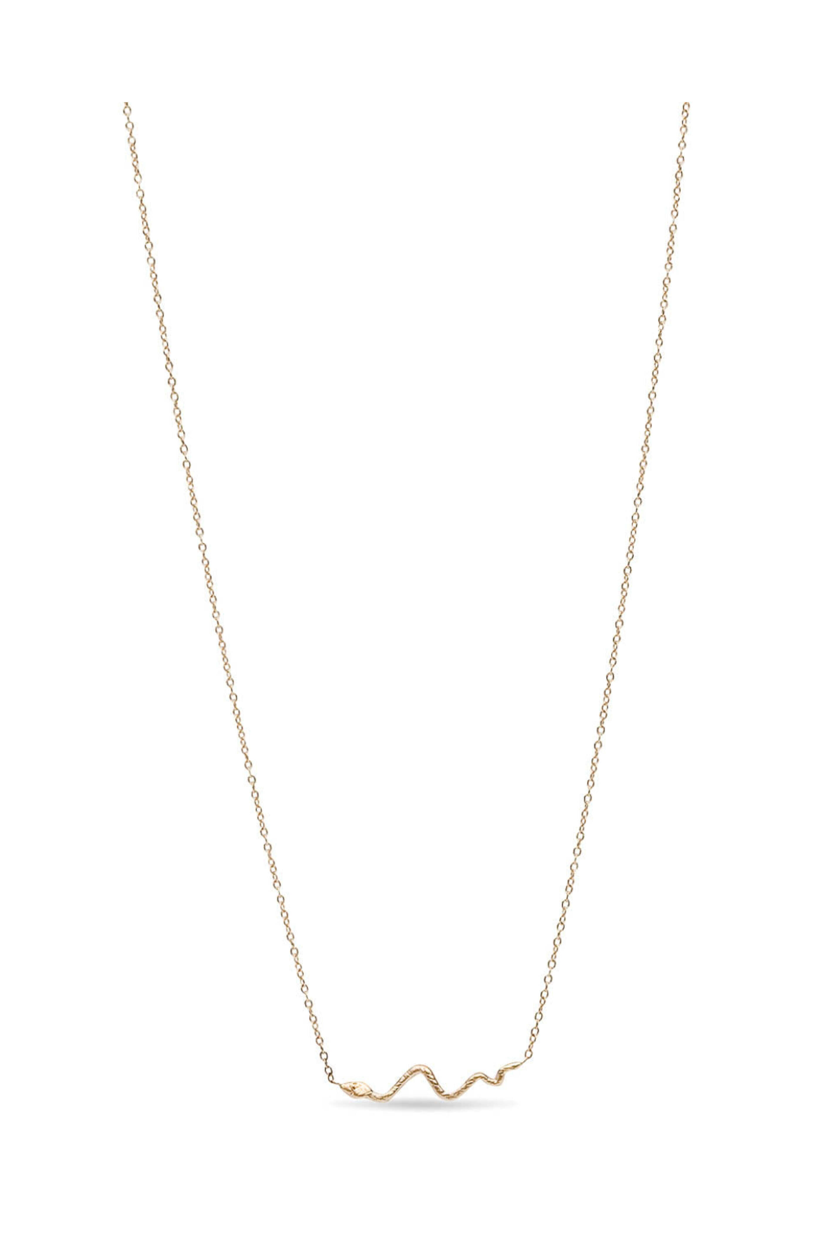 - Victoria Cunningham Jewelry Yellow Gold Diamond Snake Pendant Necklace 14k yellow gold 0.005 ct. diamonds Stationed snake pendant: 0.75 wide Chain link necklace Adjustable length: 15.5 - 16.5 Lobster claw clasp