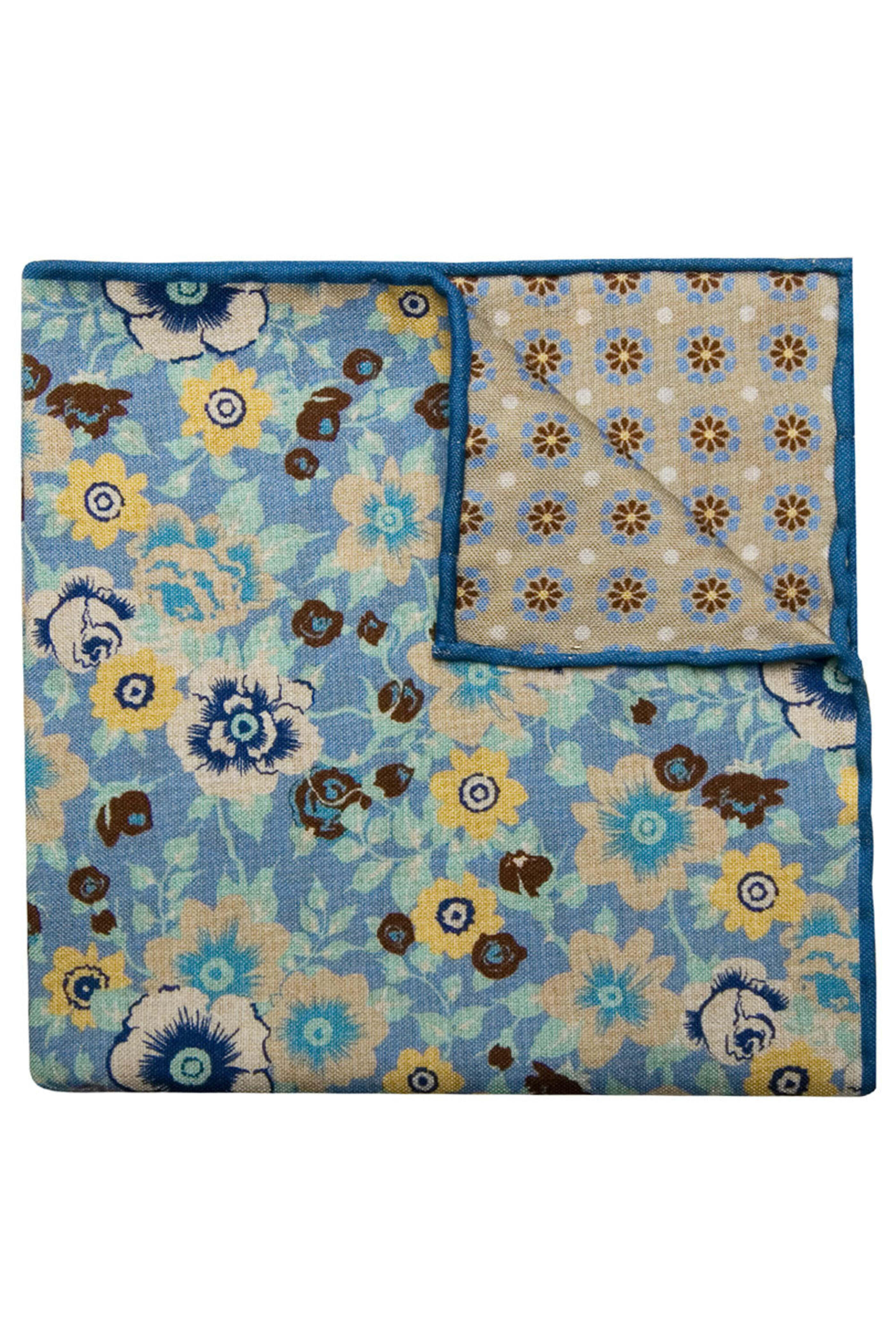 - Geoff Nicholson Blue and Beige Floral Reversible Pocket Square