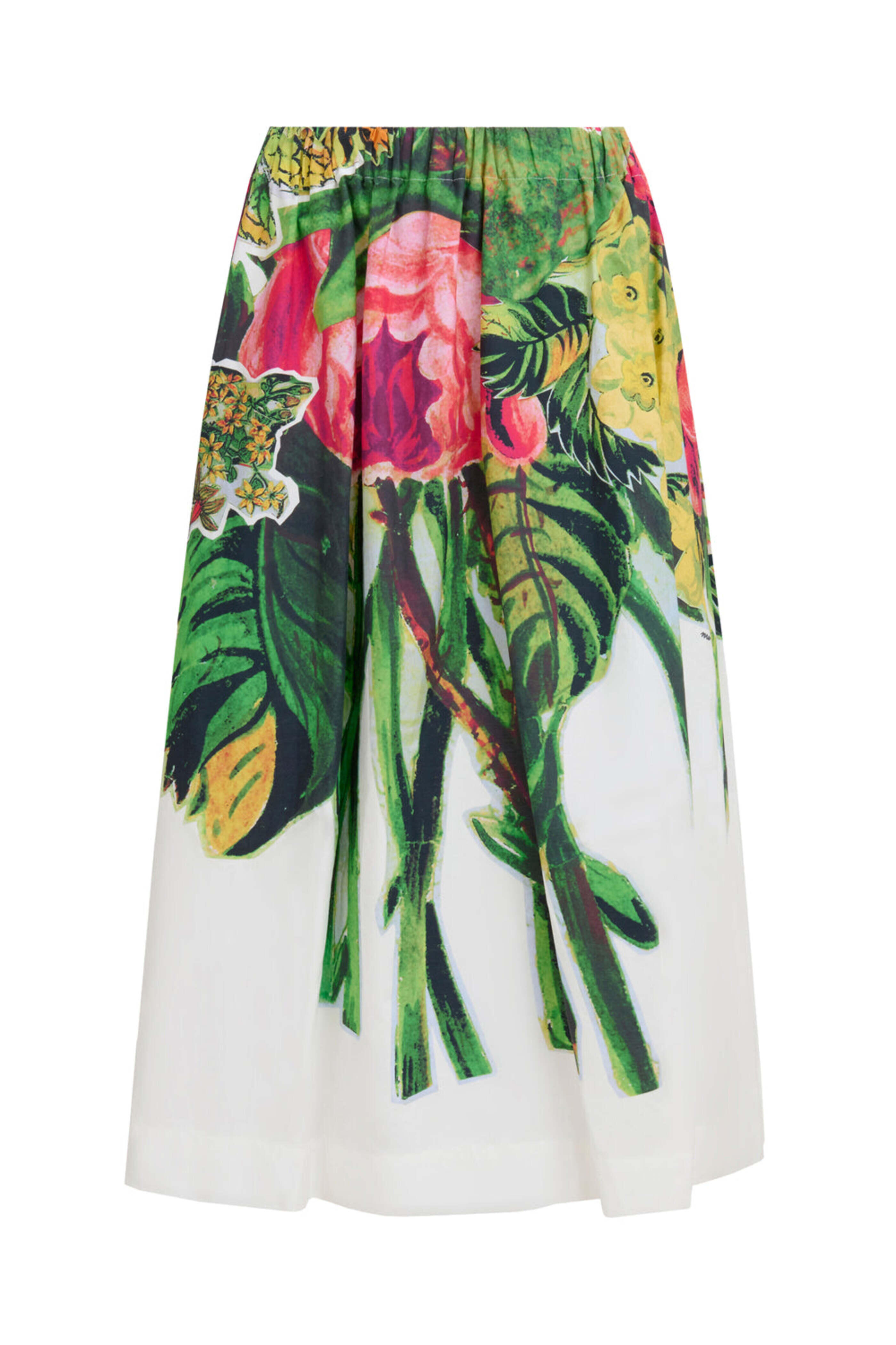 Marni Acid Green Mystical Bloom Print Balloon Midi Skirt. Elastic waist. Side slip pockets. Aline silhouette. Midi length. Made in Italy. 100% cotton.