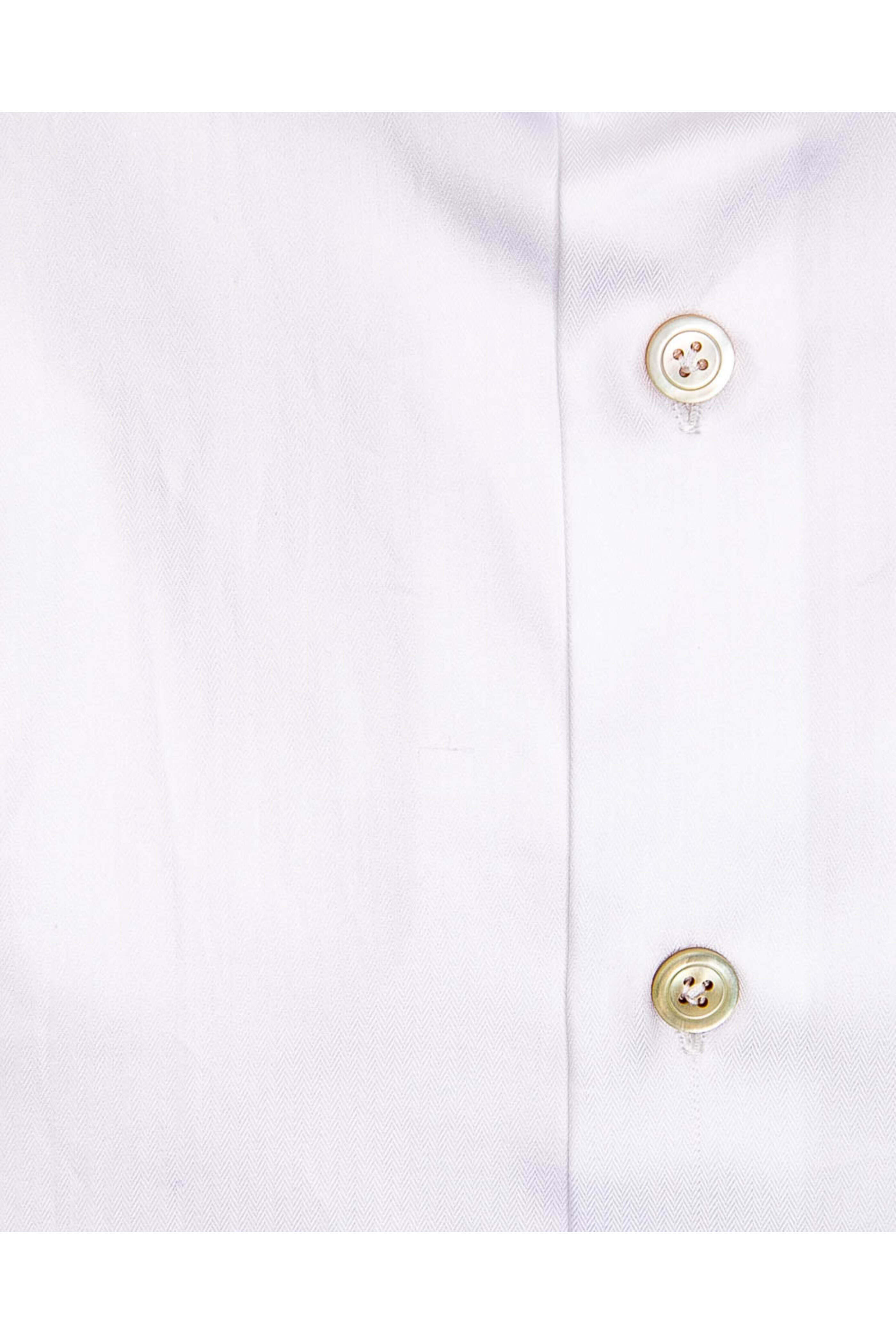 - Kiton White Herringbone Dress Shirt Spread collar Rounded barrel cuff Single button cuff Pinctada Maxima mother-of-pearl buttons 100% cotton Handmade in Italy