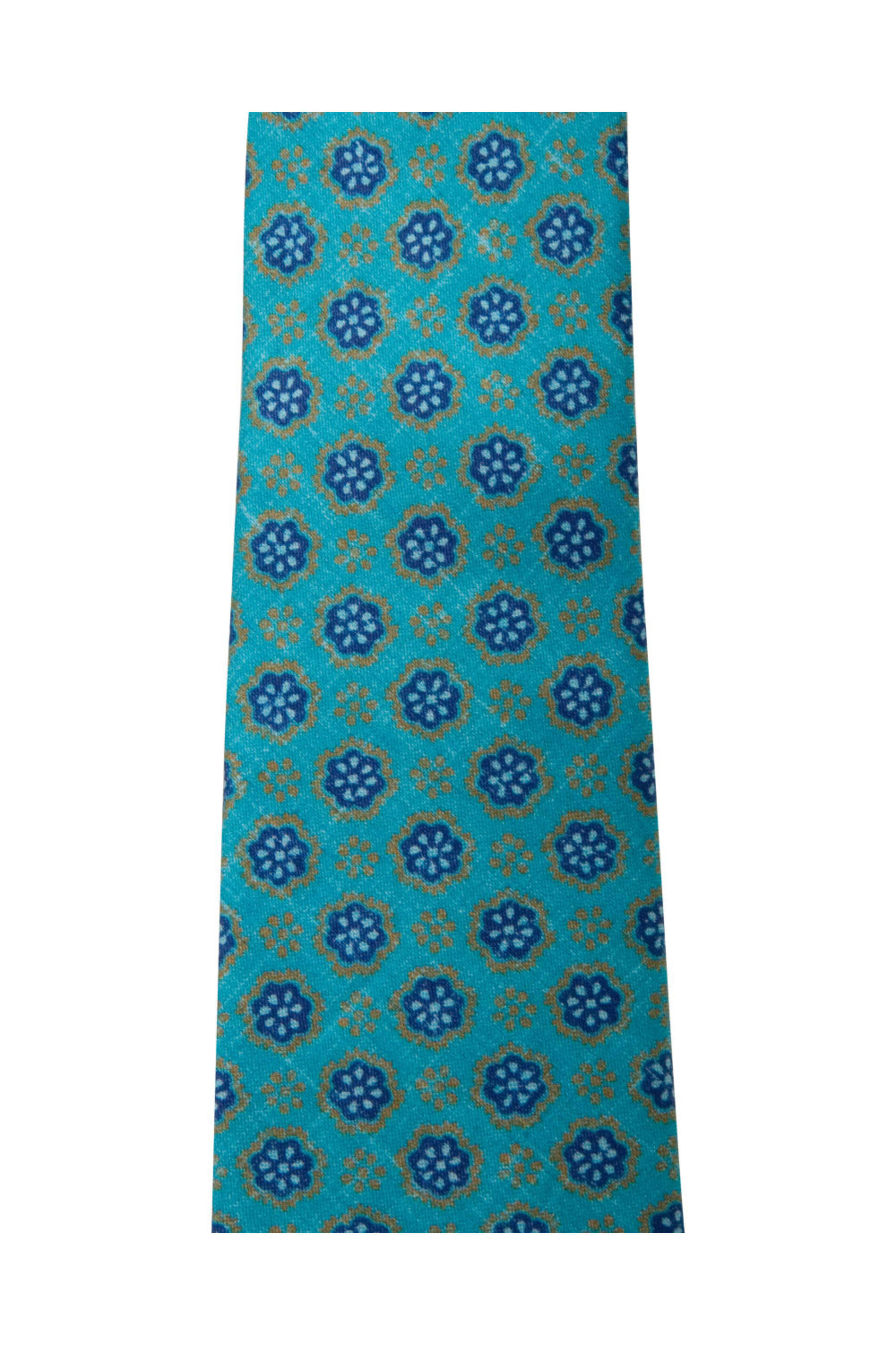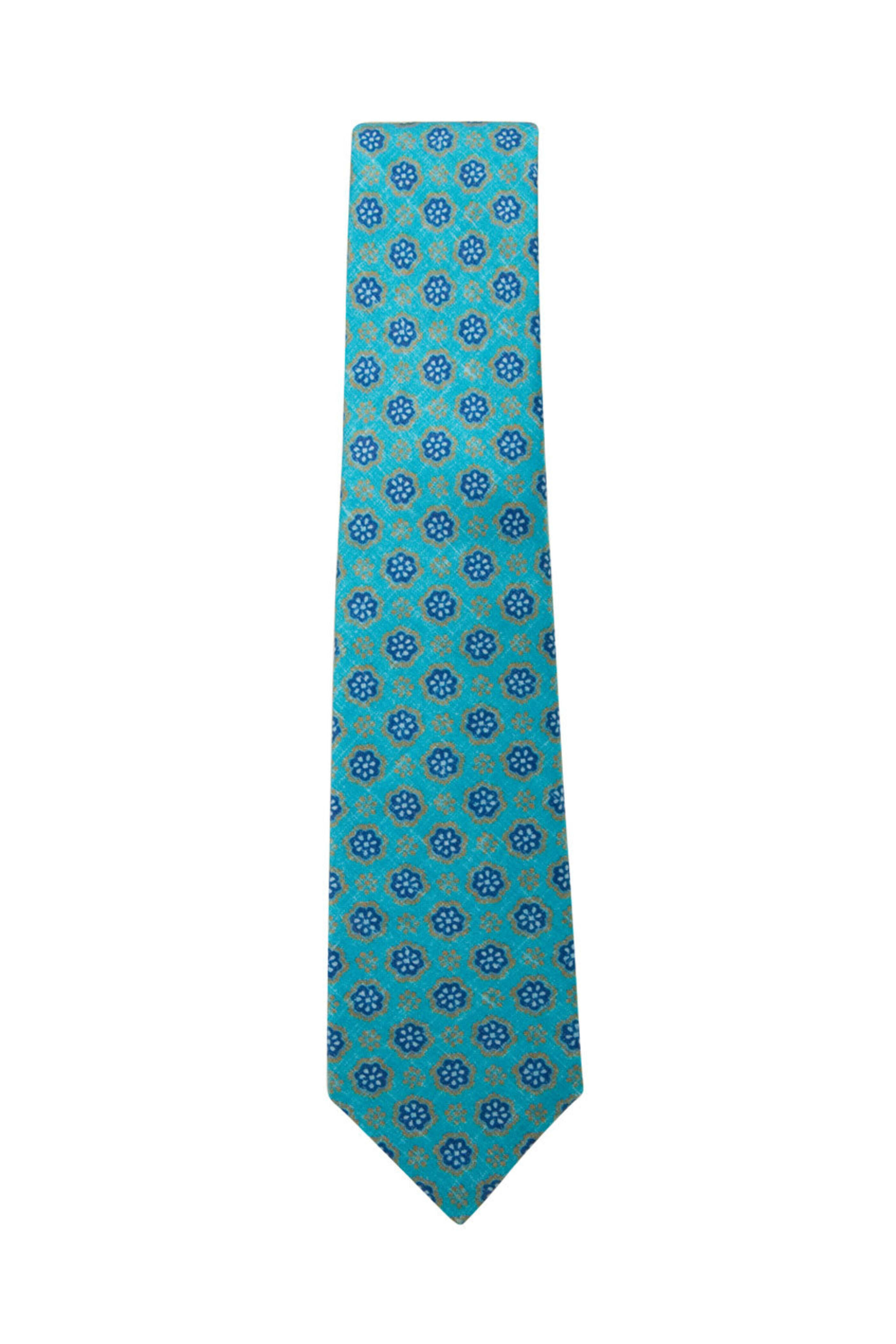 - Kiton Aqua and Navy Blue Floral Tie