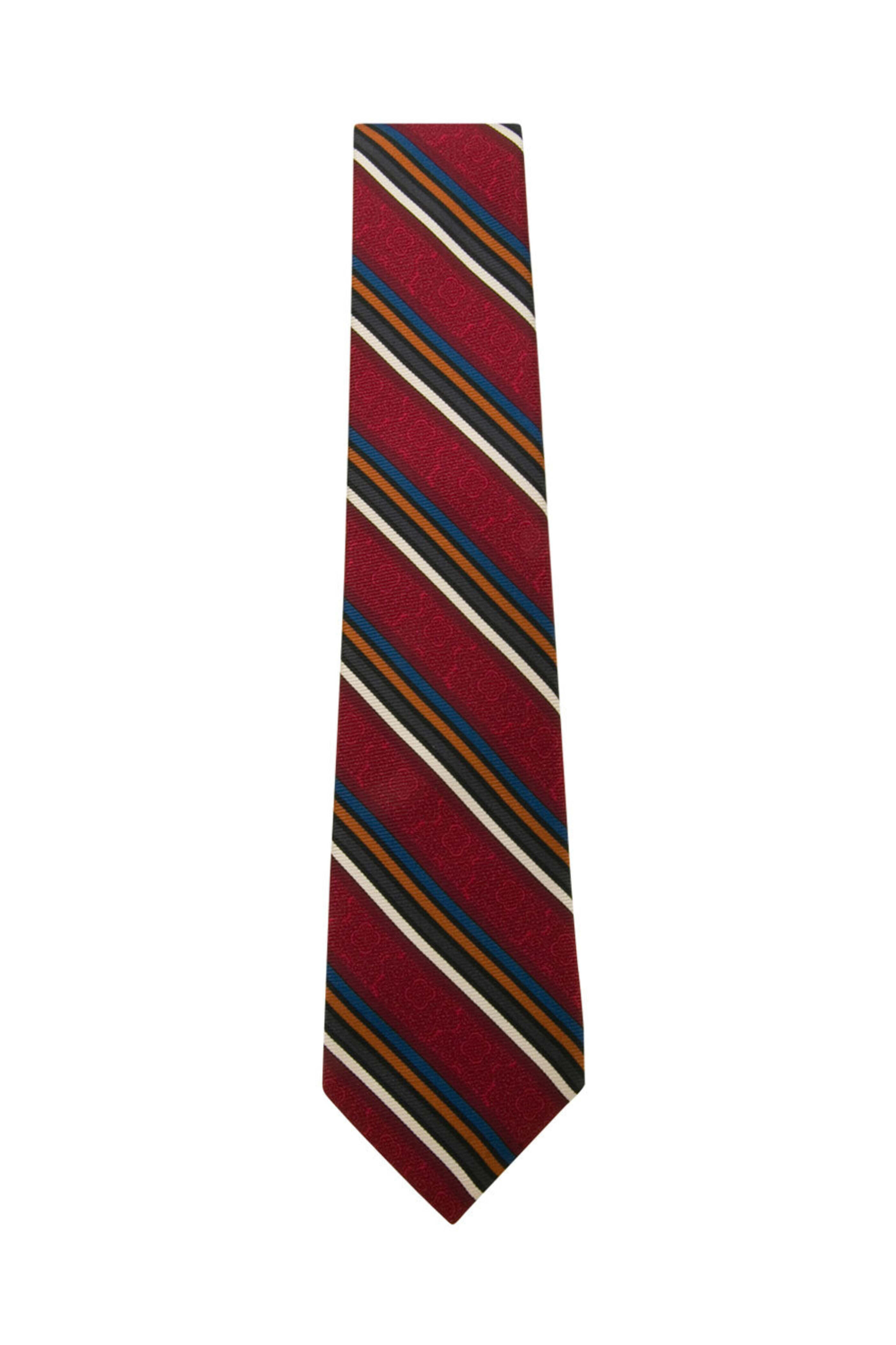 - Kiton Red Multicolor Stripe and Medallion Tie