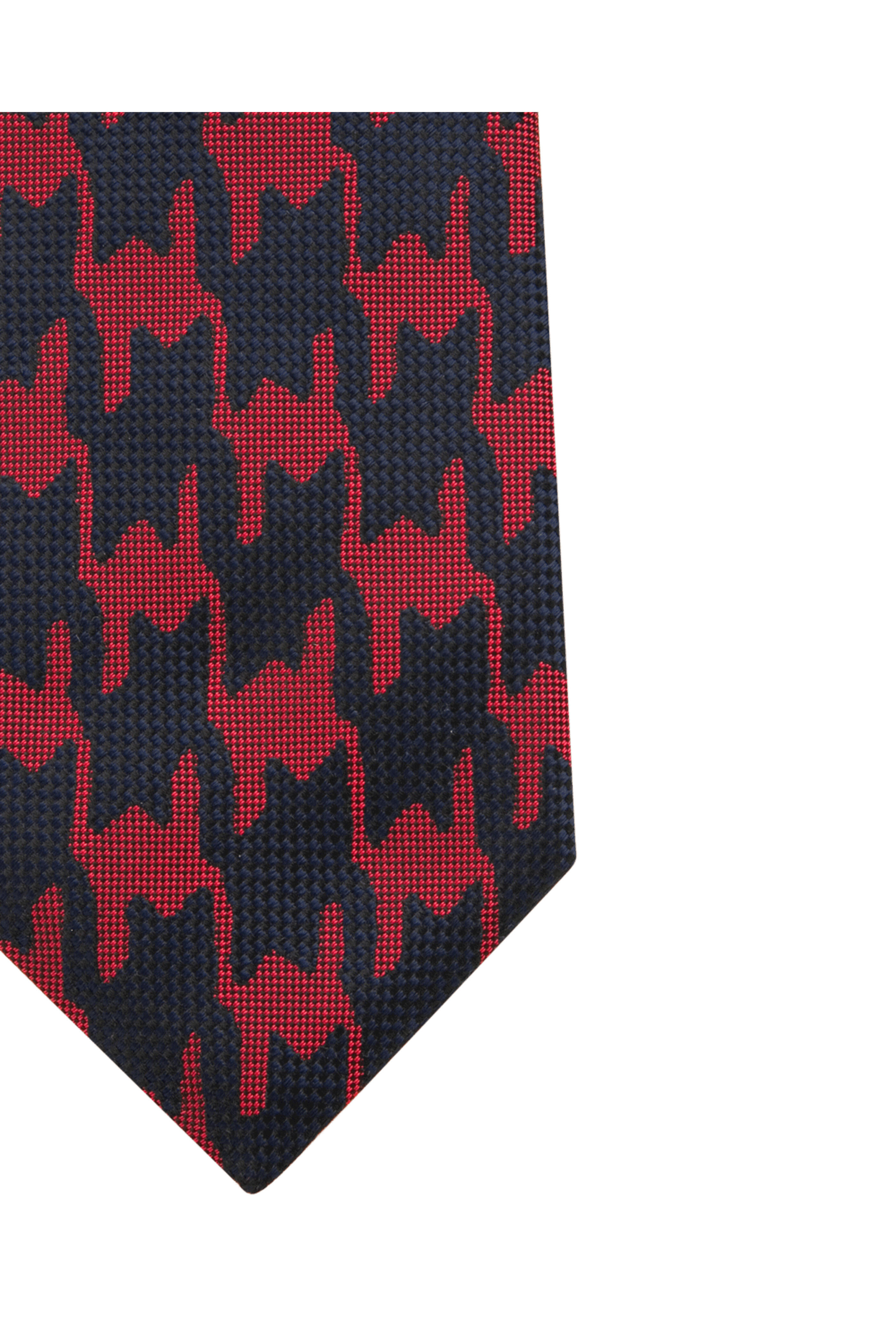 - Kiton Maroon and Navy Macro Houndstooth Tie